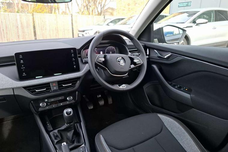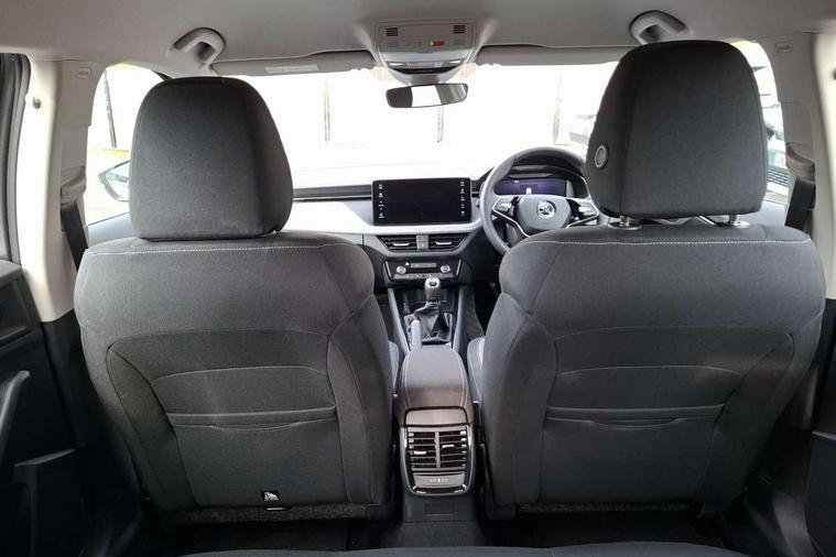 Advanced driver attention and drowsiness monitor, Bluetooth, e-Call (emergency call), Front assist system, PAS, Rear parking sensors, Rear view camera, Speed limiter, Tailgate, Traffic sign recognition, Virtual Cockpit - 10.25" digital display, Voice control system, Wireless smartlink, 4 USB C ports, 8 Speakers, 9.2" Skoda navigation display, DAB radio, Auto dimming rear view mirror, Automatic headlamp activation with Coming home and Leaving home feature, Automatic high/low beam, Body colour bumpers, Body colour door mirrors and handles, Chrome moulding around grille, Front and rear electric windows, Full LED headlights, Heated rear window, LED 3rd brake light, LED brake lights, LED daytime running lights, LED front turning lights, LED high beam, LED low beam, LED taillights, Rear LED fog light, Rear side wing doors, Rear wiper, Tinted windows, Unique dark chrome design logo on alloy wheels, 12V socket in luggage compartment, 3 seat bench in 2nd row, Black / Grey armrest stitching, Black hotstamping, Cargo elements, Chrome inner door handles, Door inserts in satin black, Driver and passenger sun visors with vanity mirror, Dual zone climate control, Front and rear roof lights, Front centre armrest, Front head restraints, Glasses storage in roof liner, Height adjustable driver seat, Height adjustable passenger seat, Ice scraper, Illuminated glove compartment, Inner circulation control with pollen filter, ISOFIX for front passenger seat, Isofix preparation for back seats, Leather gearknob and handbrake lever, Loft cloth upholstery, Luggage net under rear parcel shelf, Manual lumbar support for front seats, Net package and top tether hooks in boot space, Pearl grey ceiling, Pocket on the back of both front seats, incl. mobile phone pockets, Single front passenger seat, Skoda lettering on steering wheel, Textile floor mats, Third rear headrest, Ticket holder, Top tether for front passenger seat, Umbrella in driver's door, 3x3 point rear seatbelts, ABS, Child locks, Curtain airbags and front side airbags, Disc brakes, Driver and front passenger airbags, ESP, Hill hold control, Manual leather parking brake, One tone horn, Passenger airbag switch off function, Seatbelt reminder for driver and front passenger, Tyre pressure monitoring system, Anti theft alarm system with interior monitoring, backup horn and towing protection, Anti-theft wheel bolts, Remote central locking with 2 remote folding keys, SAFE function for remote central locking, Decord pad, door inserts Kota uni,