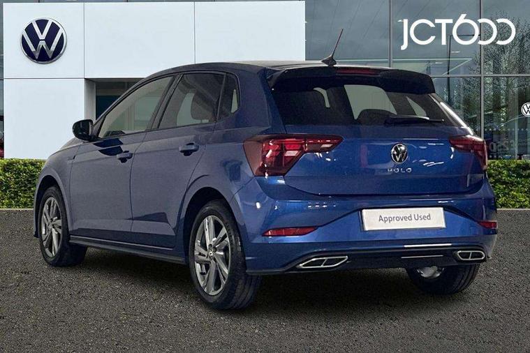 Advanced driver attention and drowsiness monitor, Bluetooth mobile phone interface, Digital Cockpit Pro with 10.25" Display, Dynamic road sign display, Emergency call service, Mobile phone preparation with inductive charging function, Multifunction camera, Power assisted speed sensitive steering, Predictive adaptive cruise control without follow-to-stop and speed limiter, Preparation for We connect and We connect plus, Speedo and rev counter, electronic odometer, trip, service interval display and fuel gauge, Standard rear axle, Travel Assist - Lane keeping system and traffic jam assist, Travel assist including emergency assist, Trip computer, Warning signal and warning light for front and rear seatbelts not fastened, Washer fluid level indicator, Wireless app connect, Front wheel drive, Rear shock absorpion, Start-stop system with battery regeneration (recuperation - energy recovery during braking), DAB Digital radio, Diversity antenna for FM reception, Body colour bumpers, Body colour door handles, Electric front windows, Front scuff plates with R-Line logo, Heat insulating glass windscreen, Power folding adjustable/heated exterior mirrors and front passenger exterior mirror lowering function, Rear electric windows, Rear fog light, Rear side wing doors, Rear windscreen washer and wiper with interval delay, Third brake light, 12V power socket in centre console, 2 USB-C ports in the front, 2 USB-C charging sockets on the center console in the rear, 3 rear head restraints, 60/40 split folding rear seat and rear seat bench not split, Air care climatronic air conditoning system with active combination filter and 2-zone temperature control, Black roof lining, Carpet mats, front and rear, Chrome plated radiator grille inserts, air vent surrounds and light switch surrounds, Door and side trim panel, Driver and front passenger seat height adjustment, Driver/passenger sunvisors with illuminated vanity mirrors, Front centre armrest, Front footwell illumination, Front seat backrest storage pockets, Front sports comfort seats, Handbrake lever handle in leather, Headliner in recycled material, Isofix child seat preparation easy-fit (for two outer rear seats, and front passenger seat) compatible with I-size, Karoso artvelours cloth upholstery, Leather trimmed gear knob, LED interior light with switch off delay and dimmer, 2 reading lights front and rear, Luggage compartment cover, Luggage compartment floor, Luggage compartment lighting, Lumbar adjustment for front seats, Multifunction steering wheel, Single front passenger seat, Stainless steel pedals, Standard pedal cluster, Light and sight pack - Polo R-Line/Black Edition, 3 point height adj front seatbelts + pretensioners, 3x3 point rear seatbelts, ABS, Driver and front passenger airbag with front passenger airbag deactivation, Drivers and front passengers safety optimised head restraints, ESC (Electronic stability control) + EDL (Electronic Differntial lock) and ASR (Traction control), Extended and predictive pedestrian/ cyclist protection, Front curtain and side airbags with center airbag, Hill hold control, Manual child lock in rear doors, Single tone horn, Tyre pressure loss indicator, Alarm with interior protection, Anti-theft alarm system with interior monitoring, backup horn, and towing protection, Anti-theft wheel bolts, Electronic engine immobiliser, Chrome applications on rotary light, mirror adjustment, window regulator switches, outlet with frame in black, Dark grey anodised matt decorative inserts in dash and front door panels, 16" Coventry alloy wheels, Low rolling resistance tyres,
