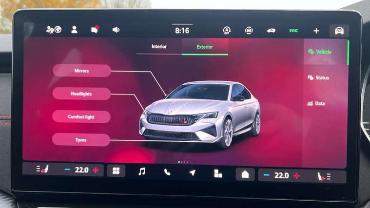 1x USB Typc C port in rear view mirror, 4x USB Type C ports - 2x in front centre console and 2x in rear (45W), Drive mode selection, Driver fatigue sensor, eCall emergency system, Electrically operated boot with virtual pedal, Front assist system, Progressive dynamic steering, Traffic sign recognition, Turn Assist, Virtual Cockpit - 10.25" digital display, Voice control system, Wireless charging (15W) with cooling function, Wireless SmartLink for Apple CarPlay and Android Auto, Electronically controlled limited slip differential, vRS suspension, 13" touchscreen display with navigation, DAB Digital radio, Aero front windscreen wipers with intermittent function, Auto dimming rear view mirror, Black sport exhaust pipes, Body colour bumpers, Body colour door handles, Electric front and rear windows, Exterior gloss black sports styling including front grille, window surrounds, door mirrors and badging, Gloss black diffuser, Gloss black spoiler, Heated rear windscreen, High beam control, High level third brake light, Ice scraper in fuel cap, LED daytime running lights, Logo projection in front doors, Rain and light sensors, Rear fog light on one side, Rear privacy glass, Rear side wing doors, Unique vRS bumpers and exterior styling, 12 volt socket in boot, 3 rear headrests, 3 seat bench in 2nd row, 4 foldable roof handles, Aluminium pedals, Front head restraints, Front sport seats, Heated front seats, Illuminated glovebox, Interior door handles in dark chrome, Jumbo Box storage, Luggage compartment lighting x2 lights, Mechanical rear seat release from boot, Parcel shelf - folding, Single front passenger seat, Steering wheel in black leather with black stitching, Storage compartments in left and right of boot, Sun visors with mirrors, Sunglasses storage, Ticket holder, Umbrella in door panel, Unsplit rear bench seat, split folding backrest with centre armrest with cupholder, Waste bin in door panel, Comfort package - Octavia, Family package - Octavia, Light and view package plus - Octavia, vRS Design Selection pack - Octavia, 3x3 point rear seat belts, Alarm with interior monitoring, tilt sensor and back up horn, Curtain airbags and front side airbags, Driver and front passenger airbags, Drivers knee airbag, Electronic parking brake, ESC including ABS, EBV, MSR, ASR, EDS, HBA, DSR, Front central airbag, Hill hold assist, ISOFIX on front passenger seat and outer rear seats, Passenger airbag deactivate switch, Red brake calipers, Three point seat belts in front and rear, Two tone horn, Tyre pressure monitor, Visual and acoustic seat belt reminder, Warning reflectors in front door, Anti-theft wheel bolts, Keyless start/stop, Remote central locking, Gloss black air vent surrounds, 19" Elias anthracite alloy wheels,