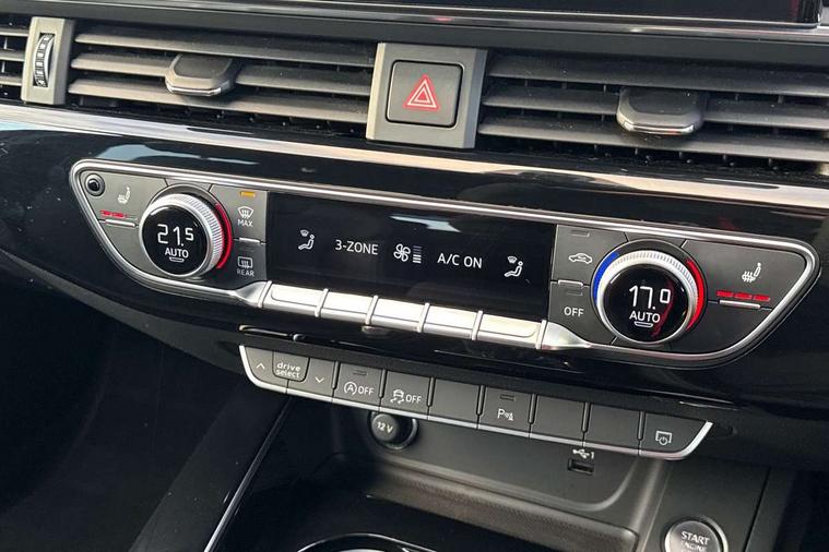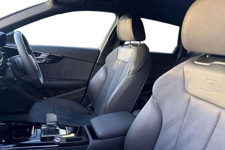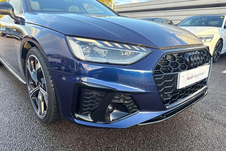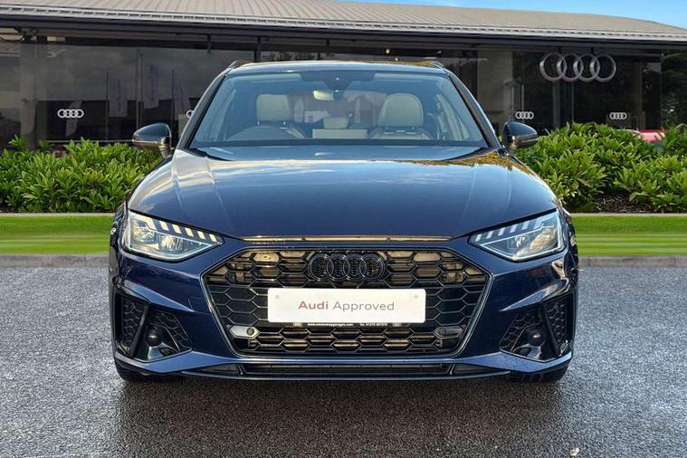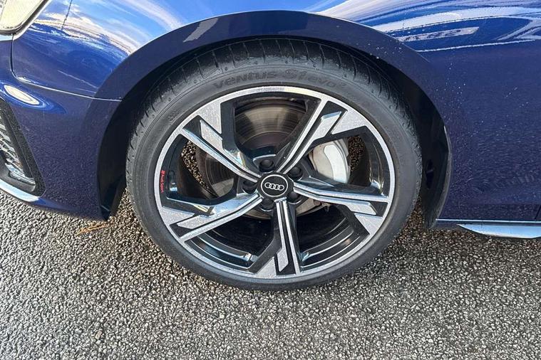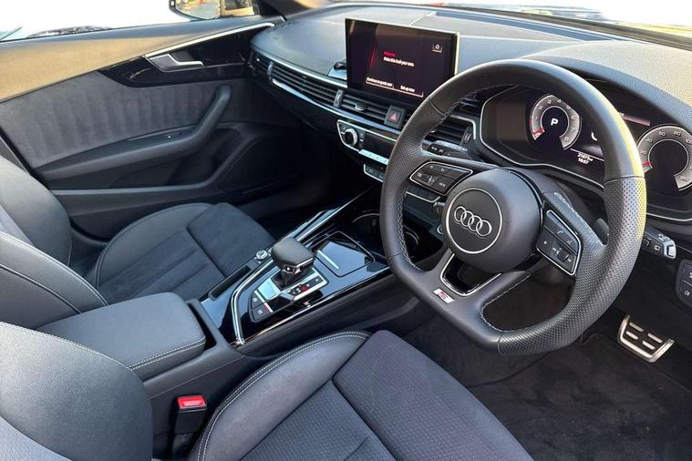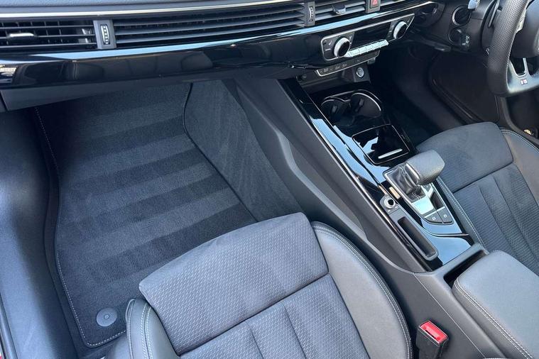 Audi connect safety and service (e-call), Audi connect with Amazon Alexa Integration, Audi drive select, Audi smartphone interface, Audi virtual cockpit, Automatic start-stop system with coasting functionality and efficiency programme, Bluetooth interface, Electromechanical power steering, Email, calendar and text messages displayed via MMI, MMI Navigation plus with MMI touch includes 10.1" high resolution colour MMI display, 3D map, Power operated tailgate, Voice control system, 54 litre fuel tank, Sports suspension lowered by 23mm, 2 USB charging ports, 8 passive loudspeakers, DAB digital radio reception, Audi beam uses LEDs to project the audi logo onto the ground as you exit your A4, Auto dimming rear view mirror, Black Audi rings and black badging (model name in black badging, no engine badging), Body colour door handles, Body colour front spoiler lip, Body colour side sill trim, Electrically folding auto dimming/adjustable/heated door mirrors with LED side indicators and kerb view function for passenger side, Exhaust tailpipes in high dark chrome, Front and rear bumpers with side skirts, Grained matt black side air inlets with matt aluminium silver inlay, High beam assistant, High gloss black B pillar trims and triangular rear door trim, LED headlights with LED rear lights + dynamic rear indicators + headlight adjustment and high beam, turning light + LED daytime running lights, LED third brake light, Privacy glass, Rain and light sensors, Rear diffuser in matt black with trim strip in matt aluminium silver, Rear side wing doors, Rear wiper, RS4 rear spoiler in body colour, S Line badges on the front wings, S Line roof edge spoiler, Variable intermittent front wash/wipe, Windscreen with acoustic glazing, 4 way electric lumbar support for driver and front passenger, 40/20/40 split folding 3 rear seat bench in 3 parts with rear centre armrest, Black cloth headlining, Black perforated leather gearknob, Contrast stitching on seats, steering wheel and gear lever gaiter, Deluxe 3 zone electronic climate control, Door sill trims with aluminium inlay, Electric load area cover, Front and rear head restraints, Front centre armrest, Heated front seats, Illuminated door sill trims with S logo, ISOFIX child seat mounting and top tether, Manual seat adjustment, Single front passenger seat, Stainless steel pedals and foot rest, Black styling pack - A4 Avant, LED Interior light pack - A4/S4, 3 rear seatbelts, 6 airbags - Driver, front passenger, curtain and side windows, Electronic Stabilisation Control (ESC) including ABS, ASR and EDL, Hill hold assist, Multi collision brake assist, Pop-up bonnet for pedestrian protection, Pre sense city, Rear door child safety locks, Seatbelt monitoring, Warning triangle and first aid kit, Anti theft alarm, Anti theft wheel bolts, Central locking, Keyless Go, Piano black finish inlay, 19" 5 arm flag design Audi sport diamond cut alloy wheels in gloss anthracite black, Tool kit, Tyre repair kit,