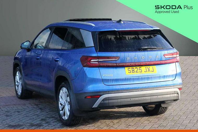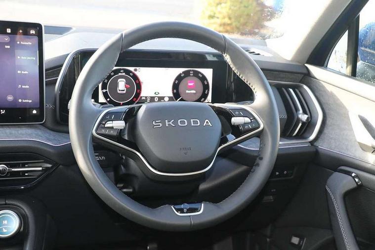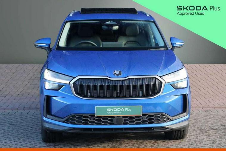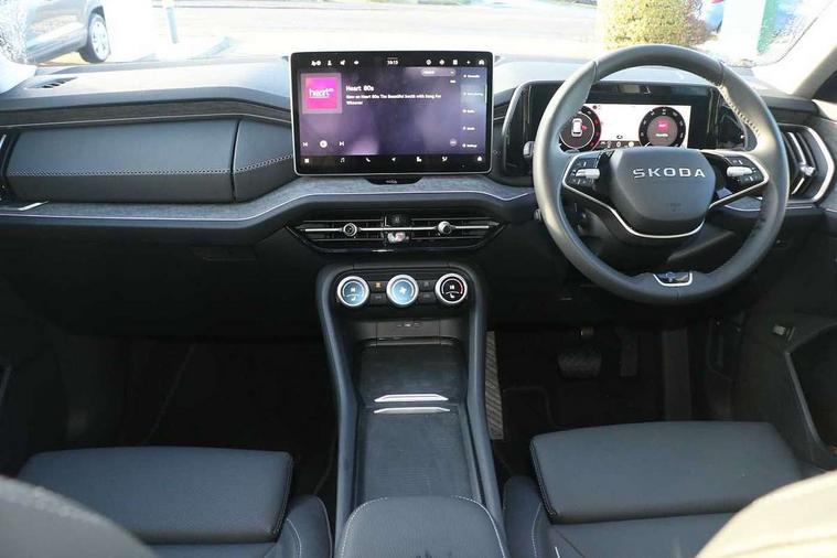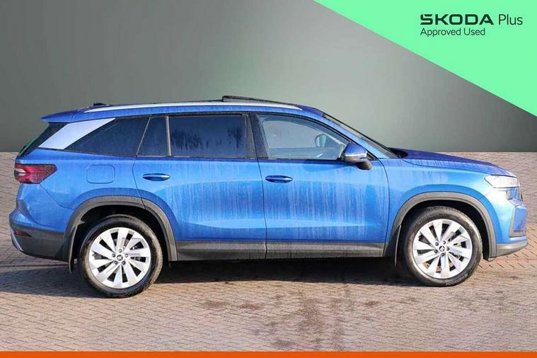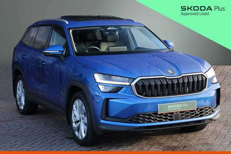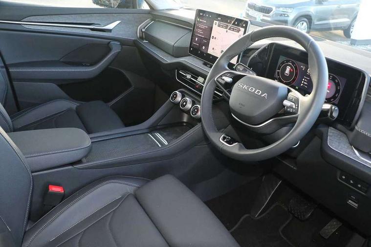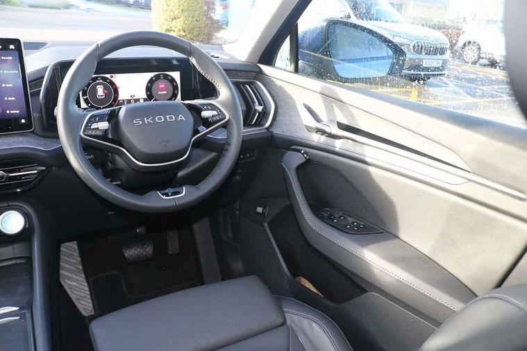 13" satellite navigation touchscreen display, Blind spot detection with door exit warning, Bluetooth system, ChatGPT functionality, Driver alert - Fatigue and drowsiness monitor, Dry display cleaner, Emergency call, Front and rear parking sensors, Front cross traffic assist, Lane assist, PAS, Rear traffic assist, Tailgate unlocking from outside, Traffic sign recognition, USB C Port x 2 in front centre console, Virtual Cockpit - 10.25" digital display, Voice control system, Wireless charging for two smartphones (15W) with cooling function, Wireless SmartLink for Apple CarPlay and Android Auto, Stop/start function, 2x USB-C in the rear, DAB Digital radio, Aero front windscreen wipers with intermittent function, Auto dimming rear view mirror, AWL (all weather lighting) and all weather light with cornering function, Black wheel arch surrounds, Body colour bumpers, Body colour door mirrors and handles, Cornering light and poor weather light, Electric folding /adjustable/separted heated/folding door mirrors, auto dimming with boarding sports and memory function, Electric front and rear windows, Exterior black decorative trims, Heat insulating glass in windshield, Heated rear window, Ice scraper in fuel tank cap, Invisible tailpipe, LED daytime running lights, LED third brake light in rear spoiler, Light assistant with automatic headlight control and coming home feature, Logo projection in door mirrors, Privacy glass, Rear roof spoiler, Rear side wing doors, Rear window wiper, Red decorative strip between rear LED lights, Safety reflectors on front and rear doors, Unique dark chrome design logo on alloy wheels, Window control switches with black trim, Windscreen wipers with rain sensor, Without engine designation, 1.5l bottle holder points in all door, 1x centre rear reading light, 2 seat bench in 3rd row, 3 configurable smart dials with 32mm coloured display, 3 seat bench in 2nd row, 4 foldable roof handles with rear coat hooks, Ambient interior lighting - Dashboard, front-door stowage compartments, front and rear door panels and footwell lighting, Automatic gear selector on steering column, Chrome interior door handles, Driver/front passenger reading lights, Fabric headlining, Fixed bench 40:60:40 split folding backrests, Front and rear floor mats, Front centre armrest with jumbo box storage compartment, cup holder and 12V socket, Height adjustable front headrests, Isofix child seat fittings in outer middle row rear seats and front passenger with top tether, Manually adjustable steering column, Pollen filter, Rear centre armrest with cupholders, Rear seat boot backrest release, Single front passenger seat, Skoda lettering on steering wheel, Storage pocket including mobile phone pockets on the backs of the front seats, Sunvisors with illuminated vanity mirrors, Three rear height adjustable headrests, Ticket holder on A Pillar, Tri zone climate control, Umbrella in door panel x1 made from sustainable materials, Upper and lower glovebox with card holder and coin compartment, USB C port by rear view mirror for charging only (15W), Exterior styling pack - Kodiaq, Auto door release and activation of warning lights in the event of an accident, Driver and front passenger airbag with knee airbag and front passenger airbag deactivation, Electric child locks, Electronic parking brake, ESC (incl. ABS+EMD+MSR+ASR+EDL+HBA+DSR+RBS+ESBS+MCB+TSA+XDS), Front assist with braking reaction to vehicles, pedestrians and cyclists, Front disc brakes, Fuel cut off safety device, Height adjustable front 3 point seatbelts + pretensioners, Hill hold assist, Junction assist with automatic emergency braking, Rear disc brakes, Safety vest holder in door, Seat belt reminder for all seats, Three point rear seat belts, Two tone horn, Tyre pressure monitor, Anti-theft wheel bolts, Immobiliser, Remote central locking with 2 keys,