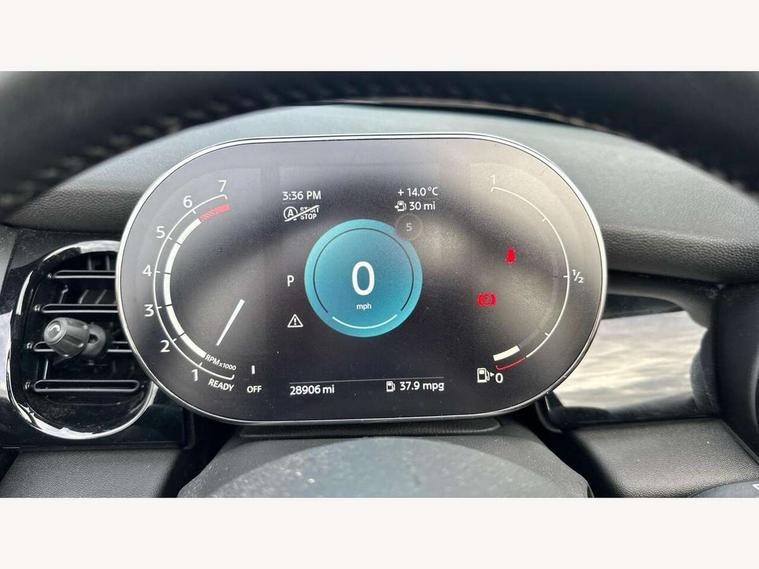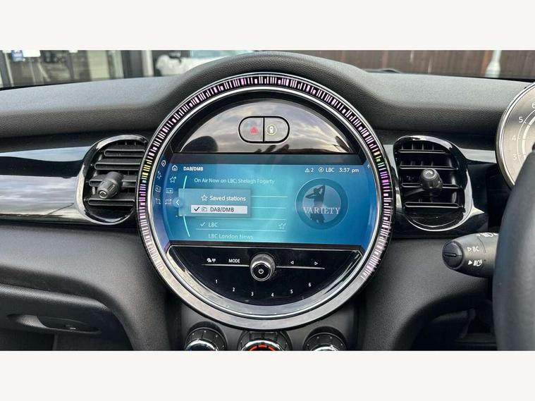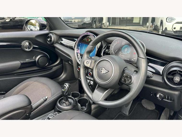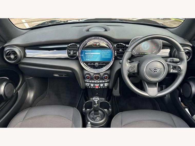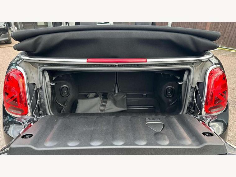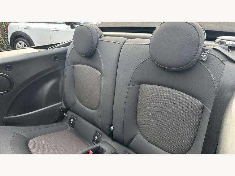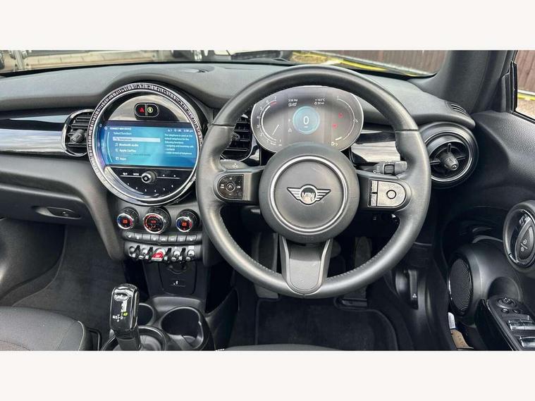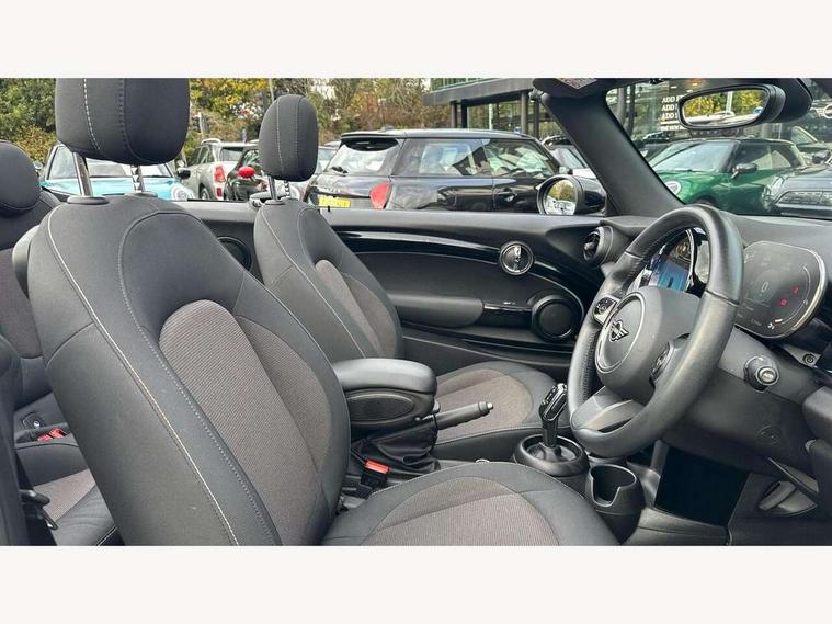 Apple CarPlay, Automatic start/stop function with brake energy recuperation, Compatible mobile phone bluetooth with audio streaming, Cruise control with brake assist, Electro-mechanical speed dependant steering assistance, Instrument cluster, Mini E-call, MINI TeleServices, On board computer, Rear park distance control, Service interval indicator, Double Vanos system, Fully variable valve control, High precision injection, Performance Control, Steptronic transmission with double clutch, FM tuner and DAB digital radio, Automatic headlight activation switch, Body colour fuel filler cap, Chrome border high gloss black slats radiator grille, Dynamic brake lights, Electric windows, Fully electric black softtop with integrated sunroof functionality, Heated rear window, Heated windscreen washer jets, LED headlight with closed ring and daytime driving lights, Left exhaust tailpipe with chrome finisher, Metal door sill strips with MINI imprint, Model logo Cooper on right of tailgate, Rain sensor window wipers, Rear boot, Rear fog lights, Rear LED lights with union jack design, Side scuttle panel with integrated indicator, Sun/heat protection glass, Third brake light, White indicator lenses, 12V Accessory socket in centre console, 2 seat bench in 2nd row, 4 lashing eyes in luggage compartment, 50/50 split folding rear seats, Chrome interior highlights, Colour line - Carbon black, Cupholders, Easy Load boot handles, Front and rear head restraints, Front and rear isofix with front passenger airbag deactivation, Glove compartment, Height and length steering column adjustment, Interior lighting with 12 different colours running across the dashboard, underneath door bezel illuminated laser engraved design on central display, Leather gearshift lever and handbrake gaiters, LED reading lights, vanity mirror lights, front foot well light and spotlight on front seats, Manual air conditioning, Mechanical seat adjustment, driver seat height adjust, forward/back and front seats backrest, Multifunction steering wheel, Single front passenger seat, Sports steering wheel, Storage compartments in doors, Sunvisors with vanity mirrors, Three spoke steering wheel with speed limiter and audio/communication controls, Velour floor mats, Convertible pack with comfort access - Mini Convertible, Navigation pack without Apple car play - Mini Convertible, 3 point seatbelts on all four seats, 6 Airbags - front, side and seat belt tensioners, Active rollover protection, Anti-lock braking system (ABS), DSC - Dynamic Stability Control, Front and rear disc brakes, Hill start assist, Single tone fanfare horn, Tyre pressure monitoring system, Alarm system with tilt sensor, monitoring doors, bonnet interior and tailgate, Electronic vehicle immobiliser, Keyless Go, Piano black interior trim, Tool kit, Tyre repair kit,