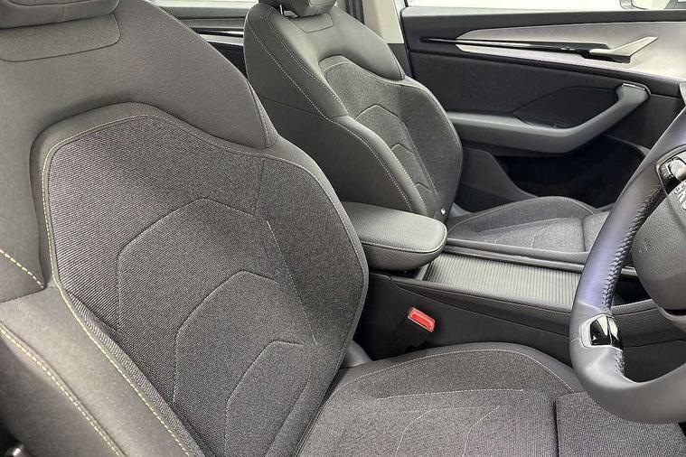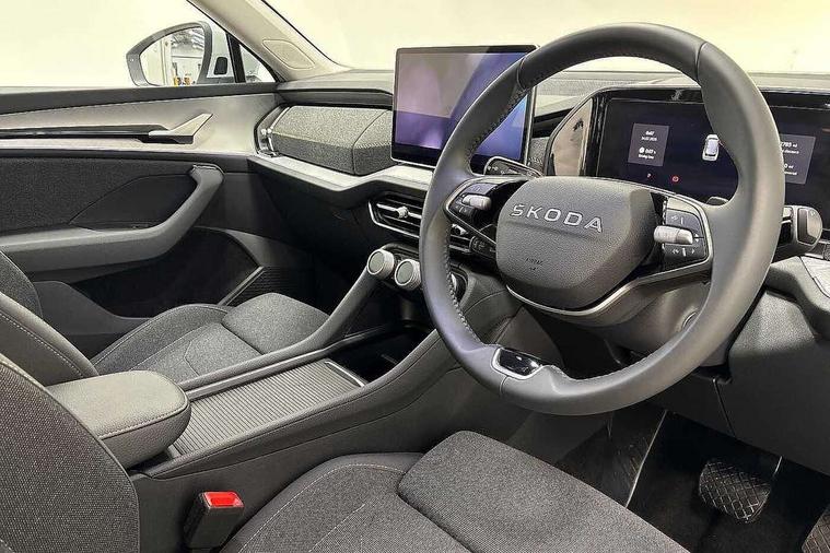 13" satellite navigation touchscreen display, Blind spot detection with door exit warning, Bluetooth system, ChatGPT functionality, Driver alert - Fatigue and drowsiness monitor, Dry display cleaner, Emergency call, Front and rear parking sensors, Front cross traffic assist, Lane assist, PAS, Rear traffic assist, Rear view camera, Tailgate unlocking from outside, Traffic sign recognition, USB C Port x 2 in front centre console, Virtual Cockpit - 10.25" digital display, Voice control system, Wireless charging for two smartphones (15W) with cooling function, Wireless SmartLink for Apple CarPlay and Android Auto, 32A charging cable, Stop/start function, 2x USB-C in the rear, 8 Speakers, DAB Digital radio, Aero front windscreen wipers with intermittent function, All weather light, Auto dimming rear view mirror, Black wheel arch surrounds, Body colour bumpers, Body colour door mirrors and handles, Cornering light and poor weather light, Electric folding /adjustable/separted heated/folding door mirrors, auto dimming with boarding sports and memory function, Electric front and rear windows, Exterior black decorative trims, Heat insulating glass in windshield, Heated rear window, Ice scraper in fuel tank cap, Invisible tailpipe, LED daytime running lights, LED front fog lamps, LED Headlights, LED rear fog light, LED rear lights, LED third brake light in rear spoiler, Light assistant with automatic headlight control and coming home feature, Logo projection in door mirrors, Rear roof spoiler, Rear side wing doors, Rear window wiper, Safety reflectors on front and rear doors, Unique dark chrome design logo on alloy wheels, Window control switches with black trim, Windscreen wipers with rain sensor, Without engine designation, 1.5l bottle holder points in all door, 1x centre rear reading light, 3 configurable smart dials with 32mm coloured display, 3 seat bench in 2nd row, 4 foldable roof handles with rear coat hooks, Ambient interior lighting - Dashboard, front-door stowage compartments, front and rear door panels and footwell lighting, Automatic gear selector on steering column, Chrome interior door handles, Driver/front passenger reading lights, Fabric headlining, Fixed bench 40:60:40 split folding backrests, Front and rear floor mats, Front centre armrest with jumbo box storage compartment, cup holder and 12V socket, Height adjustable front headrests, Isofix child seat fittings in outer rear seats and front passenger with top tether, iV badging on boot, Manual height adjustment for front passenger seats and thigh support extender, Manual lumbar support for front passenger seat, Manually adjustable steering column, Pollen filter, Rear centre armrest with cupholders, Rear seat boot backrest release, Single front passenger seat, Skoda lettering on steering wheel, Storage pocket including mobile phone pockets on the backs of the front seats, Sunvisors with illuminated vanity mirrors, Three rear height adjustable headrests, Ticket holder on A Pillar, Tri zone climate control, Umbrella in door panel x1 made from sustainable materials, Upper and lower glovebox with card holder and coin compartment, USB C port by rear view mirror for charging only (15W), Auto door release and activation of warning lights in the event of an accident, Driver and front passenger airbag with knee airbag and front passenger airbag deactivation, Electric child locks, Electronic parking brake, ESC (incl. ABS+EMD+MSR+ASR+EDL+HBA+DSR+RBS+ESBS+MCB+TSA+XDS), Front assist with braking reaction to vehicles, pedestrians and cyclists, Front disc brakes, Fuel cut off safety device, Height adjustable front 3 point seatbelts + pretensioners, Hill hold assist, Junction assist with automatic emergency braking, Rear disc brakes, Safety vest holder in door, Seat belt reminder for all seats, Three point rear seat belts, Two tone horn, Tyre pressure monitor, Alarm with interior monitoring and tilt sensor with safe function, Anti-theft wheel bolts, Immobiliser, Remote central locking with 2 keys, Breakdown kit, Tool kit,