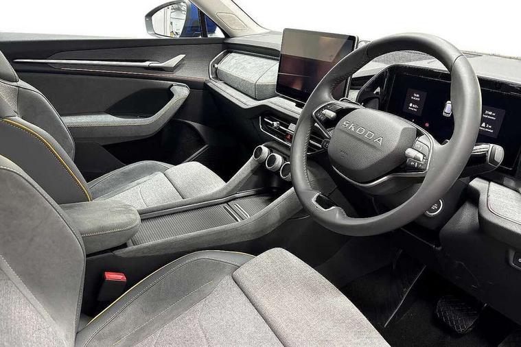 13" satellite navigation touchscreen display, Blind spot detection with door exit warning, Bluetooth system, ChatGPT functionality, Driver alert - Fatigue and drowsiness monitor, Dry display cleaner, Emergency call, Front and rear parking sensors, Front cross traffic assist, Lane assist, PAS, Rear traffic assist, Rear view camera, Tailgate unlocking from outside, Traffic sign recognition, USB C Port x 2 in front centre console, Virtual Cockpit - 10.25" digital display, Voice control system, Wireless charging for two smartphones (15W) with cooling function, Wireless SmartLink for Apple CarPlay and Android Auto, Stop/start function, 2x USB-C in the rear, 8 Speakers, DAB Digital radio, Aero front windscreen wipers with intermittent function, All weather light, Auto dimming rear view mirror, Black wheel arch surrounds, Body colour bumpers, Body colour door mirrors and handles, Cornering light and poor weather light, Electric folding /adjustable/separted heated/folding door mirrors, auto dimming with boarding sports and memory function, Electric front and rear windows, Exterior black decorative trims, Heat insulating glass in windshield, Heated rear window, Ice scraper in fuel tank cap, Invisible tailpipe, LED daytime running lights, LED front fog lamps, LED Headlights, LED rear fog light, LED rear lights, LED third brake light in rear spoiler, Light assistant with automatic headlight control and coming home feature, Logo projection in door mirrors, Rear roof spoiler, Rear side wing doors, Rear window wiper, Safety reflectors on front and rear doors, Unique dark chrome design logo on alloy wheels, Window control switches with black trim, Windscreen wipers with rain sensor, Without engine designation, 1.5l bottle holder points in all door, 1x centre rear reading light, 2 seat bench in 3rd row, 3 configurable smart dials with 32mm coloured display, 3 seat bench in 2nd row, 4 foldable roof handles with rear coat hooks, Ambient interior lighting - Dashboard, front-door stowage compartments, front and rear door panels and footwell lighting, Automatic gear selector on steering column, Chrome interior door handles, Driver/front passenger reading lights, Fabric headlining, Fixed bench 40:60:40 split folding backrests, Front and rear floor mats, Front centre armrest with jumbo box storage compartment, cup holder and 12V socket, Height adjustable front headrests, Isofix child seat fittings in outer middle row rear seats and front passenger with top tether, Manual height adjustment for front passenger seats and thigh support extender, Manual lumbar support for front passenger seat, Manually adjustable steering column, Pollen filter, Rear centre armrest with cupholders, Rear seat boot backrest release, Single front passenger seat, Skoda lettering on steering wheel, Storage pocket including mobile phone pockets on the backs of the front seats, Sunvisors with illuminated vanity mirrors, Three rear height adjustable headrests, Ticket holder on A Pillar, Tri zone climate control, Umbrella in door panel x1 made from sustainable materials, Upper and lower glovebox with card holder and coin compartment, USB C port by rear view mirror for charging only (15W), Variable boot floor, Auto door release and activation of warning lights in the event of an accident, Driver and front passenger airbag with knee airbag and front passenger airbag deactivation, Electric child locks, Electronic parking brake, ESC (incl. ABS+EMD+MSR+ASR+EDL+HBA+DSR+RBS+ESBS+MCB+TSA+XDS), Front assist with braking reaction to vehicles, pedestrians and cyclists, Front disc brakes, Fuel cut off safety device, Height adjustable front 3 point seatbelts + pretensioners, Hill hold assist, Junction assist with automatic emergency braking, Rear disc brakes, Safety vest holder in door, Seat belt reminder for all seats, Three point rear seat belts, Two tone horn, Tyre pressure monitor, Alarm with interior monitoring and tilt sensor with safe function, Anti-theft wheel bolts, Immobiliser, Remote central locking with 2 keys, Breakdown kit, Tool kit,