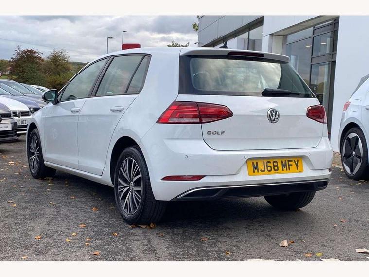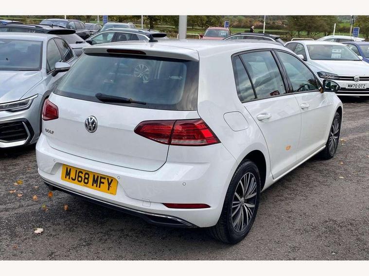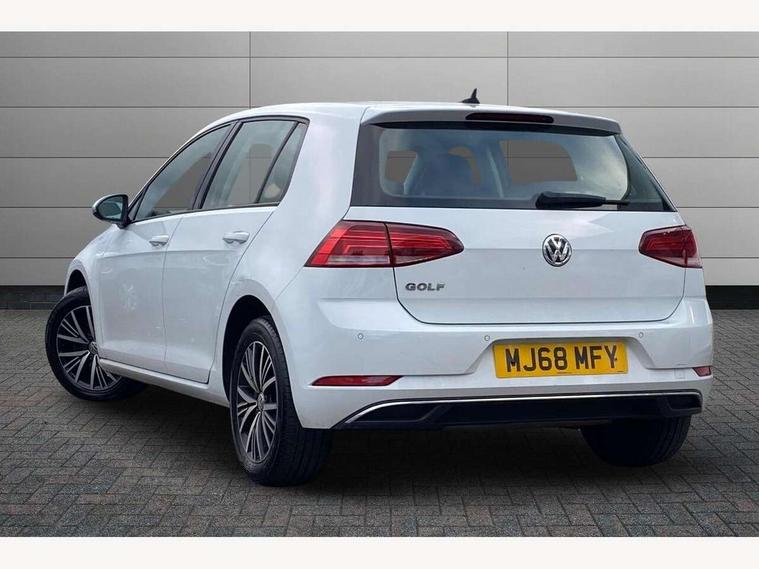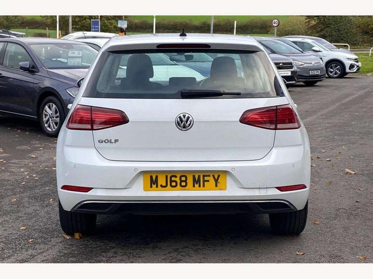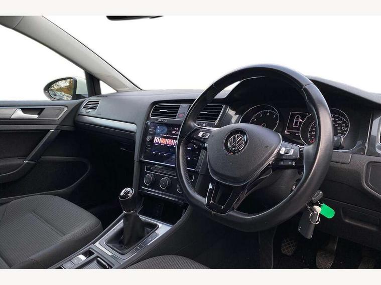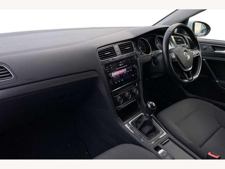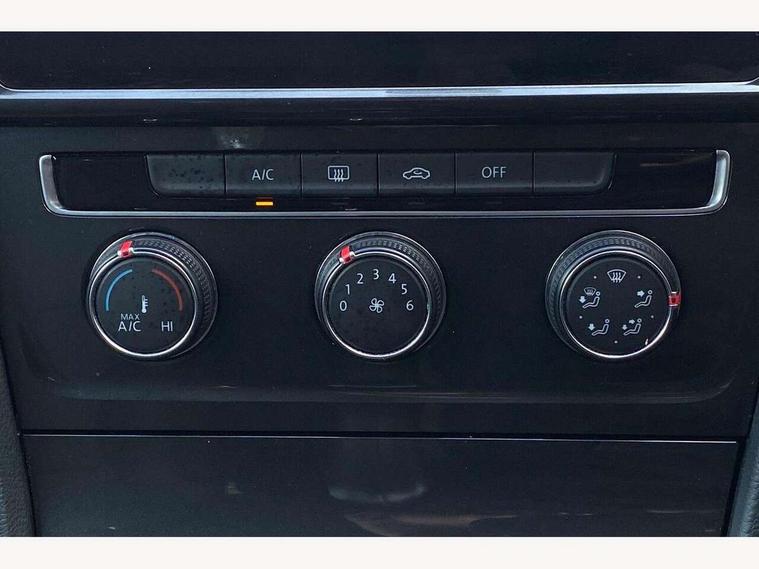 App-Connect, 'Lights On' Reminder warning buzzer, 8" colour touch screen, ACC - Adaptive cruise control with front assist, forward collision warning, distance monitoring, city emergency brake and speed limiter, Bluetooth telephone and audio connection for compatible devices, Brake pad wear indicator warning light, Driver alert system, Driver profile selection, Driving Mode Selection with four preset modes - Eco, normal, sport or individual modes, Front assist, radar sensor controlled distance monitor, city emergency braking + predictive pedestrian protection, Front assistant collision mitigation, Instrument cluster in white, Multifunction computer with visual gear change recommendation for fuel consumption, Power assisted speed sensitive electro-mechanical steering, Speedo, rev counter, electronic odometer, trip, service interval display, exterior temperature and fuel gauge, Stop/start system, Ultrasonic front and rear optical and audible parking sensors, Warning buzzer and light for front seatbelts unfastened, Battery regeneration during braking, XDS electronic differential lock, 8 speakers, CD/MP3/WMA, USB and SD card reader, aux-in, Composition media system, DAB Digital radio receiver, SMS Functionality, Automatic coming/leaving home lighting function, Automatic dimming rear view mirror/rain sensor, Black front air intake and radiator grille with chrome insert, Black rear diffuser, Body colour bumpers, Body colour door handles, Body colour door mirrors with integrated indicators, Electric front windows, Electric rear windows, Electrically adjustable and heated door mirrors, Glavanised body, Heated rear windscreen, High level 3rd brake light incorporating LED Technology, Range adjustable headlights via infotainment system with LED daytime running lights, Rear number plate lights incorporating LED technology, Rear window aerial, Rear window wash/wipe with intermittent wipe, Reflectors in all doors, Remote electrically foldable door mirrors, door mirror puddle lights and reverse activated kerb-view adjustment on passengers door mirror, Tailgate with integrated rear roof spoiler, Windscreen wipers/ intermittent wipe + 4 position delay, 12V socket in luggage compartment, 3 rear headrests, 4 load lashing points in luggage compartment, 60/40 split folding rear seat backrest, Bag hook in luggage compartment x 2, Cooled glovebox, Dust/pollen filter, Front and rear reading lights incorporating LED technology, Front centre armrest with storage compartment and two rear air vents, Front seat back storage pockets, Grab handles front x 2, rear x 2 with integrated coat hooks, Height and reach adjustable steering wheel, Illuminated vanity mirrors, Instrument lighting white adjustable panel illumination, Interior light delay, Isofix preparation for 2 rear child seats, Load through provision with rear centre armrest and cupholders x2, Luggage compartment light, Overhead storage box, Pearl grey headlining, Storage box in luggage compartment, Storage compartment in roof console with cover, Storage compartments in front doors, Storage compartments in rear doors, Stowable luggage compartment cover, Sun visors, Three spoke multi-function leather trimmed steering wheel and gearknob, Variable boot floor, height adjustable and removable, Mirror pack - Golf, 3 rear three point seatbelts, Airbags - Driver's and front passenger's, curtain airbag, Driver's knee, front side impact and passenger's airbag deactivation switch, Anti-lock Braking System (ABS) with Hydraulic Brake Assist (HBA), Automatic post collision braking system, Child locks on rear doors, Driver/Passenger optimised head restraints, Electronic parking brake with auto hold, Electronic stability control (ESC) including Electronic differential lock (EDL) and ASR (Traction control) with deactivation via infotainment system, ESP with EDL + ASR, Pre crash preventive occupant protection, Three point height adjustable front seatbelts with tensioners, Tyre pressure loss indicator, Alarm with interior protection, Electronic engine immobiliser, Remote central locking with 2 remote folding keys, Brushed dark silver decorative inserts in dash and door panels, Chrome plated air vent surround, Chrome-plated light switch surround, Polar night black centre console, Steel space saver spare wheel,