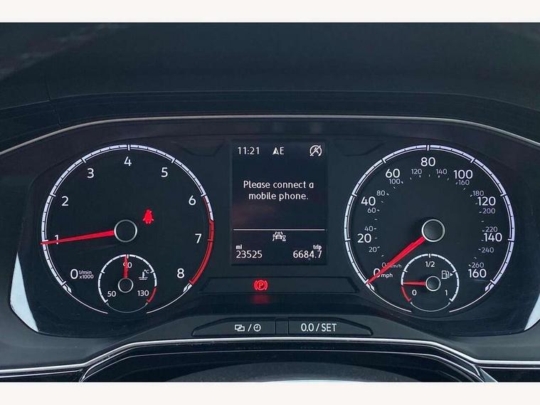 'Lights On' Reminder warning buzzer, Adaptive cruise control including front assist, forward collision warning, autonomous emergency braking, speed limiter, Blind spot monitoring, Bluetooth telephone and audio connection for compatible devices, Car information display, Driver alert system, eCall emergency call system, Front and rear parking sensor with ultrasonic, audible with audio volume reduction when activated and optical parking display via vehicle audio system, Lane assist, Multifunction computer with visual gear change recommendation for fuel consumption, Operating permit alteration, Power assisted speed sensitive steering, Speedo, rev counter, electronic odometer, trip, service interval display, exterior temperature and fuel gauge, Stop/start system, Warning sound and light for doors and tailgate open, Warning sound and light for front seatbelts unfastened, We Connect Go Dongle, Wireless Car net app connect with Apple CarPlay, combined functionality of Apple CarPlay/Android Auto and MirrorLink, Battery regeneration during braking, Misfuel prevention device, 2x USB connection with USB charging sockets and in rear centre console, DAB Digital radio receiver, Diversity antenna for FM reception, Multi device interface (MDI) with USB connection, Music playback - MP3, WMA and AAC files, Premium USB cable for Apple or Android smartphone compatibility, Simultaneous pairing of 2 compatible mobile devices, Title and cover art display, Automatic dimming interior rear view mirror, Automatic hazard lights activation under emergency braking, Black door mirrors, Black roof rails, Body colour door handles, Body coloured bumpers, Dusk sensor + automatic driving lights, Dynamic headlight range control with self adjusting whilst driving, Front and rear electric windows, Front fog lights with static cornering function, Galvanised body, Heated rear window, High level 3rd brake light, LED dipped and main beam headlights with automatic range adjustment including separate unique signature LED daytime running lights, Lower door sills and door pillars in black, Manual coming/automatic leaving home lighting function, Radiator grille with high gloss surface and chrome strip, Rain sensor, Rear fog light on one side, reversing light on both sides, Rear lights incorporating LED technology, Rear tinted glass 65% approx light absorbing from B pillar backwards, Rear window aerial, Rear windscreen washer and wiper with interval delay, Reflectors in all doors, Tailgate with integrated roof spoiler, Windscreen wipers/ intermittent wipe + 4 position delay, 12V Accessory socket in centre console, 3 rear head restraints and 3 rear three point seat belts with ECE label, 60/40 split folding rear seat backrest, Comfort front sport seats, Drawer under drivers seat, Driver and front passenger sunvisor with vanity mirror, Driver's sunvisor with ticket holder, Dust and pollen filter, Front + rear carpet mats, Front and rear reading lights X 2, Front centre armrest with storage compartment, Front seat back storage pockets, Front seats with adj lumbar support, Glovebox, Heating and fresh air system with 4 stage blower, Height/reach adjust steering wheel, Instrument lighting white adjustable panel illumination, Interior light with delay, Isofix child seat preparation for 2 rear child seats, Luggage compartment cover, Luggage compartment lighting, Moveable and foldable Rear bench seat, Storage compartment in drivers and front passengers door, Three spoke multi-function leather trimmed steering wheel and gearknob, Variable boot floor, Anti-lock Braking System (ABS) with Hydraulic Brake Assist (HBA), Automatic post collision braking system, Driver and front passenger safety-optimised head restraints, Drivers and Front Passengers airbags with front passengers airbag deactivation switch, ESC with EDL, ASR, EDTC and trailer stabilisation function, Extended and proactive pedestrian protection, Front and rear curtain airbags, Front disc brakes and rear drum brakes, Front seat side impact airbags, Height adjustable 3 point automatic front seatbelts with pretensioners, Hill start assist, Pre crash preventive occupant protection, Rigid safety cell with front and rear crumple zones, Single torn horn, Tyre pressure loss indicator, Volkswagen roadside assistance, Alarm with interior protection and deactivation via infotainment system, Child security locks in rear doors, Electronic engine immobiliser, Remote tailgate unlocking using key fob, Decorative inserts transition high gloss black/platnium grey, 17" Manila black diamond turned surface alloy wheels + anti theft wheel bolts, Breakdown kit,