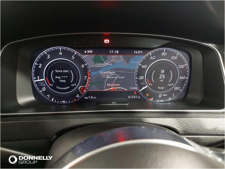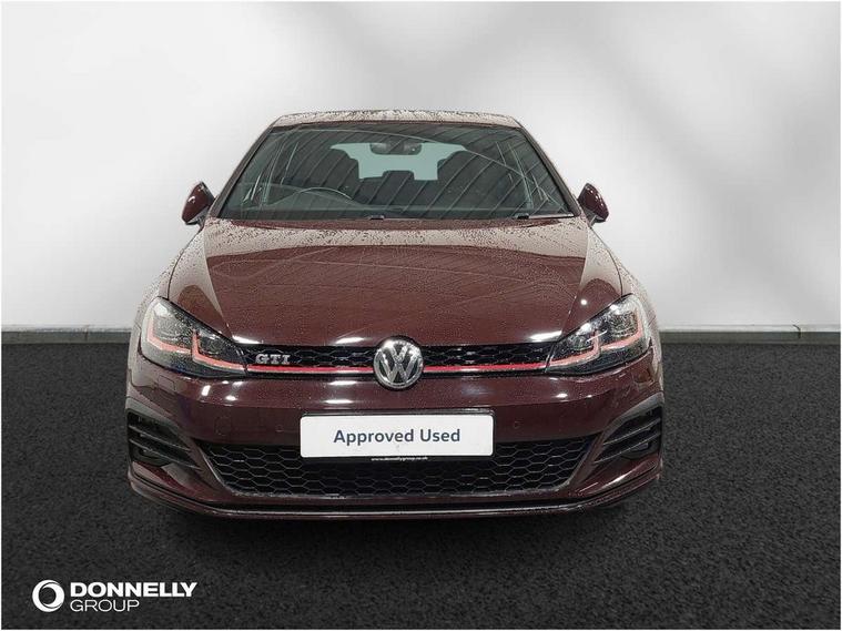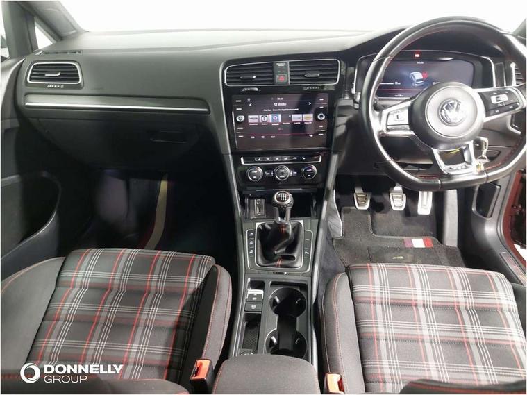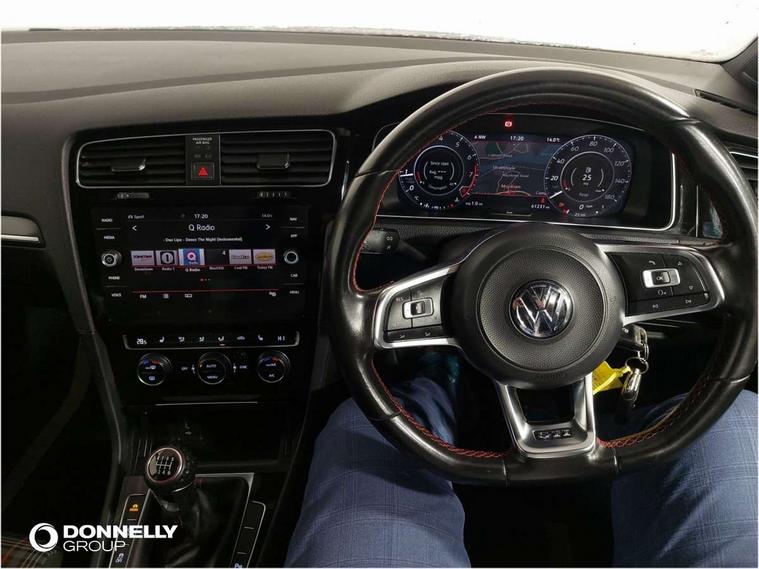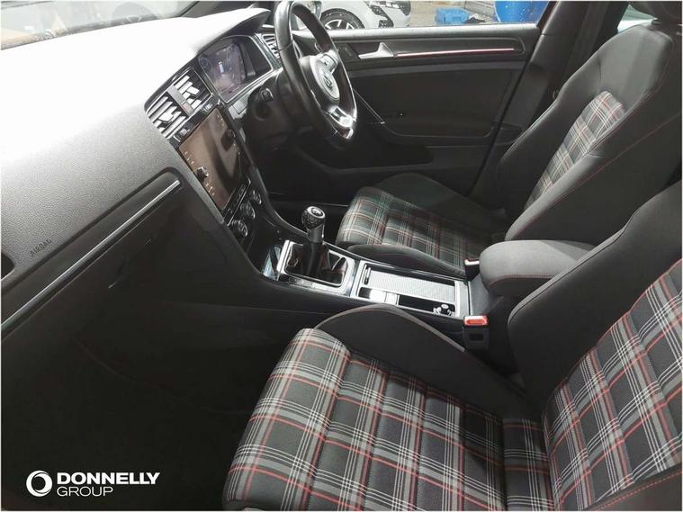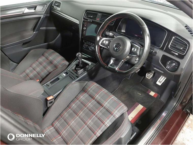 Chrome-plated light switch surround, Honeycomb black decorative inserts, Piano black centre console, Ambient lighting pack - Golf, Mirror pack - Golf, Space saver spare wheel, Alarm with interior protection, Electronic engine immobiliser, Remote central locking with 2 remote folding keys, CD/MP3/WMA, USB and SD card reader, aux-in, Composition media system, DAB Digital radio, 3 point height adj front seatbelts + pretensioners, 3 rear 3 point seatbelts, ABS, Automatic post collision braking, Child locks on rear doors, Driver/Front Passenger airbags, Driver/Passenger whiplash optimised head restraints, Drivers knee airbag, Electronic parking brake with auto hold, ESP with EDL + ASR, Front and rear curtain airbags, Front passenger airbag deactivation, Front side airbags, Pre crash system, Red brake calipers, Tyre pressure monitor, 3D-LED-SBBR with sweeping indicator, Auto dimming rear view mirror, Automatic coming/leaving home lighting function, Automatic headlights, Black rear diffuser, Body colour door handles, Body colour door mirrors, Body colour rear roof spoiler, Body colour sports bumpers, Electric front windows, Electric rear windows, Electrically adjustable and heated door mirrors, Heated rear windscreen, Honeycomb radiator grille - black, LED daytime running lights, LED front fog lights, LED rear lights, Rain sensor, Rear windscreen washer and wiper with interval delay, Twin exhaust tailpipe, 12V socket in luggage compartment, 3 rear headrests, 3 spoke steering wheel, 60/40 split folding rear seat, Air conditioning - 2 zone electronic climate control, Bag hook in luggage compartment, Black headlining, Boot lashing points, Cooled glovebox, Courtesy light delay, Cover for storage compartment in centre, Dust/pollen filter, Front + rear carpet mats, Front centre armrest with storage box and rear air vents, Front passenger drawer stowage, Front passenger seat height adjust, Front seat back storage pockets, Grab handles, Height adjustable driver's seat, Height/reach adjust steering wheel, Illuminated door sills, Illuminated vanity mirrors, Isofix preparation for 2 rear child seats, Leather gear knob and handbrake grip, Load through provision with rear centre armrest and cupholders x2, Luggage compartment cover, Luggage compartment lighting, Multi-function leather steering wheel with red stitching, Overhead storage box, Stainless steel pedals, Storage box in luggage compartment, Storage compartments in doors, Sun visors, Variable boot floor, height adjustable and removable, App-Connect, 'Lights On' Reminder warning buzzer, 8" touch screen, Adaptive Cruise Control with pedestrian detection and speed limiter, Bluetooth hands free telephone connection, Brake pad wear indicator warning light, Driver alert system, Driver profile selection, Exterior temperature gauge, Front assistant collision mitigation, Instrument cluster in white, Multifunction computer, Progressive power assisted steering, Rev counter, Trip and service interval display, Ultrasonic front and rear optical and audible parking sensors, Warning buzzer and light for front seatbelts unfastened, Anti-tramp function, Lowered sports suspension, XDS plus electronic differential lock,