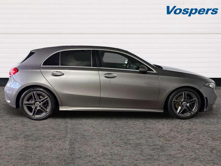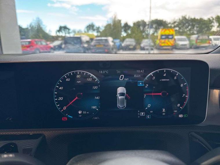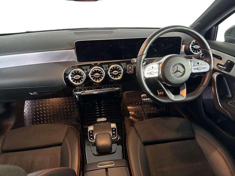 10.25" Digital instrument cluster display screen, 10.25" media display, 180 degree rear view camera with parking guidelines, Active lane keep assist, Active park assist with parktronic system including front and rear parking sensors, Attention assist, Brake pad wear indicator warning light, Car wash mode, Direct steering, Dual bluetooth interfaces, DYNAMIC SELECT with a choice of driving modes (ECO, Comfort, Sport and Individual), ECO start/stop function, Fluid level warning indicator for fuel, oil, coolant and washer fluid, Hard-disk navigation, Hey Mercedes Voice activation, Lamp failure indicator, MBUX augmented reality for navigation, Mercedes me connect including emergency call system, accident recovery, breakdown and maintenance management, Outside temperature gauge, Owners manual in English, Pre-installation for private car sharing, Pre-installation for Vehicle Monitoring, Pre-installation for Vehicle Setup, Preinstallation for Mercedes Benz link, Service indicator (ASSYST), Smartphone integration with Apple CarPlay and Android auto, Traffic sign assist, Trip computer, Wireless charging, Lowered comfort suspension, Rear axle torsion beam, 10 speakers, 2 USB ports (type C) in rear stowage compartment and one in front of center console, DAB Digital radio, MBUX multimedia system with DAB digital radio and touchpad including satellite navigation, Mercedes-Benz advanced sound system - 225W, 4 Electric Front and Rear windows, Adaptive brake lights, AMG bodystyling - Front apron with splitter in chrome, rear apron with chrome trim and chrome visible trim elements in tailpipe, Black weather strip, Body colour bumpers, Body colour door handles, Body colour side skirt, Body coloured door mirrors, Chrome beltline trim, Diamond radiator grille with chrome pins and silver louvre + chrome insert, Electric adjustable and heated door mirrors with integrated LED side indicators, Exhaust system - Twin visible tailpipes in polished stainless steel, Headlamp assist automatic headlamp activation, Heated glass rear windscreen + timer control, Illuminated front door sill panels with Mercedes-Benz lettering, LED high performance headlamps with integrated LED daytime running lights, LED tail lamp, LED third brake light, Multibeam LED with adaptive highbeam assist plus, Panoramic sliding sunroof, Privacy glass, Radio aerial, Rain sensing windscreen wipers with two sensitivity settings, Rear fog lights, Rear wiper, Window line trim strip in chrome, 3 Spoke flat bottom leather multi function steering wheel with perforated leather in grip area, 40:20:40 split folding rear seats, Artico man-made leather/Microfibre Dinamica upholstery with red contrast stitching, Auto Mercedes-Benz child seat recognition sensor, Black air vents with surround in silver chrome, Black roof lining, Brushed stainless steel sports pedals with rubber studs, Controller on centre console with chrome surround, Electrically adjustable front memory seats including lumbar support, Floor mats with stitched edging and AMG lettering, Front centre armrest with storage compartment, Front seat backs luggage nets, Front seat cushion length adjustment, Galvanished gear shift paddles on steering wheel, Heated front seats, Height/reach adjustable steering column, Interior lighting - 64 colour Ambient lighting, Interior mirror with reading lamps in black and frameless, Rear armrest with 2 cupholders, Rear head restraints, Seat occupancy sensor for front passenger seat, Sports seats with integrated headrests, Stowage compartment in centre console with retractable cover, Sunvisors with illuminated vanity mirrors, Touchpad on center console, Twin front cupholders, Two zone thermotronic luxury automatic climate control, Light and sight pack - A Class, Mirror package - A Class, Seat comfort pack - A Class, 3 rear 3 point seatbelts, ABS with Brake Assist, Active bonnet, Adaptive brake assist with hold function and hill start assist, Black seatbelts, Childproof locks manually operated for rear doors and electrically operated for rear power windows, Crash responsive emergency lighting, Driver and passenger head and side airbags, Drivers knee airbag, Dual stage driver/passenger airbags, Electronic parking brake, ESP curve dynamic assist, ESP with ASR, Front and rear seatbelt reminder, Front brake callipers with Mercedes Benz lettering, ISOFIX and top tether child seat fixing points in two outer rear seats, Tyre pressure monitoring system, Warning triangle and first aid kit, Window airbags, Alarm system/interior protection/immobiliser, Keyless entry lock/unlock, Keyless Go, Remote central locking and crash sensor with emergency opening function, Urban guard vehicle protection system with immobiliser and interior protection, Light aluminium with longitudinal grain interior trim, 18" AMG 5 twin spoke light alloy wheels in titanium grey with highsheen finish, Summer tyres, Tirefit sealant kit,