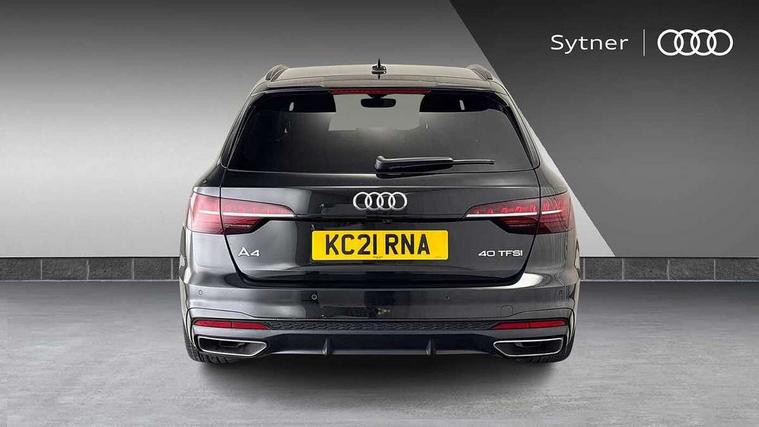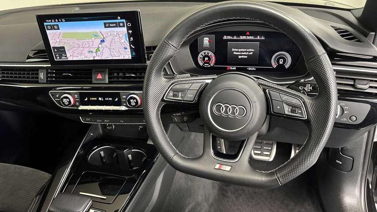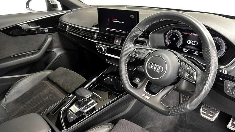 Audi connect safety and service (e-call), Audi connect with Amazon Alexa Integration, Audi drive select, Audi parking system plus with front and rear sensors, Audi smartphone interface, Audi virtual cockpit, Automatic start-stop system with coasting functionality and efficiency programme, Bluetooth interface, Electromechanical power steering, Email, calendar and text messages displayed via MMI, MMI Navigation plus with MMI touch includes 10.1" high resolution colour MMI display, 3D map, Power operated tailgate, Rear view camera, Voice control system, 54 litre fuel tank, Sports suspension lowered by 23mm, 2 USB charging ports, 8 passive loudspeakers, DAB digital radio reception, Auto dimming rear view mirror, Black Audi rings and black badging (model name in black badging, no engine badging), Black audi rings decal above rear sills, Body colour door handles, Body colour front spoiler lip, Body colour side sill trim, Electrically folding auto dimming/adjustable/heated door mirrors with LED side indicators and kerb view function for passenger side, Front and rear bumpers with side skirts, Front wing badges, Grained matt black side air inlets with matt aluminium silver inlay, High beam assistant, High gloss black B pillar trims and triangular rear door trim, LED headlights with LED rear lights + dynamic rear indicators + headlight adjustment and high beam, turning light + LED daytime running lights, Matt aluminium silver tailpipe trim, Privacy glass, Rain and light sensors, Rear diffuser in matt titanium black with trim strip in matt aluminium silver, RS4 rear spoiler in body colour, S Line roof edge spoiler, Windscreen with acoustic glazing, 4 way electric lumbar support for driver and front passenger, 40/20/40 split folding 3 rear seat bench in 3 parts with rear centre armrest, Black cloth headlining, Black perforated leather gearknob, Contrast stitching on seats, steering wheel and gear lever gaiter, Deluxe 3 zone electronic climate control, Door sill trims with aluminium inlay, Electric load area cover, Front and rear head restraints, Front centre armrest, Heated front seats, Illuminated door sill trims with S logo, ISOFIX child seat mounting and top tether, Manual seat adjustment, Stainless steel pedals and foot rest, Black styling pack - A4 Avant, LED Interior light pack - A4/S4, 3 rear seatbelts, 6 airbags - Driver, front passenger, curtain and side windows, Electronic Stabilisation Control (ESC) including ABS, ASR and EDL, Hill hold assist, Multi collision brake assist, Pop-up bonnet for pedestrian protection, Pre sense city, Seatbelt monitoring, Warning triangle and first aid kit, Anti theft alarm, Anti theft wheel bolts, Keyless Go, Piano black finish inlay, Tool kit, Tyre repair kit,