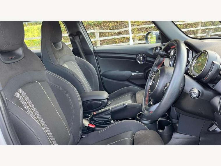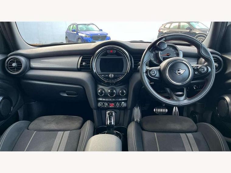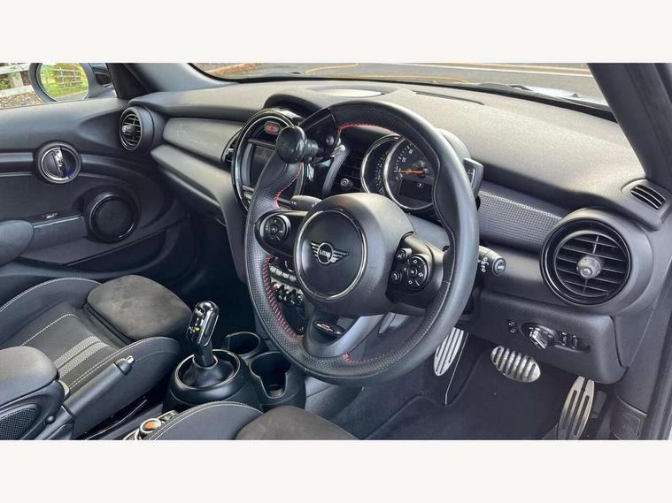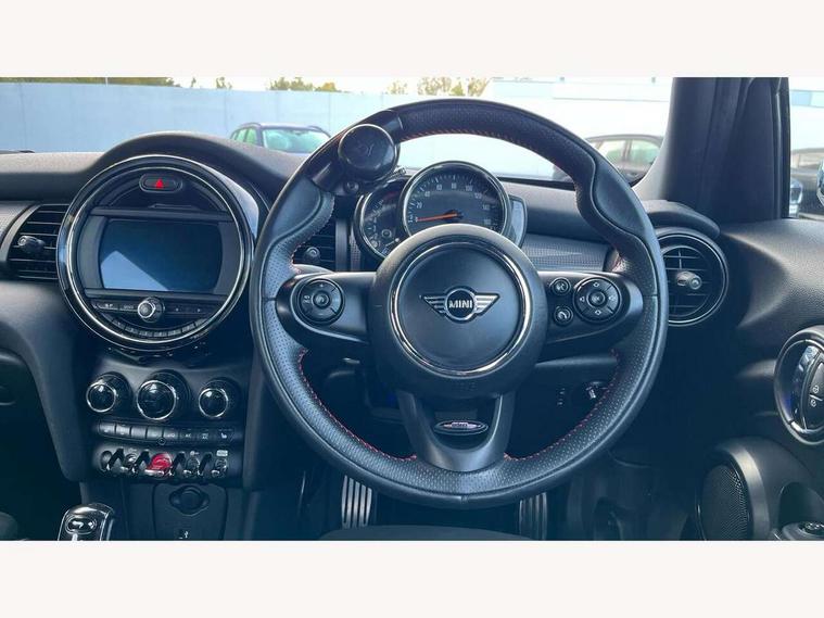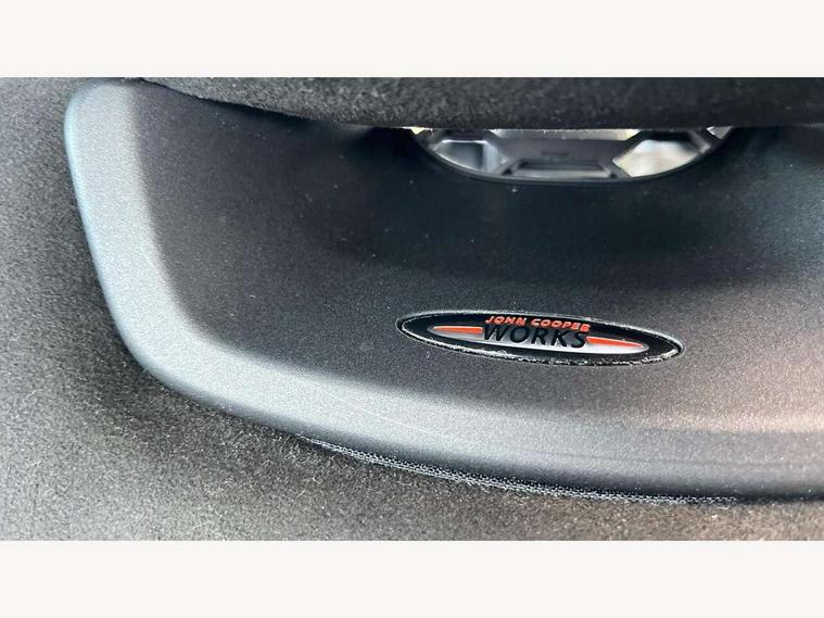 Automatic start/stop function with brake energy recuperation, Compatible mobile phone bluetooth with audio streaming, Electro-mechanical speed dependant steering assistance, Instrument cluster, MINI Driving Modes - centre toggle switch to control driving setting (sport, mid and green), Mini E-call, MINI TeleServices, On board computer, Service interval indicator, Double Vanos system, Fully variable valve control, Gear change indicator display, High precision injection, Performance Control, Steptronic transmission with double clutch, 6.5" touchscreen with LED ring, FM tuner and DAB digital radio, Automatic headlight activation switch, Body colour fuel filler cap, Chrome border high gloss black slats radiator grille, Dynamic brake lights, Electric front+rear windows, Heated rear window, Heated windscreen washer jets, John Cooper Works - aerodynamic kit (front and rear apron, spoiler), front and rear sport bumpers and part-painted side sills with door sill finishers, John Cooper Works rear spoiler, LED headlight with closed ring and daytime driving lights, Left exhaust tailpipe with chrome finisher, Metal door sill strips with MINI imprint, Model logo Cooper on right of tailgate, Rain sensor window wipers, Rear fog lights, Rear LED lights with union jack design, Rear window wiper, Side scuttle panel with integrated indicator, Sun/heat protection glass, White indicator lenses, 12V Accessory socket in centre console, 4 lashing eyes in luggage compartment, 60/40 split folding rear seat, Carbon Black colour line, knee roll and door armrests, Chrome interior highlights, Cupholders, Front and rear head restraints, Front and rear isofix with front passenger airbag deactivation, Glove compartment, Height and length steering column adjustment, Interior lighting with 12 basic colours selectable via toggle switch in roof, John Cooper Works leather steering wheel with contrasting stitching in Chilli Red with John Cooper Works logo, John Cooper Works Logo in seat, Leather gearshift lever and handbrake gaiters, LED reading lights, vanity mirror lights, front foot well light and spotlight on front seats, Manual air conditioning, Mechanical seat adjustment, driver seat height adjust, forward/back and front seats backrest, Mini logo projection on floor from drivers exterior mirror, Multifunction steering wheel, Storage compartments in doors, Sunvisors with vanity mirrors, 3 point seatbelts on all five seats, 6 Airbags - front, side, head and seat belt tensioners, Anti-lock braking system (ABS), DSC - Dynamic Stability Control, Front and rear disc brakes, Hill start assist, Single tone fanfare horn, Tyre pressure monitoring system, Alarm system with tilt sensor, monitoring doors, bonnet interior and tailgate, Electronic vehicle immobiliser, Start/stop toggle with keyless go, Tool kit,