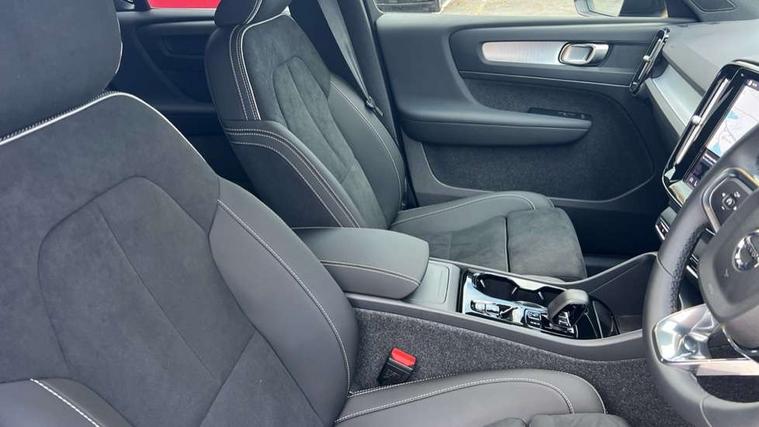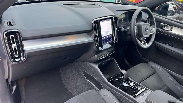 12.3" Progressive Driver Display, 9" centre console portrait touch screen, Adjustable steering wheel force, Android auto (Wired), Apple carplay (wired), Bluetooth handsfree system, Driver alert control, Driver assistance (pilot assist and adaptive cruise control), Driver awareness - Blind spot information system with steer assist, cross traffic alert with autobrake and rear collision warning and mitigation, E-call, Front and rear parking sensors, Front park assist, Google automotive services - Enabled entertainment apps, navigation with google maps, voice recognition with google assistant, Hands free power tailgate, Intelligent speed assistance, Lane keeping aid, Oncoming Lane Mitigation, Speed sensitive steering, Volvo cars services with app - Driving journal, emergency and breakdown call, engine remote start, remote door locking/unlocking and vehicle dashboard, Wireless/Inductive Mobile Phone Charging, Automatic transmission with start/stop and manual change functions, Dynamic chassis, DAB Digital radio, Steering wheel mounted remote controls, Adaptive brake lights with high level LED brake lights, Auto dimming feature for exterior door mirrors, Auto dimming interior mirror, Auto folding and heated power door mirrors, Automatic headlamp levelling, Automatic LED Headlights + Active high beam incorporating daytime running lights, Dark tinted windows - rear side windows and rear screen, Front aluminium tread plates, Front and rear electric windows, High gloss black front and rear skid plate, High gloss black front bumper deco, High gloss black front grille strikethrough and ironmark, High gloss black rear model, engine and volvo logo badges, High gloss black window trim, Home safe and approach lighting, Integrated roof rails in high gloss black, LED front fog lights, Puddle lights, Rain sensor with automatic windscreen wiper activation, Rear side wing doors, Rear wiper, Roof antenna, Roof spoiler, Visible VIN plate, 12V socket in front tunnel console and luggage compartment, 2-Zone electronic climate control with CleanZone air quality system and pollen filter, 3 seat bench in 2nd row, 3 Spoke tailored steering wheel with chrome trim, 60/40 versatile split folding rear seat, Centre console cupholders and storage, Charcoal carpet and floor mats, Charcoal headlining, Connect suede textile/microtech upholstery, Flexible load floor and grocery bag holder, Front headrests, Front seat cushion extensions, Glovebox bag hook, Heated front seats, Height adjustable passenger seat, Height/reach adjustable steering column, High gloss centre tunnel deco, High level illumination - Front door pocket, front side step (under door), tailgate, instrument panel, front door inlay, rear courtesy&reading lights, Integrated waste bin, Isofix attachments on outer rear seats, Load cover, Load protection net, Mid level illumination - Front footwell, luggage & glovebox compartment, front cabin courtesy & reading lights, illuminated vanity mirrors+ticket holder, Multi directional lumbar support for driver and passenger seat, Power driver seat with memory + exterior mirrors memory, Rear armrest with cupholders, Rear headrests, Single front passenger seat, Underfloor luggage compartment storage, Climate pack without heated front seats - XC40, 3x3 point rear seatbelts, City safety with steering support with Pedestrian + cyclist + front collision warning with full auto brake and rear auto brake, Driver and passenger airbags, Drivers knee airbag, Electronic parking brake with auto hold, First aid kit, Front and outer rear seatbelt reminder and pretensioners, Front seats SIPS airbags, Hill descent control - Off-road drive mode, Hill start assist, IC (Inflatable Curtains) - Full Length, Passenger airbag cut-off device, Power child locks on rear doors, Road sign information display, Run off Road Protection, SIPS (Side Impact Protection System), Slippery road and hazard light alert, Stability and Traction Control with Spin control, Engine Drag Control and Corner Traction Control, Tyre pressure monitoring system, Vehicle deceleration control with Anti-lock Brake System, Electronic Brake Distribution and Emergency Brake Assist, Warning triangle, WHIPS whiplash protection system - front, 2 x Key integrated remote control central locking including with deadlocking system and auto open/close windows, Anti-theft alarm including immobiliser/volume sensor + level sensor, Keyless drive includes keyless entry and keyless start, Locking wheel nuts, 20" 5 spoke high gloss black alloy wheels,