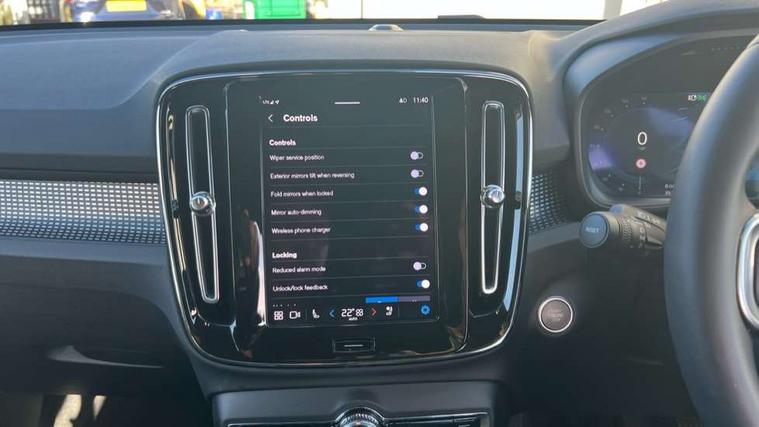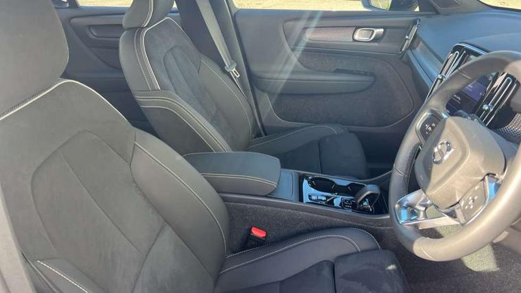 12.3" Progressive Driver Display, 9" centre console portrait touch screen, Adjustable steering wheel force, Android auto (Wired), Apple carplay (wired), Bluetooth handsfree system, Driver alert control, Driver assistance (pilot assist and adaptive cruise control), Driver awareness - Blind spot information system with steer assist, cross traffic alert with autobrake and rear collision warning and mitigation, E-call, Front park assist, Google automotive services - Enabled entertainment apps, navigation with google maps, voice recognition with google assistant, Hands free power tailgate, Intelligent speed assistance, Lane keeping aid, Oncoming Lane Mitigation, Rear park assist, Speed sensitive steering, Volvo cars services with app - Driving journal, emergency and breakdown call, engine remote start, remote door locking/unlocking and vehicle dashboard, Wireless/Inductive Mobile Phone Charging, Automatic transmission with start/stop and manual change functions, Dynamic chassis, DAB Digital radio, Steering wheel mounted remote controls, Adaptive brake lights with high level LED brake lights, Auto dimming feature for exterior door mirrors, Auto dimming interior mirror, Automatic headlamp levelling, Automatic LED Headlights + Active high beam incorporating daytime running lights, Front aluminium tread plates, Front and rear electric windows, High gloss black front and rear skid plate, High gloss black front bumper deco, High gloss black mesh front grille with high gloss black surround, High gloss black window trim, Home safe and approach lighting, Integrated roof rails in high gloss black, LED front fog lights, Puddle lights, Rain sensor with automatic windscreen wiper activation, Rear side wing doors, Rear wiper, Roof antenna, Roof spoiler, Visible VIN plate, 12V socket in front tunnel console and luggage compartment, 2-Zone electronic climate control with CleanZone air quality system and pollen filter, 3 seat bench in 2nd row, 3 Spoke tailored steering wheel with chrome trim, 60/40 versatile split folding rear seat, Centre console cupholders and storage, Charcoal headlining, Connect textile/microtech upholstery, Flexible load floor and grocery bag holder, Floor mats, Front cabin courtesy lights, Front door pocket, front cupholder, ambient front door, rear reading, rear courtesy, instrument panel and tailgate lighting, Front footwell illumination, Front headrests, Front reading lights, Front seat cushion extensions, Front side step illumination (under door), Glovebox bag hook, Heated front seats, Height adjustable passenger seat, Height/reach adjustable steering column, High gloss centre tunnel deco, Illuminated glovebox, Illuminated luggage compartment, Illuminated vanity mirrors + ticket holder, Integrated waste bin, Isofix attachments on outer rear seats, Load cover, Load protection net, Multi directional lumbar support for driver and passenger seat, Power driver seat with memory + exterior mirrors memory, Rear armrest with cupholders, Rear headrests, Single front passenger seat, Underfloor cargo storage, Climate pack without heated front seats - XC40, 3x3 point rear seatbelts, City safety with steering support with Pedestrian + cyclist + front collision warning with full auto brake and rear auto brake, Driver and passenger airbags, Drivers knee airbag, Electronic parking brake with auto hold, First aid kit, Front and outer rear seatbelt reminder and pretensioners, Front seats SIPS airbags, Hill descent control, Hill start assist, Inflatable curtain, Passenger airbag cut-off device, Power child locks on rear doors, Road sign information display, Run off Road Protection, SIPS (Side Impact Protection System), Slippery road and hazard light alert, Stability and Traction Control with Spin control, Engine Drag Control and Corner Traction Control, Tyre pressure monitoring system, Vehicle deceleration control with Anti-lock Brake System, Electronic Brake Distribution and Emergency Brake Assist, Warning triangle, WHIPS whiplash protection system - front, 2 x Key integrated remote control central locking including with deadlocking system and auto open/close windows, Anti-theft alarm including immobiliser/volume sensor + level sensor, Keyless drive includes keyless entry and keyless start, Locking wheel nuts,