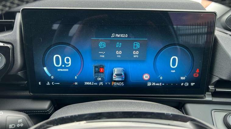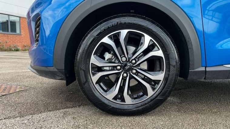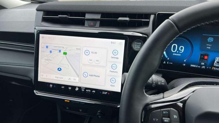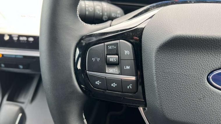 Driver impairment monitor, Emergency call service, Ford easy fuel, Full digital 12.8" instrument cluster, Lane keeping aid with lane departure warning, Power assist steering, Selectable drive modes(Normal, sport, Eco, trail, slippery), Speed sign recognition, Standard suspension, 12" landscape touchscreen display with wireless apple car play and android auto 6 speaker audio system, Ford pass connect and emergency assistance, Ford SYNC4 with connected navigation, Automatic headlights with rain sensing wipers and auto high beam, Front fog lamps, LED daytime running lights, LED rear lamps, LED third brake light, Quickclear heated windscreen, Rear privacy glass, Rear side wing doors, Rear wiper, 3 seat bench in 2nd row, Centre console with armrest and stowage, Electronic automatic temperature control (EATC), Ford megabox extended bootspace, Front and rear head restraints, Front floor mats, Manual 4 way driver seat adjust with lumbar adjustment, Single front passenger seat, Titanium cloth upholstery, 3 rear seatbelts, Child safety lock, Electronic stability control (ESC) and hill start assist, Pre-collision assist with autonomous emergency braking, pedestrian/cyclist detection & post-collision braking, Tyre pressure monitoring system (TPMS), Thatcham alarm, 17" Absolute black machined finish alloy wheel,