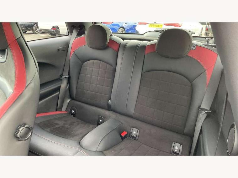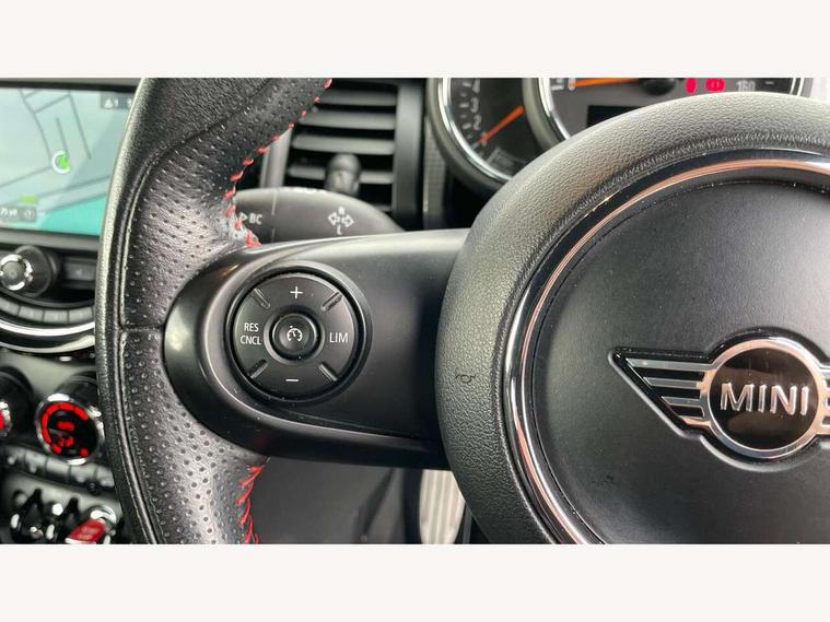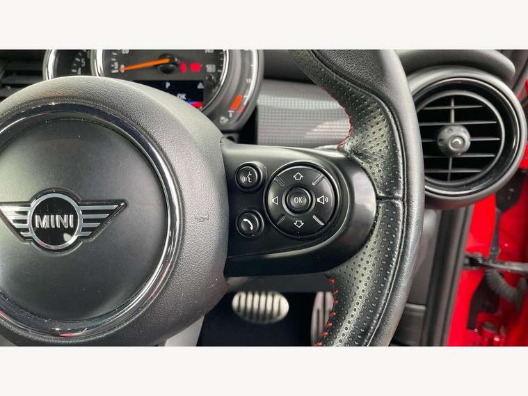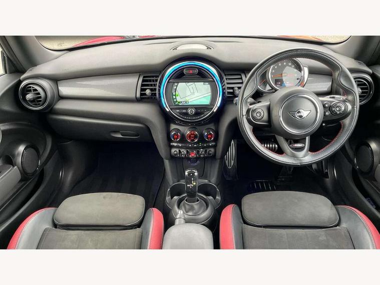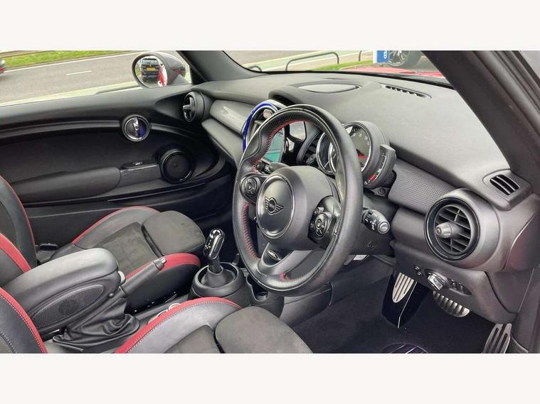 Compatible mobile phone bluetooth with audio streaming, Cruise control with brake assist, Instrument cluster, Mini E-call, MINI TeleServices, On board computer, Service interval indicator, Performance Control, Steptronic transmission with double clutch, 6.5" touchscreen with LED ring, FM tuner and DAB digital radio, Automatic headlight activation switch, Body colour fuel filler cap, Chrome border high gloss black slats radiator grille, Dynamic brake lights, Electric front+rear windows, Heated rear window, Heated windscreen washer jets, John Cooper Works - aerodynamic kit (front and rear apron, spoiler), front and rear sport bumpers and part-painted side sills with door sill finishers, John Cooper Works rear spoiler, LED headlight with closed ring and daytime driving lights, Left exhaust tailpipe with chrome finisher, Metal door sill strips with MINI imprint, Model logo Cooper on right of tailgate, Rain sensor window wipers, Rear fog lights, Rear LED lights with union jack design, Rear window wiper, Side scuttle panel with integrated indicator, Sun/heat protection glass, White indicator lenses, 12V Accessory socket in centre console, 4 lashing eyes in luggage compartment, 60/40 split folding rear seat, Chrome interior highlights, Cupholders, Front and rear isofix with front passenger airbag deactivation, Glove compartment, Height and length steering column adjustment, Interior lighting with 12 basic colours selectable via toggle switch in roof, John Cooper Works leather steering wheel with contrasting stitching in Chilli Red with John Cooper Works logo, John Cooper Works Logo in seat, Leather gearshift lever and handbrake gaiters, LED reading lights, vanity mirror lights, front foot well light and spotlight on front seats, Manual air conditioning, Mechanical seat adjustment, driver seat height adjust, forward/back and front seats backrest, Mini logo projection on floor from drivers exterior mirror, Multifunction steering wheel, Storage compartments in doors, Sunvisors with vanity mirrors, Tool kit, 3 point seatbelts on all four seats, 6 Airbags - front, side, head and seat belt tensioners, Anti-lock braking system (ABS), DSC - Dynamic Stability Control, Front and rear disc brakes, Hill start assist, Single tone fanfare horn, Tyre pressure monitoring system, Alarm system with tilt sensor, monitoring doors, bonnet interior and tailgate, Electronic vehicle immobiliser, Start/stop toggle with keyless go,