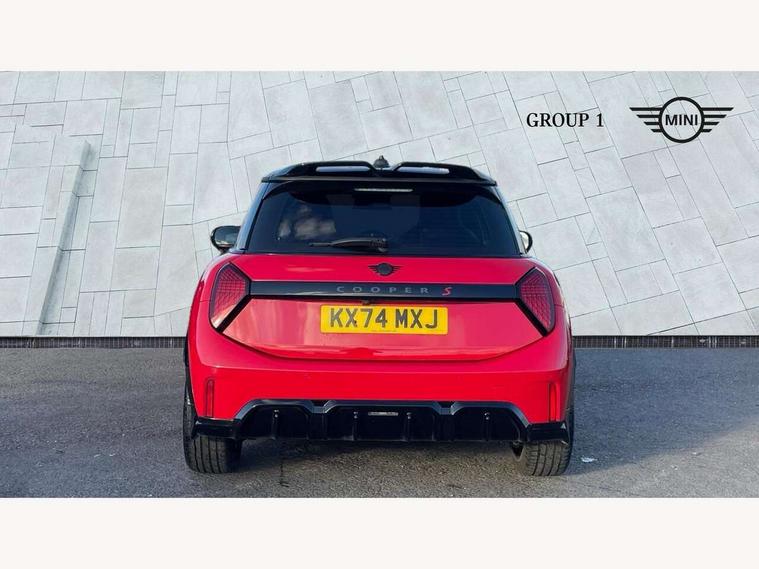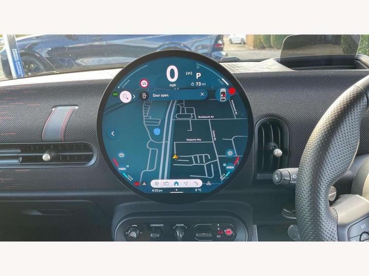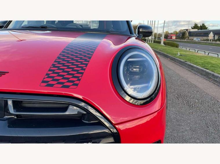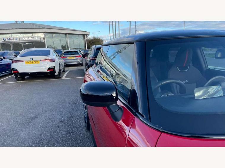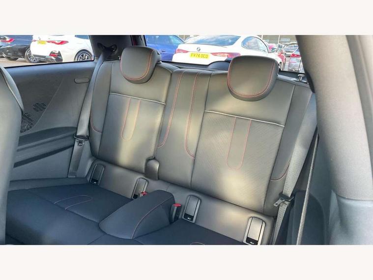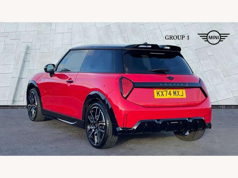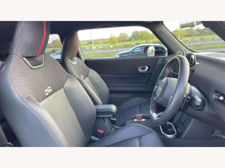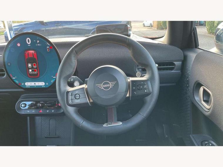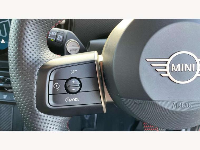 Central toggle bar, Circular OLED Screen, Compatible mobile phone bluetooth with audio streaming, Cruise control, Digital instrument cluster, Electro-mechanical speed dependant steering assistance, Emergency call service, MINI Experience Modes, Mini navigation system, On board computer, Service interval indicator, 7 speed steptronic sport transmission with double clutch, Adaptive suspension, DAB Digital radio, Personal eSim, Auto headlights, Electric adjustable heated door mirrors, Electric front windows, Front and rear apron, Heated rear window, Heated windscreen washer jets, High gloss black wheel arches, High gloss hexagonal patterned grille surround, JCW body kit, LED daytime running lights, LED indicator lights, LED rear lights, Rain sensor window wipers, Rear fog lights, Rear roof spoiler with airblades, Rear window wiper, 2 seat bench in second row, 2 zone automatic air conditioning, 60/40 rear seat bench, Ambient lighting, Cupholders, Dark headliner, Floor mats, Front and rear head restraints, Front compact armrest, Heated steering wheel, Height adjustable passenger seat, Lidded storage box in Black/Red knit, Luggage compartment lighting, Perforated Vescin steering wheel, Single front passenger seat, Steering wheel paddle shift, Sunvisors with vanity mirrors, Vescin/Cord upholstery, Driving assistant pack - Cooper Hatchback, Level 1 pack - Mini Hatchback, Park assistant pack - Cooper Hatchback, 3 point seatbelts on all four seats, 6 Airbags - front, side, head and seat belt tensioners, Acoustic pedestrian protection, Anti-lock braking system (ABS), Brake caliper in Black with JCW badge, DSC - Dynamic Stability Control, Electronic parking brake, Front and rear disc brakes, Front ISOFIX (iSize), Front passenger airbag deactivation, JCW Sport Brakes, Traction control, Tyre pressure monitoring system, Alarm, Immobiliser, Remote central locking, Black/Red decorative dash strap, JCW Black/Red dashboard knit, 18" JCW Lap spoke 2-tone alloy wheels, Tyre repair kit,