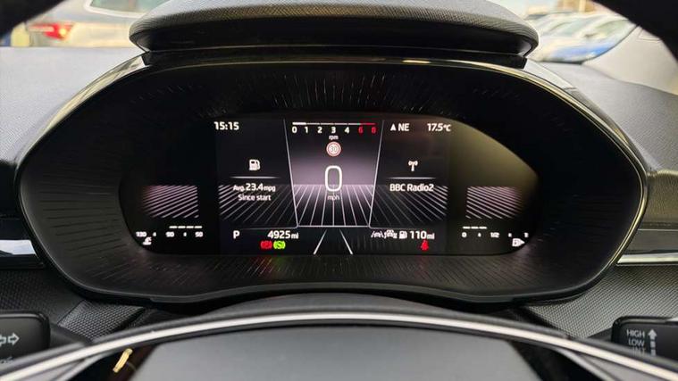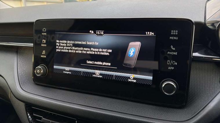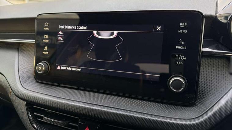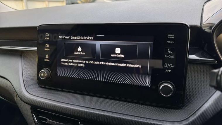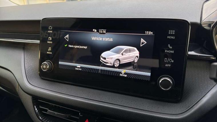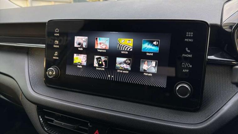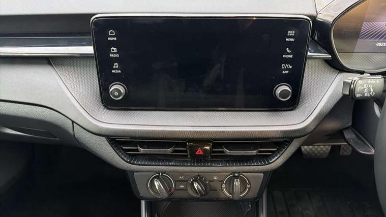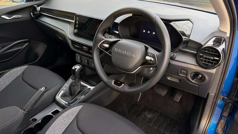 8" Digital instrument display, Advanced driver attention and drowsiness monitor, Bluetooth connection, Electromechanical power steering, Exterior temperature gauge, Rear parking sensors, Service interval indicator, Speed limiter, Traffic sign recognition, Wireless SmartLink for Apple CarPlay and Android Auto, 2x USB-C in the front (for data transmission and charging), 6 Speakers (4 in front and 2 in rear), 8.25" Skoda infotainment touchscreen display, Auxiliary socket for external MP3 player, DAB digital radio reception, Basic rear lights, Body colour door mirrors, Body coloured bumpers, Dimming rear view mirror with black frame, Door mirror integrated indicators, Electrically adjustable front windows with function auto up/down, Front window wiper intermittent control, Headlight range control - Automatic, Ice scraper in fuel cap, LED daytime running lights with coming and leaving home feature, Mechanical adjustable rear windows, Rear LED fog light, Rear side wing doors, Rear window wiper with washing nozzles, Roof mounted spoiler, SKODA tailgate lettering in chrome, Third brake light, 2 reading lights in front and 2 reading lights in rear, 3 rear headrests, Backrest split and folding, Central console with removable cup holder and storage box, Chrome handbrake release button, Fabric upholstery, Front centre armrest, Gearshift knob/handle in leather, Grain satin black interior door handles, Hand brake lever handle in leather, Height adjustable driver seat, Height adjustable front headrests, Height adjustable steering wheel, ISOFIX and TopTether anchorage points to the outer rear seats, ISOFIX and TopTether on the front passenger seat, Luggage compartment lighting, Manual air conditioning, Pollen filter, Rear seat bench unsplit, Single front passenger seat, Storm grey headlining, Sun visors with mirror and airbag label on passenger side, Textile floor mats, Ticket holder, 3-point height adjustable front seats belts with pretensioner and force limiter, Automatic warning lights in case of crash, Driver and passengers airbag with switch off function, e-Call+, ESC including ABS, MSR, ASR, EDS, HBA and XDS, Front and rear seat belt warning, FRONT ASSIST (AEB City and AEB Inter Urban), Front side airbags, Head airbags, Hill hold control, One tone horn, Pedestrian protection, Three rear 3-points safety seat belts with pretensioner and force limiter including stop function for outer rear seat belts, Tyre pressure monitoring system, Anti-theft alarm system including immobiliser, interior monitoring, backup horn, and towing protection, Central locking with radio remote control, interior controls, SAFE function and 2 foldable keys, Black painted air vents, Glossy black decorative trim, Grain satin black central console cover, Grain satin black lower decorative trim, Satin black door and side trim panel in front, Anti-theft wheel bolts protection, Super-low rolling resistance tyres,