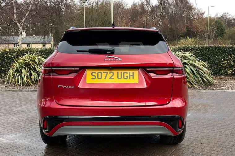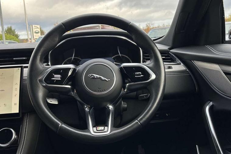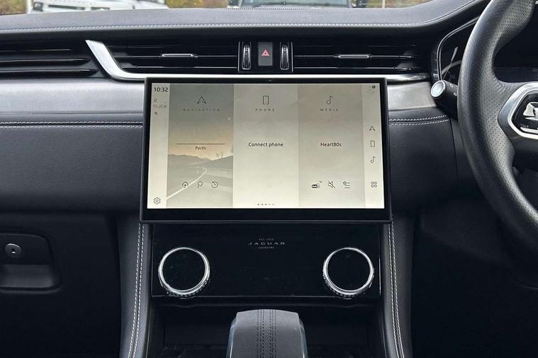 11.4" touchscreen, Android Auto, Apple car play, Bluetooth connectivity, Driver alert system, Driver condition monitor, eCall emergency call system, Eco driving style assistant, Electric power assisted steering, InControl remote, Jaguar Toggle shift selector, Lane departure warning system, Lane keep assist, Outside temperature gauge, Personalisation profile management, Pivi pro connected navigation system with app interface and media storage, Pro services and wifi hotspot, Push button starter, Service interval indicator, Speed proportional steering, Start up sequence with movement in dials and lighting, Traffic sign recognition with adaptive speed limiter, Trip computer, Voice control system, 8 speed automatic transmission, All terrain progress control, All Wheel Drive (AWD), Open differential with torque vectoring by braking, AM/FM radio, Bluetooth streaming, DAB Radio (Digital Audio Broadcasting), Dynamic volume control, InControl apps, InControl protect, iPod integration, 3 flash lane change indicators, Animated directional indicators, Approach Illumination, Auto dimming rear view mirror, Automatic headlights, Electric heated/power fold memory door mirrors with approach lights and auto dimming driver side, Electric windows with one touch open/close and anti trap, F-Pace and R Dynamic badge, Green tinted glass, Heated front windscreen + heated washer jets, Heated rear window with timer, Jaguar script and leaper, LED High level third brake light, LED tail lights, Metal load space scuff plates, Non acoustic front windscreen, R Dynamic badge on side door, Rain sensor windscreen wipers, Rear fog lights, Rear metal tread plates, Rear side wing doors, Rear wiper, Trailer stability assist, Variable front intermittent wipers, 12V power point front, 3 rear headrests, 3 seat bench in 2nd row, Air distribution speed, Centre armrest console, Centre console with side storage, Deletion loadspace storage rails, Door sill tread plates, Fold flat front seats, Front centre armrest with storage compartment, Front door storage space, Glovebox finisher with jaguar script, Heated steering wheel, Hooks in loadspace, Illuminated glovebox, Interior front door handles with separate locking switches, ISOFIX on outer rear seats, Jaguar sense, Luggage tie downs in loadspace, Mist sensing, Multifunction steering wheel, Overhead lighting console, Overhead stowage for sunglasses, Passive front head restraints, Premium carpet mats, R-Dynamic branded leather steering wheel, Rear air vents, Rear armrest with twin cupholders, Rear centre headrest, Rear door storage space, Reversible boot floor, Satin chrome gearshift paddles, Shopping bag hook, Single front passenger seat, Sunvisors with illuminated vanity mirrors, Twin front cupholders with cover, Online Pack with data plan - F-Pace, 355mm front brakes and 325mm rear brakes, 3x3 point rear seatbelts, ABS, All surface progress control (ASPC), Brake pad warning light, DSC - Dynamic Stability Control, Electric parking brake (EPB), Emergency brake assist, Front airbags with passenger seat occupant detector, Front and rear seatbelt reminder, Front side airbags, Full length side window curtain airbag, Hill launch assist, Power operated child locks, Torque vectoring brake, Traction control, Tyre pressure monitoring system, Immobiliser, Keyless Start, Locking wheel nuts, Perimeter alarm, Remote central locking, Valet mode,