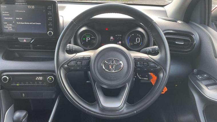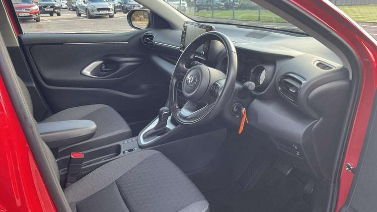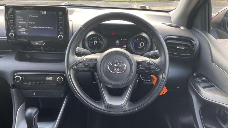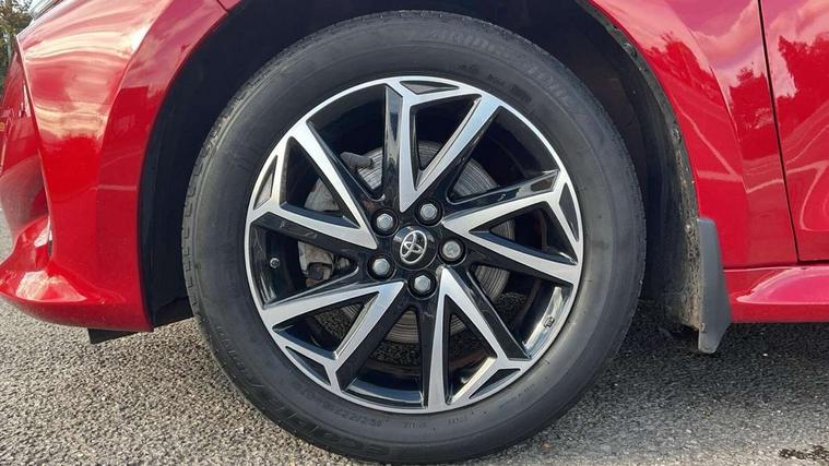 Adaptive cruise control, Adjustable speed limit with speed warning, Bluetooth connectivity, Colour binocular inspired displays with digital speedometer, E-call, Electric power steering, Hybrid energy display, Multi information display switches on steering wheel, Reversing camera, Smartphone integration with Apple CarPlay and Android auto, Tailgate, Voice recognition, Vehicle Stability Control (VSC), 4 speakers, 8" Multimedia display touch screen, USB connection, Acoustic windscreen glass, Auto windscreen wipers, Automatic headlights, Body coloured door mirrors, Electric adjustable heated door mirrors, Follow me home headlights, Front auto power windows with anti jam protection, Full LED rear lights, LED daytime running lights, LED front fog lights, LED front light guide, LED Headlights, LED High mounted stop lamp, LED Indicators, LED rear light guide, Manual headlight levelling, Painted chequered front grille, Rain sensor, Rear auto power windows with anti jam protection, Rear privacy glass, Rear side wing doors, Rear spoiler, Rear wiper, Shark fin antenna, Turning signal integrated indicators in door mirrors, Variable front intermittent wipers, 3 adjustable rear headrests, 3 spoke leather steering wheel, 60/40 split folding rear seat, Active headrests, Adjustable boot height, Auto air conditioning, Coat hooks in rear grab handles, Cup holders (2 front & door), Data Communication Module (DCM) connected services, Fabric upholstery, Front armrest, Glovebox, Grey roof lining, Height adjustable driver's seat, Isofix seat fixing, Leather gearshift, Pollen filter, Shopping bag hooks, Single front passenger seat, Tilt/telescopic steering column, 3 point seatbelts on all rear seats, ABS+EBD+Brake assist, Electronic parking brake, Emergency brake light system (EBS), Front passenger airbag on/off switch, Front seatbelt reminder, Hill start assist control (HAC), Rear child proof door locks, Rear seat belt reminder, Supplemental Restraint System (SRS) 8 airbags: Driver & passenger's airbags, dual side curtain airbags, side impact airbags, front centre airbag, Toyota Safety Sense 2, Precollison + Night time Pedestrian & Cyclist Detection, Lane Trace Assist, Auto High Beam, Intelligent ACC & Road Sign Assist, Tyre pressure warning system, 2x Master key, Alarm/immobiliser, Remote powered central double locking doors, Soft touch instrument panel, Space saver spare wheel,
