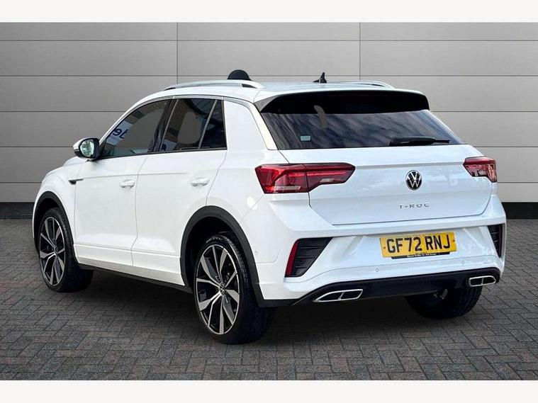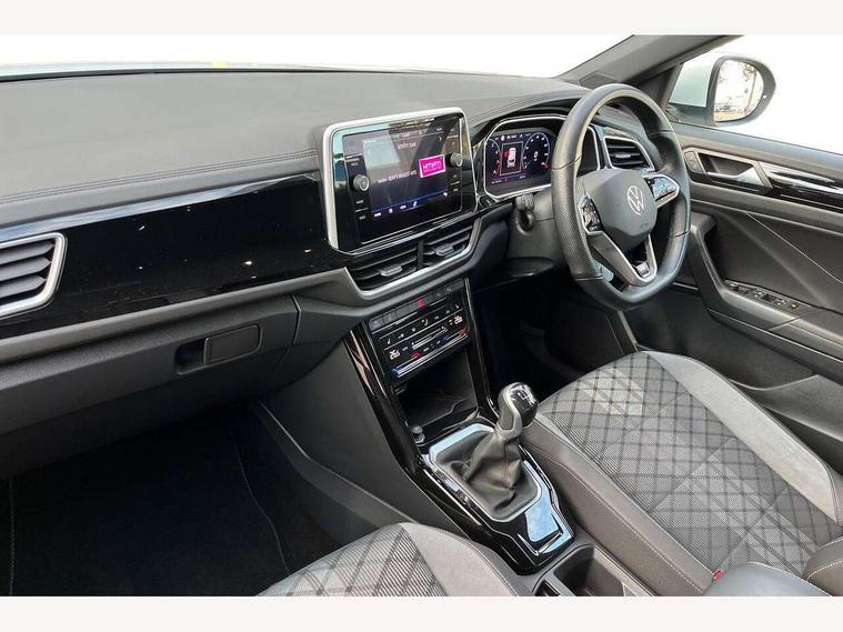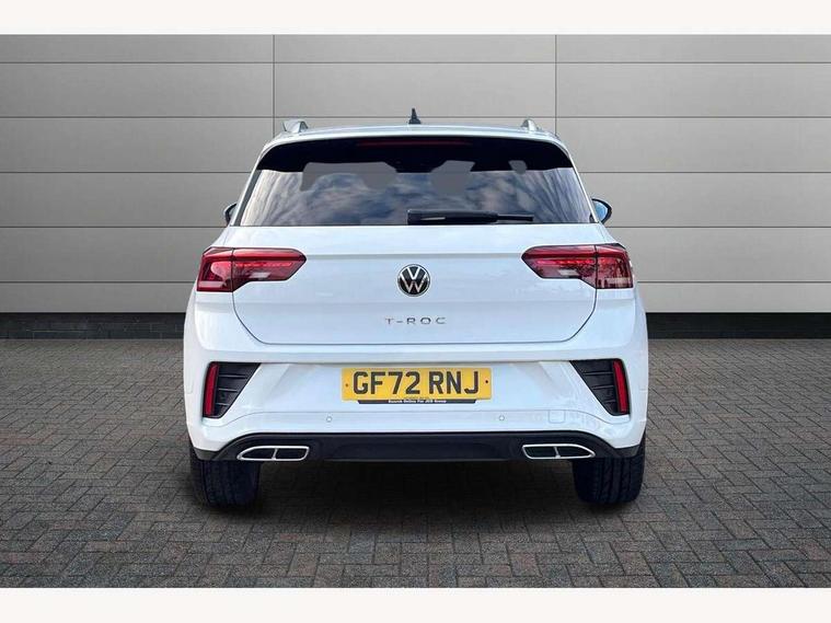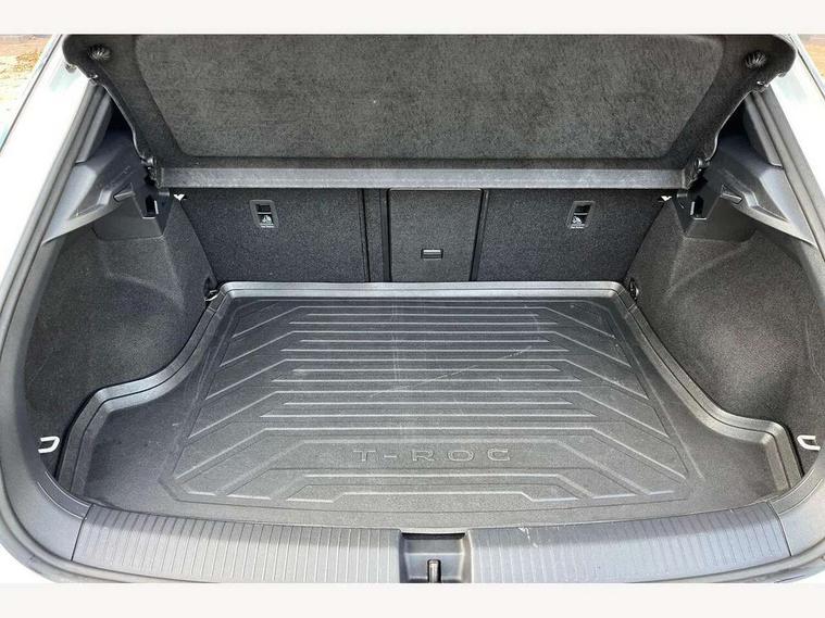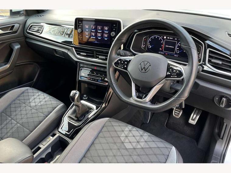 10.25" Digital cockpit pro, Bluetooth mobile phone interface, Driver alert system with fatigue detection, Driver tips and journey analysis, Emergency call service, Lane keeping system Lane Assist, Modified key software - reduce switch off time for key status change to Long no motion, Online services, Park assist including front and rear parking sensors, Service interval indicator, Tailgate/trunk lid release from outside, Think blue trainer driver tips and journey analysis, Warning sound and light for front seatbelts unfastened, Wireless app connect, Battery regeneration during braking, Start/stop function with battery regeneration, Diversity antenna for FM reception, Front and rear 6 speakers, Music playback - MP3, WMA and AAC files, Premium USB cable in choice of either Apple or Android smartphone compatibility, SD card slot, Simultaneous pairing of 2 compatible mobile devices, Title and cover art display, We Connect and We Connect Plus functionality, 3rd brake light, Auto dimming interior rear view mirror, Automatic hazard lights activation under emergency braking, Automatic headlight control with LED separate daytime running lights with coming/leaving home function, Extended roof spoiler, Exterior mirrors aspherical on driver side, convex on front passenger side, External USB type C socket and charging sockets, Front windscreen wiper with intermittent wipe and 4 position delay, Heated rear window, LED Plus headlamps, LED rear combination lamps, LED rear number plate lights, LED tail lamp rear comination lamps, Power windows with comfort operation and circuit breaker, R-Line design body coloured bumpers, Rain sensor, Rear exhaust tailpipe, Rear fog light on one side and reversing lights on both sides, Rear side wing doors, Rear wash/wipe with intermittent wipe setting, Remote electrically foldable door mirrors, puddle lights and reverse activated passenger's door mirror, 12V power socket in centre console, 3 rear head restraints, 3 seat bench in 2nd row, 4 load lashing points in luggage compartment, Air care climatronic air conditoning system with active combination filter and 2-zone temperature control, Black roof lining, Chrome plated radiator grille inserts, air vent surrounds and light switch surrounds, Door and side trim panel with leatherette insert, Drawer under drivers seat, Front + rear carpet mats, Front centre armrest, Front cupholders x 2, Front footwell illumination, Front reading light, Front scuff plates with R logo, Instrument lighting, white adjustable panel illumination, Interior ambient lighting and surround lighting, Interior light delay, Isofix child seat preparation, Leather gearshift handle, Load-through provision with cup holder when folded down ('Unsplit rear seat bench, split folding backrest, with centre armrest), Luggage compartment lighting, Single front passenger seat, Stainless steel pedals, Storage compartment in left and right luggage area, Storage compartment in rear doors, Storage compartments in driver and front passenger doors, Sunvisors with illuminated vanity mirrors, Variable boot floor, height adjustable and removable, Driver assistance pack without proactive passenger protection - T-Roc, 3 point height adj front seatbelts + pretensioners, 3 point seatbelts in outer rear with ECE label, ABS, Child locks on rear doors, Driver and front passenger airbag with front passenger airbag deactivation, Driver and front passenger safety-optimised head restraints, Drivers seatbelt reminder, Electronic parking brake, Electronic Stability Control (ESC) inc EDL (Electronic Differential Lock) and ASR (Traction Control), Front and rear passengers curtain airbag system including front side airbags, Front assist with city emergency braking and pedestrian monitoring, Front seat side impact airbags, Hill start assist, Predictive pedestrian protection, Rear disc brakes, Single tone horn, Tyre pressure loss indicator, Volkswagen roadside assistance, Alarm with interior protection, Anti-theft alarm system with interior monitoring, backup horn, and towing protection, Remote central locking with SAFELOCK, radio remote control with 2 remote control folding keys, Trims for alloy wheels,