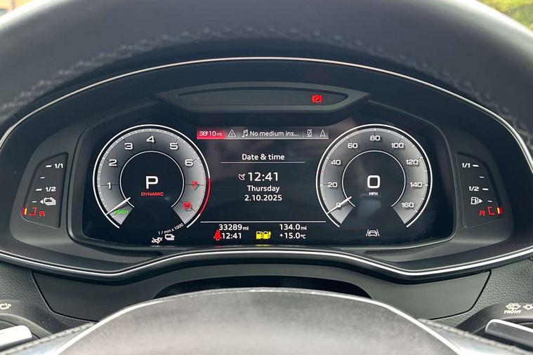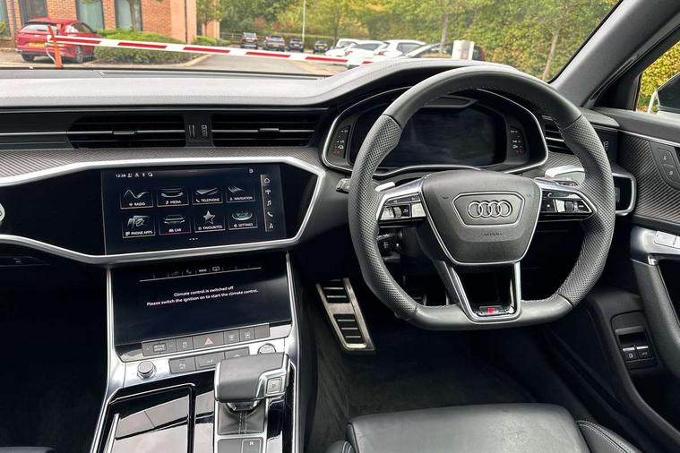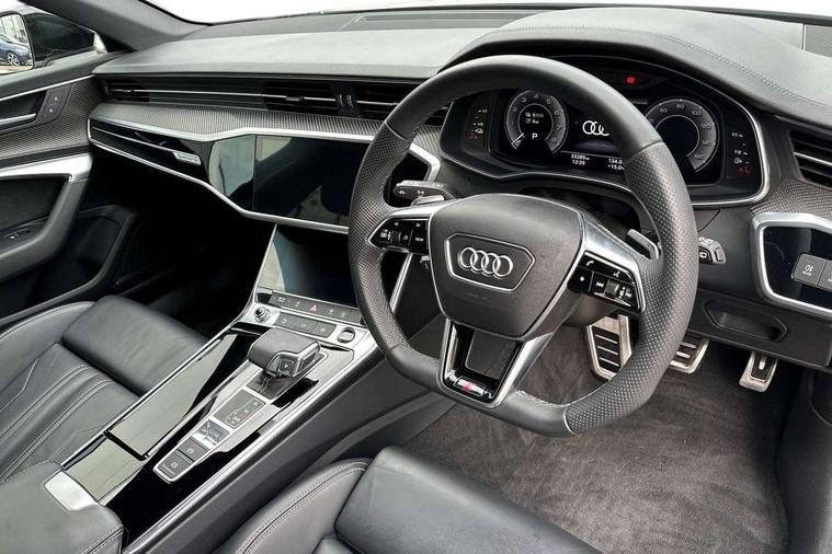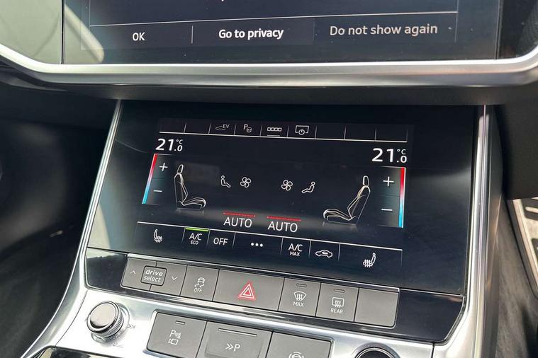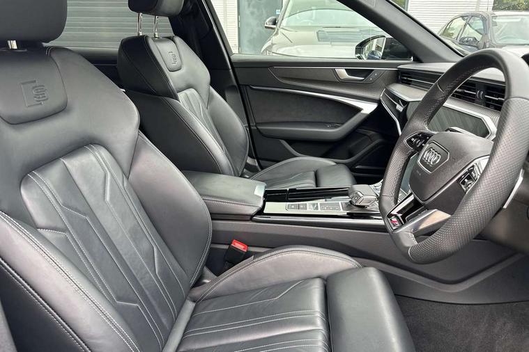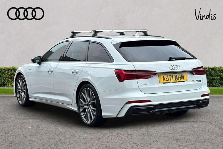 7" high resolution colour driver information display system, Audi connect safety and service (e-call), Audi connect with Amazon Alexa Integration, Audi drive select, Automatic start/stop system with coasting functionality, Bluetooth interface, Electric boot lid release, Lane departure warning system, Progressive steering, Service interval indicator, Smartphone interface includes wireless Apple carplay/Android Auto, Voice control system, 3 pin 10 amp domestic charging cable, 52 litre fuel tank, Hybrid propulsion system, Quattro on demand, Sports suspension, Type 2 mode 3 32 amp charging cable, Type 2 socket for AC charging, Audi front music interface, Auxiliary input socket, DAB Digital radio, USB connection, Black roof rails, Electric front/rear windows, Frameless auto dimming interior rear view mirror, Front intermittent wipers, Gloss black highlights on the exterior area of the Audi Single frame, Gloss black highlights on the front and rear bumpers, Gloss black highlights on the radiator grille, Gloss black highlights on the side windows trim strips, Headlight washers, Heat insulating darkened glass in side and rear windows, Heat insulating glass in windshield, LED rear lights, LED signature front daytime running light, LED third brake light, Matrix LED headlights, Matt black rear diffuser with diffuser strip and tailpipes in chrome, Matt black side air intake grille with inlay in matt aluminium, Privacy glass, Rain and light sensors, Rear side wing doors, Rear wiper, Signature rear LED light design, 4 way electric lumbar support for driver and front passenger, 4 zone deluxe automatic climate control, 40/20/40 split folding 3 rear seat bench in 3 parts with rear centre armrest, Black cloth headlining, Black front and rear carpet floor mat, Black steering wheel insert, Electrically adjustable front seats with driver memory, Front centre armrest, Front head restraints, Heated front seats, Height/reach adjust steering wheel, Illuminated door sill trims with S logo, Illuminated sun visors with vanity mirrors, ISOFIX child seat mounting and Top Tether with front passenger airbag deactivation, Leather gear knob, Rear headrests, Single front passenger seat, Stainless steel pedals and foot rest, Comfort and sound pack - A6, Non smoking pack - A6, Technology pack - A6, 3 point seatbelts on all seats, Airbags - Front side, front and rear including head, Audi pre-sense front, Black seatbelts, EBD - Electronic brakeforce distribution, Electromechanical parking brake, Electronic Stability Control (ESC) including ABS, ASR and EDL, Extended pedestrian protection measures, Manual child proof rear door locks, Seatbelt monitoring, Tyre pressure warning light, Warning triangle and first aid kit, Anti theft alarm with tow away protection, Anti-theft wheel bolts and wheel loosening detection, Immobiliser, Remote central locking, Carbon twill inlays, Tool kit, Tyre repair kit,