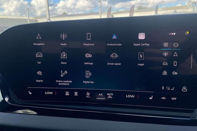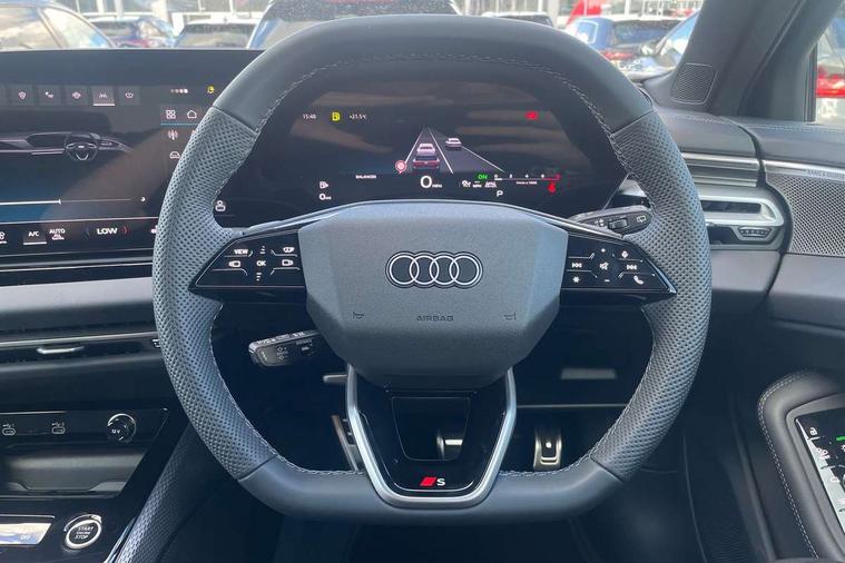 Audi application store, Audi assistant, Audi connect emergency call and service, Audi connect with Amazon Alexa Integration, Audi digital key, Audi drive select, Audi phone box with wireless charging, Audi virtual cockpit, Automatic start/stop system with coasting functionality, Bluetooth interface, Luggage compartment lid with Electric opening / closing, MMI navigation plus with high resolution 14.5" OLED touchscreen colour display, Power assisted steering, Service interval indicator, Smartphone interface includes wireless Apple carplay/Android Auto, Voice control system, Sports suspension, Audi sound system impressive sound with 10 loudspeakers including centre speaker and subwoofer, 6-channel amplifier with a total output of 180 watts, DAB Digital radio, USB ports with charging function, Aluminium roof rails, Audi Matrix LED technology, Auto dimming rear view mirror, Automatic-dynamic headlight range control, Body colour door mirrors, Body coloured door handles, Dipped beam, main beam, position light, dynamic indicator and cornering light, Door mirrors - electrically adjustable, heated, folding and auto dimming on both sides, Dynamic light scenarios of the coming home/leaving home function when stationary, Electric front/rear windows, Frameless auto dimming interior rear view mirror, Front illuminated door sill trims with aluminium inlay, Headlight cleaning system, LED headlights Plus incl. digital daytime running lights, turning light, all-weather light, motorway light, manouevring light and intersection light, LED rear lights pro incl. brake lights, tail lights, rear number plate lights, reversing lights, continuous light strip, LED third brake light, Privacy glass, Rain and light sensors, Rear and side windows with heat insulating glass, Rear side wing doors, Rear wiper, Roof spoiler, S line exterior styling, Sport exterior inc Radiator grille, air inlets and diffuser in scandium grey as well as inlay in diffuser in selenite silver, Towbar preparation, White rhombus logo projection light in exterior mirrors, Window trim strips in aluminium look, Windscreen with heat insulating and acoustic glazing, 3 seat bench in 2nd row, 3-spoke Sport leather steering wheel flat top and bottom with multifunction and shift paddles, 4 way electric lumbar support for driver and front passenger, 4 zone deluxe automatic climate control, 40:20:40 split folding rear seat bench with centre armrest and cup holders, Black front and rear floor mats, Centre armrest, front- adjustable angle with four settings, Electrically adjustable front seats, Front head restraints, Heated front seats, i-Size child seat mounting on the front passenger side and outer rear seats, i-Size and top tether on the outer rear seats, Manual steering wheel adjustment, Net partition, Rear headrests, Single front passenger seat, Sport front seats, Stainless steel pedals and footrest, Steering wheel trim in chrome look, S emblem, steering wheel grips in perforated leather and contrasting stitching, Twin leather/artificial leather upholstery, Ambient lighting package plus - A6, Drive and Park assistance package - A6, Protective warning assistance package - A6, 3x3 point rear seat belts, Black seat belts, Convenience key with safelock, Driver and front passenger airbags, EBD - Electronic brakeforce distribution, Electric rear child safety lock, Electromechanical parking brake, Electronic Stability Control (ESC) including ABS, ASR and EDL, First aid kit with warning triangle and vests, Front passenger airbag deactivation, Seatbelt monitoring, Side airbags front with head airbag system and interaction airbag, Standard 18"steel disc brakes front and rear, Tyre pressure monitoring system, Anti theft alarm, Anti-theft wheel bolts, Immobiliser, Keyless Go, Remote central locking, Inlays in matt brushed aluminium with linear embossing, anthracite, Upper and lower interior elements in leatherette with contrasting stiching, Wraparound interior elements in artificial leather, Tyre repair kit,