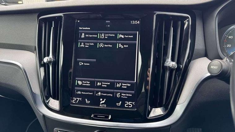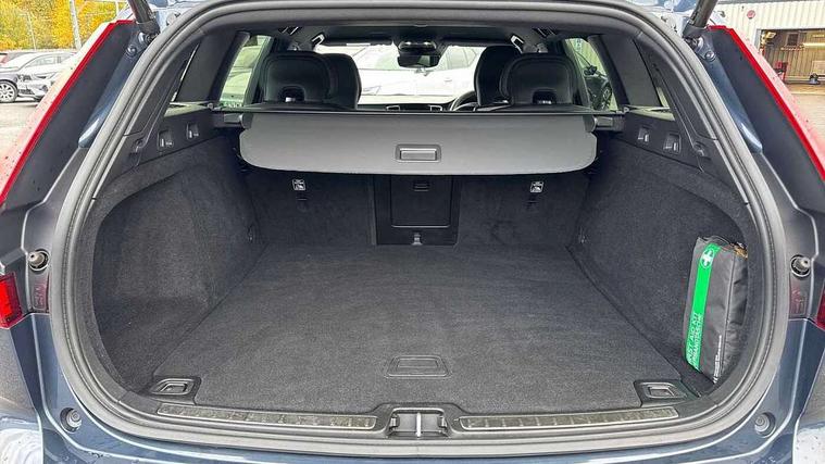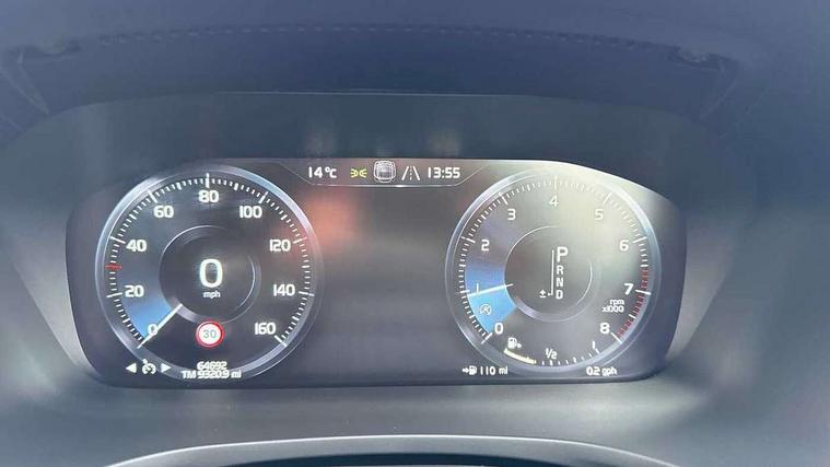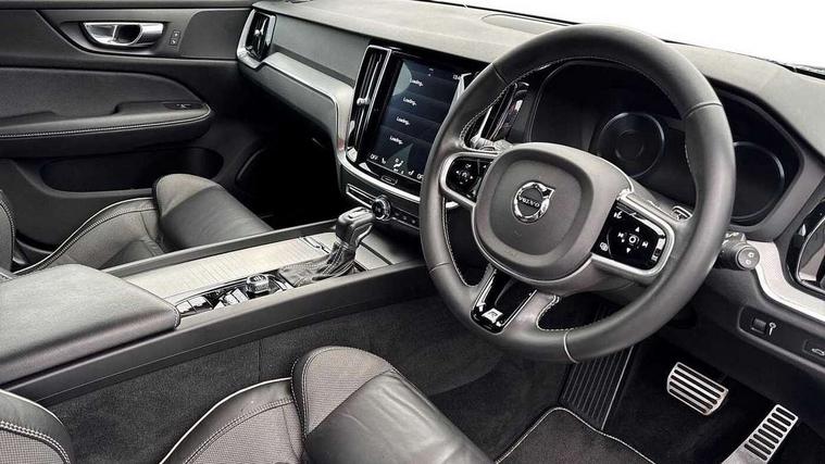 12.3" Active TFT crystal driver's instrument display, 9" centre console touch screen, Adjustable steering wheel force, Bluetooth hands free telephone kit, Drive mode settings, Driver alert control with lane keeping aid, E-call, Information centre, Oncoming Lane Mitigation, Sensus navigation with European mapping and traffic information, Service interval indicator, Speed limiter, Speed sensitive steering, Trip computer, Voice activated control for key functions, Volvo on call, 8 speed automatic transmission with start/stop + manual change functions, DAB Digital radio, Adaptive brake lights with high level LED brake lights, Automatic headlight levelling system, Automatic LED Headlights + Active high beam incorporating daytime running lights, Body colour bumpers, Colour coordinated auto folding and heated power door mirrors, Dual integrated exhaust pipes with high gloss black surround, High gloss black door mirrors and window surround, High gloss black mesh front grille with silk metal surround, Home safe and approach lighting, Integrated roof rails in high gloss black, LED front fog lights, Power front and rear windows, R Design tread plates, Rain sensor with automatic windscreen wiper activation, Rear side wing doors, Rear wiper, Roof antenna, Roof spoiler, Visible VIN plate, 12V socket in front + rear tunnel console, 3 seat bench in 2nd row, A-pillar parking ticket holder, B Pillar ventilation, Black headlining, Bright metal luggage compartment threshold, Cargo load hooks, Centre console cupholders and storage, Contour sports seats with nappa leather/textile upholstery, Extended front seat cushions, Front footwell illumination, Front head restraints, Front reading lights + Theatre lighting and centre armrest storage illumination, Glovebox compartment with illumination, Heated steering wheel, Height/reach adjustable steering column, High gloss black steering wheel remote infotainment controls, Illuminated vanity mirrors + ticket holder, Isofix attachments on outer rear seats, Leather sports steering wheel with gearshift paddles, Load cover, Lockable load floor, Luggage compartment illumination, Multi directional lumbar support, Nappa Leather Key Integrated Remote, Rear armrest with storage + cupholders, Single front passenger seat, Sport leather gear knob, Sports floor mats, Sports pedals, Underfloor cargo storage, WHIPS - Whiplash Protection System, 5 x 3 point seatbelts, City safety with steering support with Pedestrian + cyclist + large animal detection + front collision warning with full auto brake, Dual stage driver/passenger airbags, First aid kit, Hill start assist, IC (Inflatable Curtains) - Full Length, Passenger airbag cut-off switch, Power parking brake with auto hold function, Road sign information display, Run off Road Mitigation, Run off Road Protection, Seatbelt reminder and pretensioners for all seats, SIPS (Side Impact Protection System), SIPS airbags, Stability and Traction Control with Spin control, Engine Drag Control and Corner Traction Control, Tyre pressure monitoring system, Vehicle deceleration control with Anti-lock Brake System, Electronic Brake Distribution and Emergency Brake Assist, Warning triangle, Anti-theft alarm including immobiliser/volume sensor + level sensor, Key integrated remote control central locking + fuel flap with deadlocking system and auto open/close power windows, Locking wheel nuts, Private locking for tailgate, Metal mesh inlays,