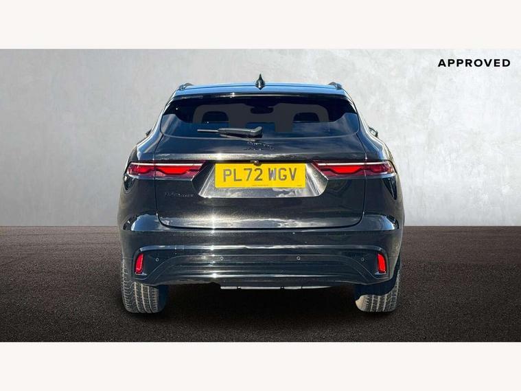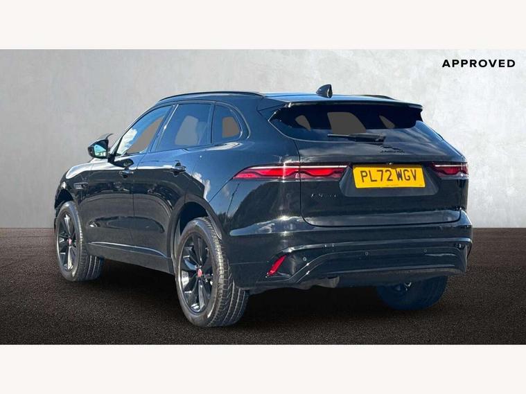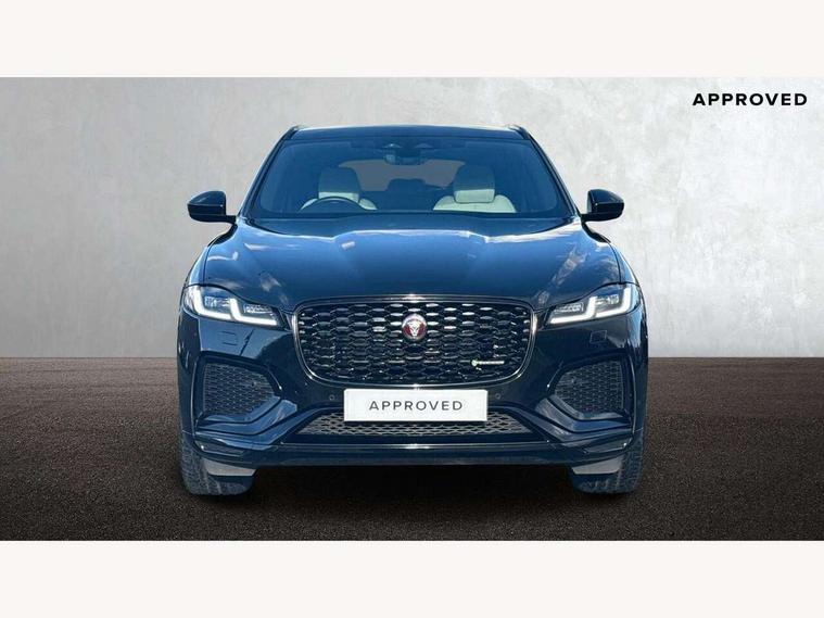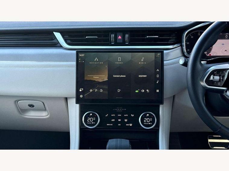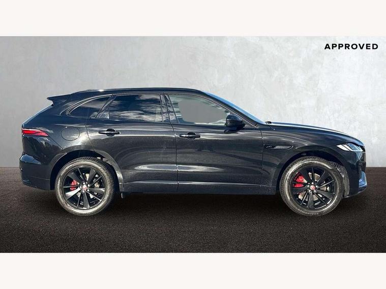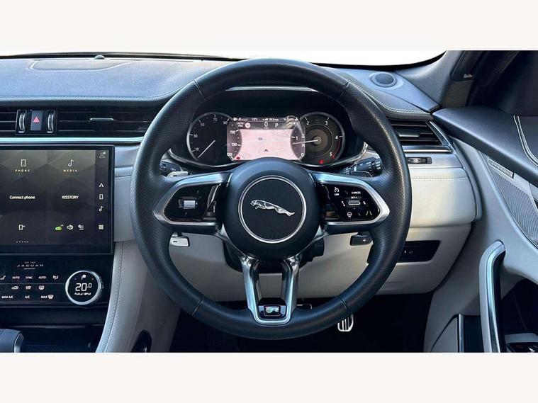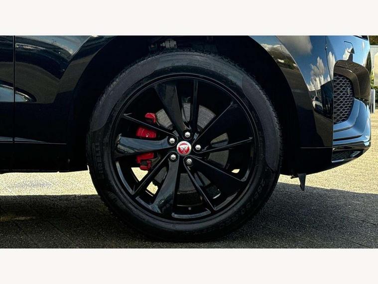 11.4" touchscreen, Android Auto, Apple car play, Blind spot assist, Bluetooth connectivity, Clear exit monitor, Driver alert system, Driver condition monitor, eCall emergency call system, Eco driving style assistant, Electric power assisted steering, InControl remote, Jaguar Toggle shift selector, Lane departure warning system, Lane keep assist, Outside temperature gauge, Personalisation profile management, Pivi pro connected navigation system with app interface and media storage, Pro services and wifi hotspot, Push button starter, Rear traffic monitor, Service interval indicator, Speed proportional steering, Start up sequence with movement in dials and lighting, Traffic sign recognition with adaptive speed limiter, Trip computer, Voice control system, 8 speed automatic transmission, All terrain progress control, All Wheel Drive (AWD), Open differential with torque vectoring by braking, AM/FM radio, Bluetooth streaming, DAB Radio (Digital Audio Broadcasting), Dynamic volume control, InControl apps, InControl protect, iPod integration, 3 flash lane change indicators, Animated directional indicators, Approach Illumination, Auto dimming rear view mirror, Automatic headlights, Body colour door mirrors, Electric heated/power fold memory door mirrors with approach lights and auto dimming driver side, Electric windows with one touch open/close and anti trap, F-Pace and R Dynamic badge, Green tinted glass, Heated front windscreen + heated washer jets, Heated rear window with timer, Jaguar script and leaper, LED High level third brake light, LED tail lights, Non acoustic front windscreen, R Dynamic badge on side door, Rain sensor windscreen wipers, Rear fog lights, Rear metal tread plates, Rear side wing doors, Rear wiper, Trailer stability assist, Variable front intermittent wipers, 12V power point front, 3 rear headrests, 3 seat bench in 2nd row, Air distribution speed, Bright metal foot pedals, Centre armrest console, Centre console with side storage, Deletion loadspace storage rails, Door sill tread plates, Fold flat front seats, Front centre armrest with storage compartment, Front door storage space, Glovebox finisher with jaguar script, Heated steering wheel, Hooks in loadspace, Illuminated glovebox, Interior front door handles with separate locking switches, ISOFIX on outer rear seats, Jaguar sense, Luggage tie downs in loadspace, Mist sensing, Multifunction steering wheel, Overhead lighting console, Overhead stowage for sunglasses, Passive front head restraints, Premium cabin lighting, Premium carpet mats, R-Dynamic branded leather steering wheel, Rear air vents, Rear armrest with twin cupholders, Rear centre headrest, Rear door storage space, Reversible boot floor, Satin chrome gearshift paddles, Shopping bag hook, Single front passenger seat, Sunvisors with illuminated vanity mirrors, Twin front cupholders with cover, Online Pack with data plan - F-Pace, 355mm front brakes and 325mm rear brakes, 3x3 point rear seatbelts, ABS, All surface progress control (ASPC), Brake pad warning light, DSC - Dynamic Stability Control, Electric parking brake (EPB), Emergency brake assist, Front airbags with passenger seat occupant detector, Front and rear seatbelt reminder, Front side airbags, Full length side window curtain airbag, Hill launch assist, Power operated child locks, Torque vectoring brake, Traction control, Tyre pressure monitoring system, Immobiliser, Keyless entry, Keyless Start, Locking wheel nuts, Perimeter alarm, Remote central locking, Valet mode,