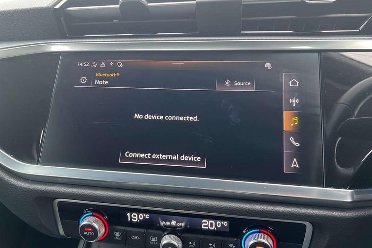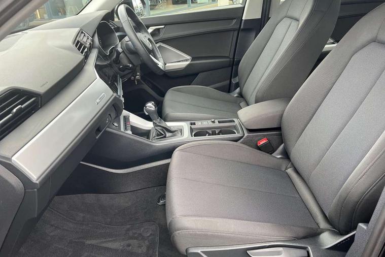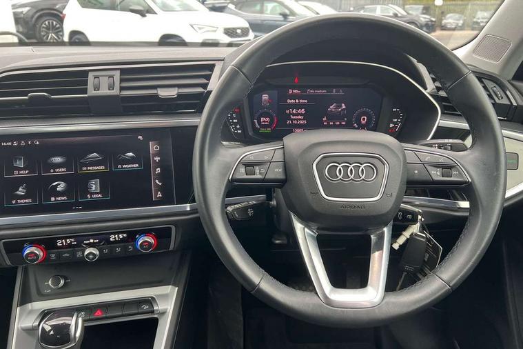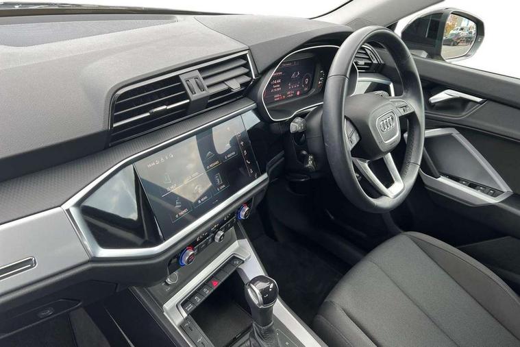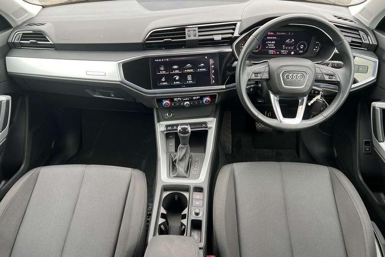 Amazon alexa Integration, Audi drive select, Audi lane departure warning, Audi smartphone interface includes wireless Apple carplay/Android Auto, Audi Virtual Cockpit - 10.25" display, Bluetooth interface, Camera based traffic sign recognition, Legal emergency call, MMI Navigation Plus with high resolution 10.1 inch touchscreen colour display, Power operated tailgate, Progressive steering, Service interval indicator, Start stop system with recuperation, Voice control system with natural language interaction, Standard suspension, 2 USB-C ports with charge and data functions, 6 passive loudspeakers, DAB digital radio module, Acoustic windscreen, Auto dimming frameless rear view mirror, Black roof rails, Body colour door mirrors, Diffuser in grained anthracite, Electrically folding, adjustable and heated door mirrors with integrated LED side indicators and kerb view function for passenger side, Exterior bumper with wheel arch trims and side sill trims in grained black matt, Front and rear electric windows, Grained radiator protective grille, Halogen rear lights, LED headlights with LED daytime running lights, Rain and light sensors, Rear side wing doors, Rear wiper, Third brake light, Variable front intermittent wipers, 12V socket in rear centre console, 3 seat bench in 2nd row, 3 spoke multi-function leather steering wheel, 40:20:40 folding with manual adjustment for 60:40 forwards/backwards position and backrest angle, Dual zone electronic climate control, Front and rear floor mats, Front and rear headrests, Front and rear roof module including reading lights, Front centre armrest, Glove compartment lighting, Height and reach adjustable steering wheel, ISOFIX child seat mounting for front passenger with airbag deactivation and outer rear seat including top tether attachment point for outer rear seats, Luggage compartment light, Lunar silver cloth headlining, Manual front seats with height adjustment, Single front passenger seat, Stainless steel luggage compartment sill finisher, Non smoking pack - Q3, 3x3 point rear seatbelts, 6 airbags - Driver, front passenger, curtain and side windows, Audi pre-sense front with pedestrain and cyclist recognition, Electrically operated child locks on rear doors, Electromechanical parking brake, Electronic stabilisation control including ABS, ASR and EDL, Front seatbelt reminder, Hill descent control, Hill hold assist, Pre sense basic, Seatbelt monitoring, Tyre pressure warning, Warning triangle and first aid kit, Anti theft alarm, Anti theft wheel bolts, Immobiliser, Remote central locking, Detail dashboard around MMI touch colour display in glass look, black with surround in aluminium look, Micrometallic silver inlay, 17" 5 twin spoke design alloy wheels,