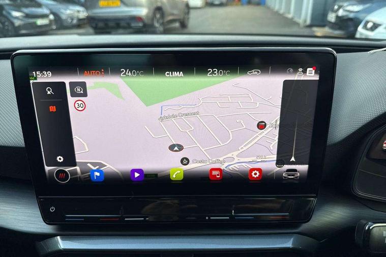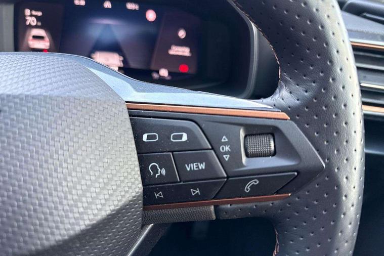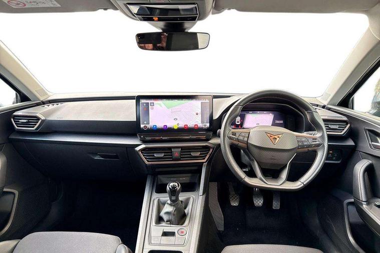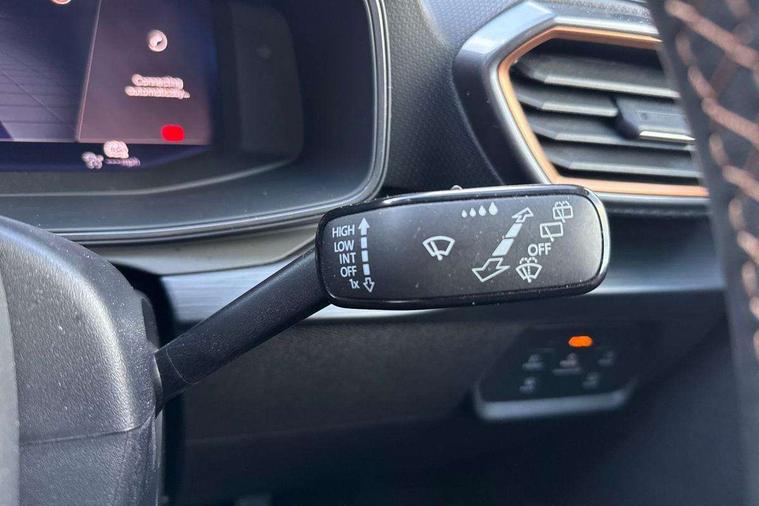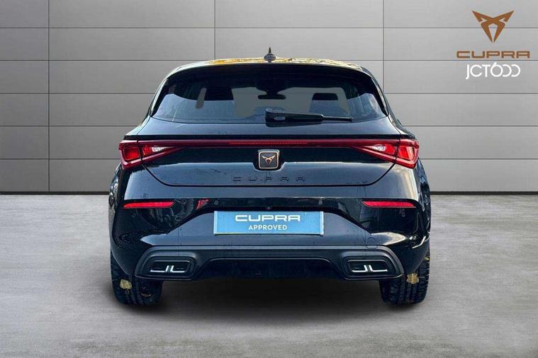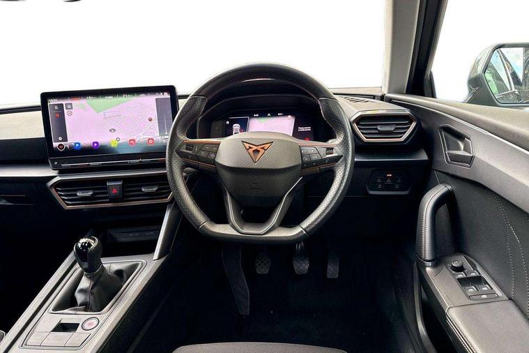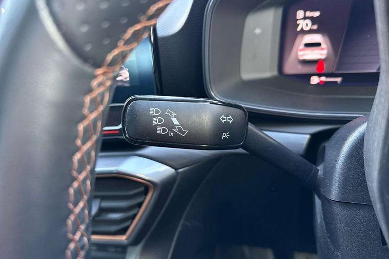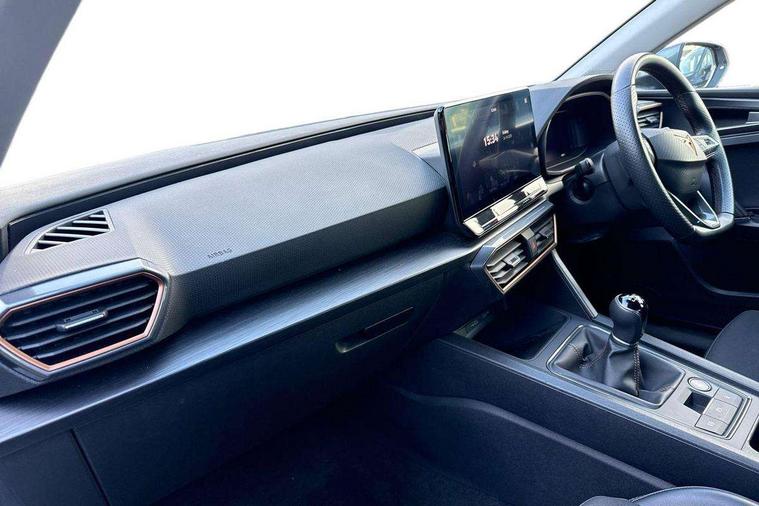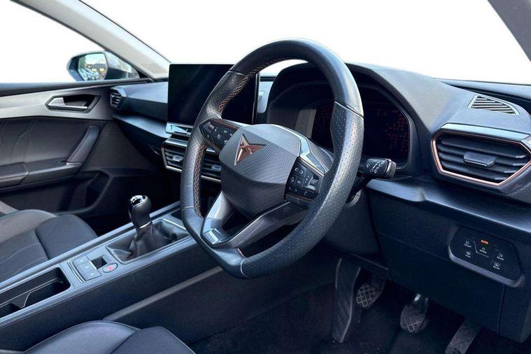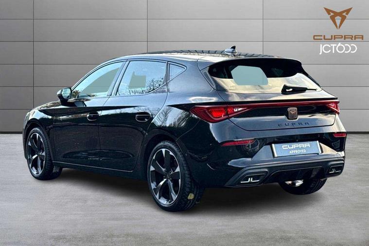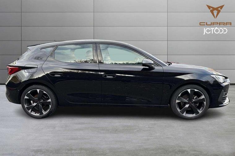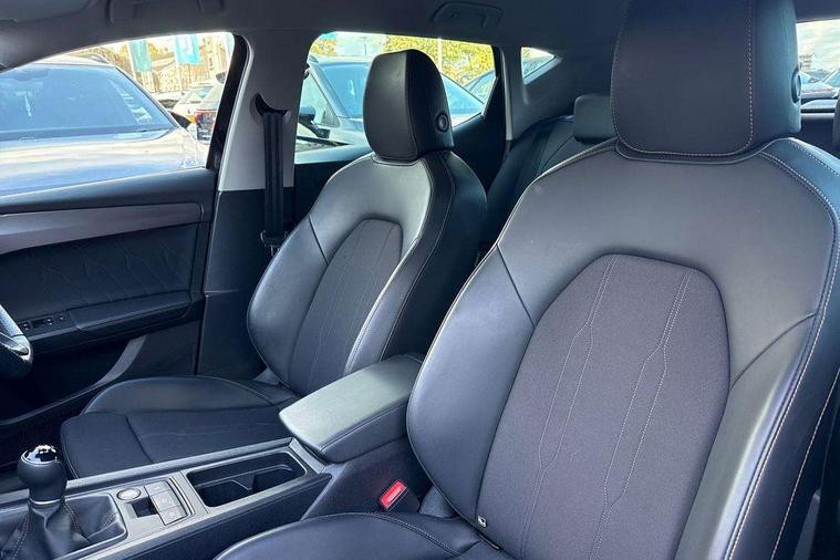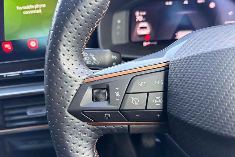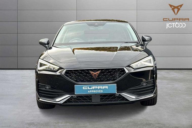 CUPRA drive profile selection with (Comfort/Sport/Individual), throttle response and gearshift mode, Digital cockpit, E-call, Electro mechanical speed sensitive power steering, Four x USB Type C ports (2 in front and 2 in rear), Front assist with forward collision warning braking reaction to vehicles, pedestrians and cyclists, Full link smartphone integration with Mirror Link, wireless Apple CarPlay and wired Google Android Auto, Lane assist, Lockable tailgate, Park assist (inc front/rear parking sensors), Rear view camera, RPM, trip computer, outside temp gauge, instrument light brightness, low fuel warning light, lights on reminder, gearshift indicator, Service interval indicator, Start/stop system with regenerative braking, Wireless phone charger, Sports suspension, Auxiliary input socket, Auto dimming rear view mirror, Body colour door handles, Body coloured bumpers, Cupra sports bumpers, Dark tinted rear windows, Electric front/rear windows, Electrically adjustable, heated and folding door mirrors, LED front fog lamps with cornering function, LED headlights with dynamic turn signals, tail lights, rear fog lights with rear coast to coast lighting, Rain sensing wipers, Rear diffuser with twin exhaust pipe on each side, Rear side wing doors, Rear wash/wipe, Separate daytime running light with automatic headlight control and coming home feature, Third brake light, 12v power supply in centre console, 3 seat bench in 2nd row, 5 headrests, 60/40 split rear bench seat with armrest, Ambient lighting with glovebox, footwell and single monocolour, Cupra Leather flat bottomed, perforated steering wheel, Driver/passenger manual seat height adjustment, Folding boot cover, Front and rear reading lights X 4, Front centre armrest, Front seats manual lumbar adjustment, Grey headlining, Height/reach adjust steering wheel, Illuminated interior front door sills, ISOFIX points in outer rear seats with top tether anchorage points, Jack and tool kit, PVC/Cloth upholstery with copper stitching, Single front passenger seat, Sports seats, Sunvisors with illuminated mirror, Three zone climate control, Media system plus with navigation pack - Leon Cupra, Safety and driving pack (M) - Cupra leon, 3 point seatbelts on all rear seats, ABS, Brake control system - ESC and brake booster, Child proof door locks, Cupra black brake calipers, Driver and front passenger airbags with front passenger airbag de-activation, front side and curtain airbags, Electronic parking brake, Extended safety system - seat belt tensioner, window closure and hazard lights, Hill hold control, Rear disc brakes, Seat belt reminder for front and rear seats, Tiredness recognition system, Tyre pressure monitoring system, Anti theft alarm system with interior monitoring in cab, backup horn and towing protection, KESSY Advanced - Keyless start, keyless entry, Locking wheel bolts, Chrome and copper interior detailing, 18" Machined sport black and silver alloy wheels with 92Y tyres,