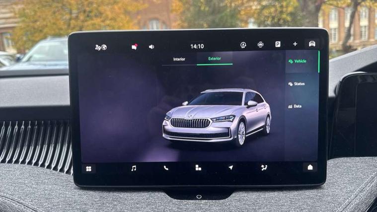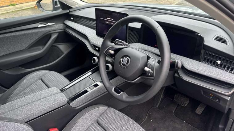 13" touchscreen display with satellite navigation, 4x USB-C ports (2x in front centre console and 2x in rear) (45W), Adaptive cruise control with speed assist, lane assist plus and traffic tram assist, Blind spot detection with door exit warning, Bluetooth system, CareConnect and Emergency Call, ChatGPT functionality, Driver fatigue sensor, Front assist with extended predictive pedestrian protection, Front cross traffic assist, PAS, Quick start all heating software functionality, Rear view camera with washer, Stop/start engine system, Traffic sign recognition, Turn assist with evasive assistance, Virtual Cockpit - 10.25" digital display, Voice control system, Wireless charging for one smartphone (15W) with cooling function, Wireless smartlink apple carplay, SmartLink+ android auto, 8 Speakers, DAB Digital radio, Display cleaner, FM radio connection, Web radio connection, Acoustic side windows and interior noise suppression, Backdrop lighting, Body colour door handles, Body coloured door mirrors, Chrome roof rails, Chrome window surround, Electrically adjustable, heated, folding and driver side auto-dimming door mirrors with integrated indicators and logo projection, Frameless auto-dimming rear view mirror with USB-C, Front windscreen with heat-insulating glass, Ice scraper in fuel tank cap, LED 3rd brake light, Light assist with High beam control, Light assistant (coming/leaving home/tunnel light), Privacy glass, Rear fog light (x1), Rear roof spoiler, Rear side wing doors, Rear windscreen wiper, Tow bar preparation, Unique dark chrome design logo on alloy wheels, Unique dark chrome grille surround with dark chrome rib elements, Windscreen wipers with rain sensor, 12V socket 1x centre console 1x boot, 12V socket and 2x cargo elements in boot, 2 spoke multifunction steering wheel with DSG paddles, 3 seat bench in 2nd row, 4x foldable bag hooks in boot, 60:40 Split folding rear seats, Bottle holders in the front doors 1.5 litre bottle and rear 1.5 litre bottle, Cup holder in front with easy open mat, Front and rear footwell illumination, Front armrest with storage box, Front comfort seats, Heated front seats, Height adjustable driver and front passenger seats with 2-way electric tilt, 4-way pneumatic lumbar support, and extendable thigh support, Height adjustable front and rear head restraints, Height adjustable front passenger seat, Illuminated glovebox, Interior lights with control switches, Isofix child seat fittings in outer rear and front passenger seats, LED front and rear reading lights, Massage function for front seats, Single front passenger seat, Skoda lettering on steering wheel, Storage pockets on back of front seats, Sun visors with illuminated vanity mirrors, Ticket holder on A Pillar, Tri zone climate control, Umbrella in driver's door, 3 rear seatbelts, 8 Airbags - Front driver and passenger, front side driver and passenger, centre, curtain front and rear, drivers knee, Crew protect assist, Driver and passenger seatbelts with warning light, Electronic parking brake, ESC including ABS, EBV, MSR, ASR, EDS, HBA, DSR, RBS, CBC, multi-collision brake (MKB) and Auto hold, Hill hold assist, Power operated child lock in rear doors, Alarm with interior monitoring tilt sensor and back up horn, Backrest remote release from trunk, Electronic engine immobiliser, Keyless start/stop, Remote central locking with SAFE system, Third key, Decorative front door sills,