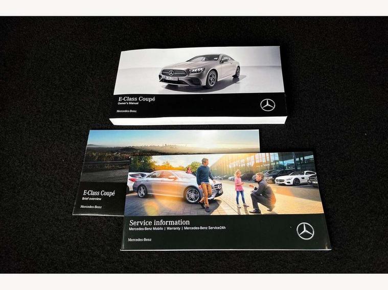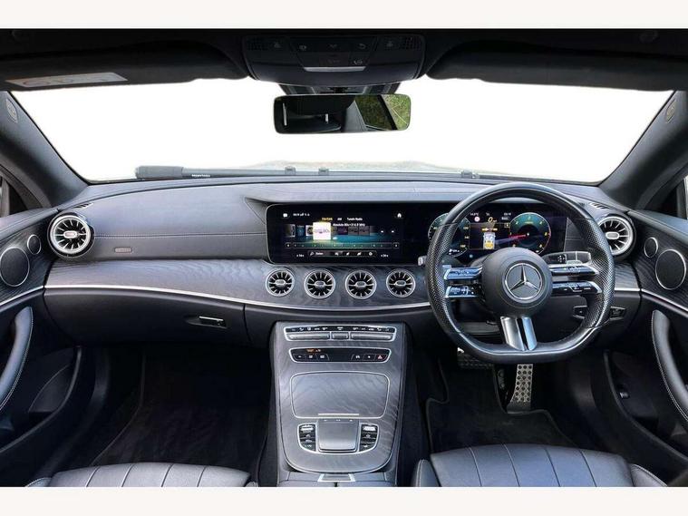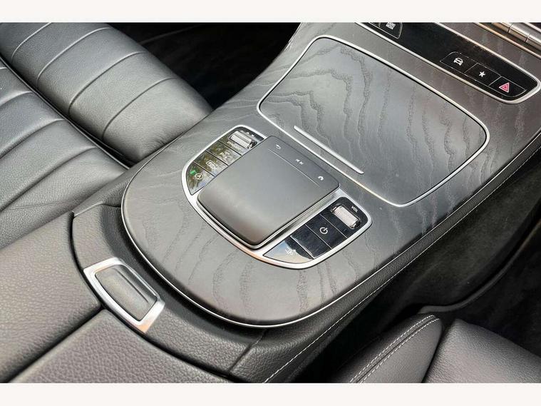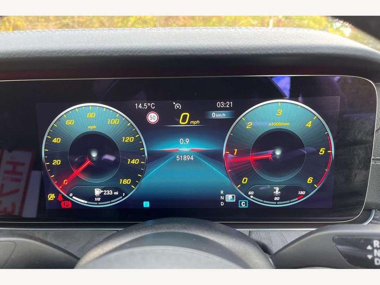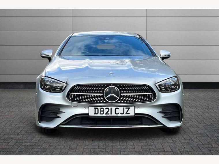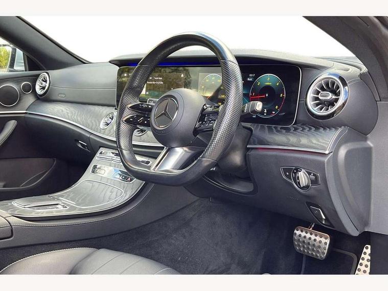 360 degree parking camera, Active parking assist including front and rear parking sensors, Analogue clock, Attention assist, Blind spot assist, Brake wear warning display, Cockpit display 12.3" widescreen digital instrument cluster, Collision prevention assist plus, Cruise control with variable speed limiter, Direct steer speed sensitive steering, DYNAMIC SELECT with a choice of driving modes (ECO, Comfort, Sport, Sport+ and Individual), ECO start/stop function, Hey Mercedes Voice activation, High resolution 12.3" multimedia colour display, Mercedes connect me, Outside temperature display, Pre-installation for Vehicle Monitoring, Pre-installation for Vehicle Setup, Remote boot release, Service indicator (ASSYST), Status display for rear seat belts in instrument cluster, Touchpad without controller, Traffic sign assist, Trip computer in multifunction display showing current fuel consumption, 25 litre AdBlue tank, 66 litre fuel tank, 9G TRONIC 9 speed automatic transmission, Agility control sports suspension with selective damping system, Diesel particulate filter, Incorrect fuelling protection, 2 USB ports in centre console, 2 USB ports in the rear, MBUX multimedia system with DAB digital radio and touchpad including satellite navigation, Smartphone integration via Android Auto/Apple CarPlay, Media Interface, USB and Bluetooth interface and touchpad with control wheel, Adaptive brake lights, AMG bodystyling front and rear aprons in polished aluminium, AMG boot lid spoiler in body colour, Body colour door handles, Body coloured bumpers, Electric windows with one touch opening/closing and obstruction sensors, Exterior mirrors heated and electronically adjustable, Illuminated front door sill panels with Mercedes-Benz lettering, LED high performance headlamps, Magic Vision Control heated windscreen wiper system, Pre-installation for roof rail systems, Privacy glass Includes rear side windows and rear windscreen, Radiator grille with integral star and 2 louvres in matt iridium silver with chrome trim, Radio aerial integrated into rear window, Rain sensing windscreen wipers, Rear LED lights, Top surround of side windows in polished aluminium, Visible twin pipe exhaust system integrated into bumper, Waistline in polished aluminium, 3-spoke flat bottom multifunction AMG steering wheel with Touch Control buttons, trimmed in black nappa leather, 40:20:40 split folding rear seats, Artico man-made leather upper dashboard and beltlines with contrast stitching, Automatic child seat recognition sensor, Belt feeder driver and front passenger seat belt automatically positioned within easier reach, Black door pins, Black roof lining, Central stowage compartment with 12 V socket in centre console, Central stowage compartment with USB socket for use with Android Auto and Apple CarPlay, Centre armrest and door handle illumination, Floor mats with AMG lettering, Front and rear door pockets, Front centre armrest with stowage compartment, Front footwell lights, Glasses compartment in overhead control panel, Glove compartment - lockable, air conditioned and illuminated, Head restraints for driver and front passenger (four-way adjustability) and in rear (two-way), Heated front seats, Interior lighting - 64 colour Ambient lighting, Interior rear light/integral reading lights, Isofix rear child seat fastenings, Leather upholstery, Multi contour front sports seats, Seat occupancy sensor for front passenger seat, Sports pedals in brushed stainless steel with black rubber studs, Steering column manually adjustable for height and reach, Steering wheel gearshift paddles, Sunvisors with illuminated vanity mirrors, THERMOTRONIC automatic climate control system with 3 climate zones, Mirror pack - E Class, Seat comfort pack - E Class, Stowage pack - E Class, 2 x 3-point rear seatbelts, Active bonnet pedestrian safety measure which detects an impact and raises bonnet, Active brake assist, Adaptive brake system with HOLD function and brake drying in the wet, Adaptive driver and front passenger airbags, Airbags - sidebag for driver and front passenger with combined thorax/pelvis bag, Anti-lock braking system (ABS), Drivers knee airbag, Electric parking brake, Electronic Stability Programme, Front and rear window airbags, Head airbags, Hill hold function, Perforated front brake discs with "Mercedes-Benz" lettering, Pre-Safe anticipatory safety system, Seatbelt warning, Tyre pressure monitoring system, Warning triangle and first aid kit, Alarm system/interior protection/immobiliser, Central locking with interior switch, automatic locking and crash sensor with emergency opening function, Chrome surround in electric key, Keyless Go entry and starting function, 19" AMG 5 twin spoke alloy wheels in tantalite grey with high sheen finish (RZI), Run flat tyres,