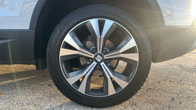 8" Digital cockpit, Colour multi-function on board computer display, Cruise control system with speed limiter, E-call, Outside temperature gauge, PAS, SEAT drive profile with driving experience button - Normal, Sport, Eco and Individual mode, gearshift, steering and throttle response, Self parking functionality (includes front and rear parking sensors), Start/stop system, Tailgate, Trip computer, wired and wireless full link smartphone integration, Wireless phone charger, Steering wheel mounted audio/phone controls, Black wheel arch surrounds, Body colour bumpers, Chrome front grille frame, Chrome roof rails, Chrome side window trim, Daytime running lights, Door mirrors with welcome light silhouette, Dynamic headlight range control with self adjusting whilst driving, Electric adjustable/heated/folding door mirrors, Front and rear electric windows, Full LED headlamps with lens and LED front fog lamps with cornering function, LED 3rd brake light, LED rear tail lights, Rear exhaust tailpipe, Rear fog lights, Rear side wing doors, Rear wash/wipe, Variable front intermittent wipers, 12v socket in front, 3 seat bench in 2nd row, 60/40 split folding rear seat, Cloth upholstery with front comfort seats, Drawer under right front seat, Dual zone climate control, Front and rear head restraints, Front centre armrest, Front seat back storage pockets, Height adjustable driver and passenger seat with lumbar adjustment, ISOFIX points in outer rear seats with top tether anchorage points, Leather sports steering wheel and gear knob, Rear armrest and easy back seat release mechanism from boot, Single front passenger seat, Steering wheel mounted gearshift paddles, Convenience pack - Ateca, Interior lighting pack - Ateca, Navigation system pack with DAB - Ateca, Safety and driving pack with attention and drowsiness assist - Ateca, 3x3 point rear seatbelts, ABS, Traction control system (TCS), Electronic stability control (ESC) and Electronic differential lock system (XDS), Airbags - Driver and front passenger airbag with deactivation, front side, two curtain and driver's knee airbags, Electric parking brake with auto hold function, Front and rear seatbelt reminder, Front assist with autonomous emergency braking, Hill hold control, Manual rear child locks, Single tone horn, Tiredness recognition system, Tyre pressure monitoring system, Alarm, Keyless entry, Locking wheel bolts, Remote central locking, Chrome interior detailing, 18" Performance machined alloy wheels 36/2 in nuclear grey,