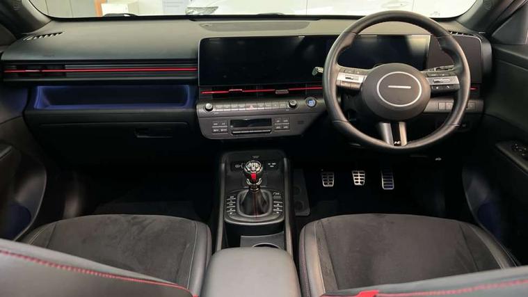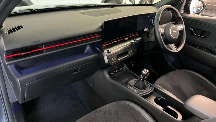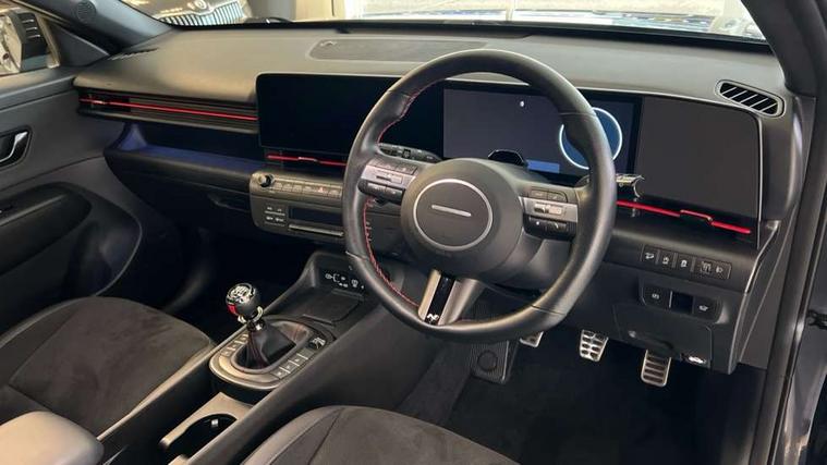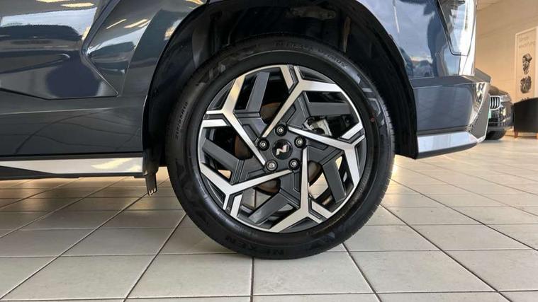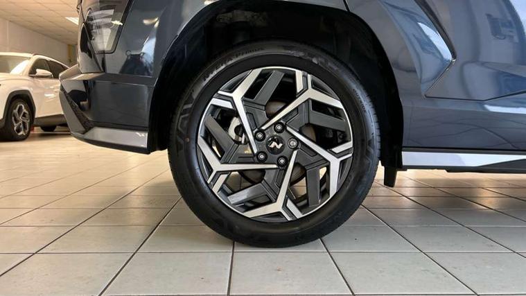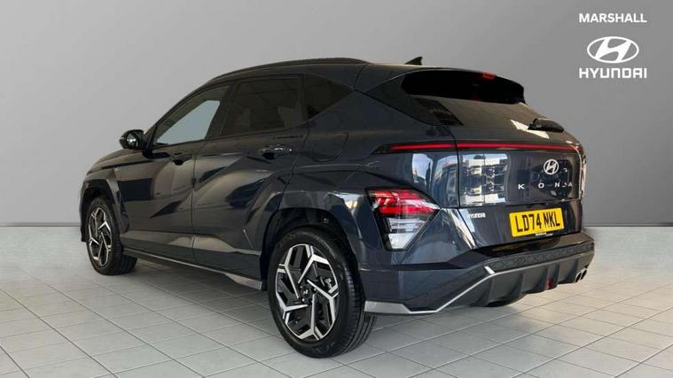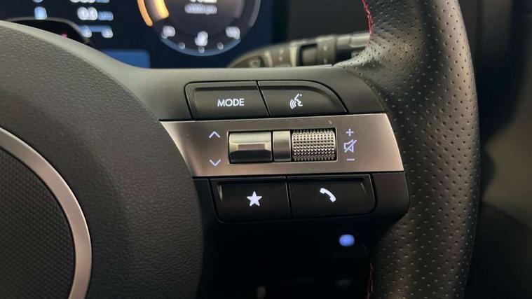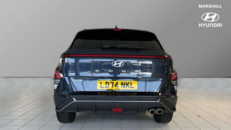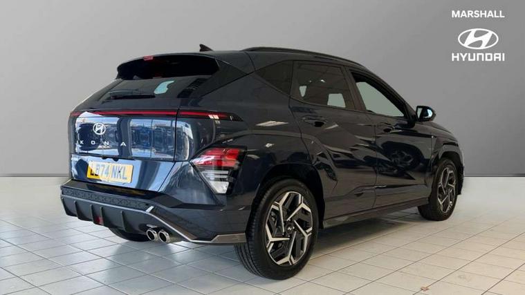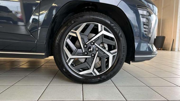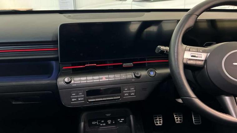 12.25" digital instrument cluster, 12.3" touchscreen centre console display satellite navigation with bluelink, live services and mapcare, Blind spot collision avoidance assist, Blind spot view monitor, Bluetooth connectivity with voice recognition, Cruise control, Driver status monitor (DSM), Driver supervision instrument cluster with 12.3" LCD display, eCall emergency call system, Feature on demand - Enabled, Forward collision avoidance assist (FCA 1.5) - Car, pededstrian, cycle and junction turning, Front parking sensor, Height adjustable power tailgate, Intelligent speed limit assist, Lane follow assist, Lane keep assist, Leading vehicle departure alert (LVDA), Parking Collision Avoidance Assist-Reverse (PCA-R), Parking distance warning - side, Parking system with rear camera and guidance system, PAS, Rear cross traffic collision avoidance (RCCA), Rear parking sensor, Rear view camera with dynamic guidelines, Roadside assistance, Safe exit warning (SEW), Surround view monitor, Wireless phone charging pad, Wireless Smartphone Integration includes Apple CarPlay and Android auto, 2 front USB C and 2 rear USB C charging points, Bose Premium Audio system with 7 premium speakers + subwoofer, DAB Digital radio, Steering wheel audio, phone and cruise controls, Auto dimming rear view mirror, Automatic headlights with dusk sensor, Automatic windscreen wipers with rain sensor, Body colour exterior door handles, Body coloured wheel arch inserts, Door mirror LED indicator lights, Electric front windows with anti-trap mechanism and one touch control, Electric rear windows, Electrically adjustable and heated door mirrors, Gloss black door mirrors, Horizon centre LED DRL, LED projector headlights, LED taillights, LED upper and lower rear lights, Power folding door mirrors, Privacy glass - Rear windows and tailgate, Rain sensor, Rear roof spoiler with integrated LED brake light, Rear side wing doors, Rear wiper, Roof rails, Solar glass with front door glass and windscreen, Tinted glass in front and rear doors, Windscreen auto defog function, 12V power outlet in front console, 2 zone climate control, 3 seat bench in 2nd row, 40/20/40 split folding rear seat, Adjustable head restraints, Aluminium pedals, Ambient lighting, Driver and passenger front seat pockets, Driver's seat electric adjustments, Driver's seat lumbar support, Driver/passenger sunvisors and illuminated vanity mirrors, Floor mats, Front passenger's seat electric adjustments, Heated front seats, Heated rear seats, Heated steering wheel, Height/reach adjustable steering column, Leather steering wheel, Leather wrapped steering wheel and gear knob, LED centre interior light, LED front interior light, Luggage compartment LED lighting, Luggage net, Luggage shelf, Metal paint effect interior door handles, N Line Alcantara/leather upholstery, Rear centre armrest with cupholders, Single front passenger seat, Ventilated front seats, Vertical adjustment rear head restraints, N Line exterior design pack - Kona, N Line interior design package - Kona N Line S, Trailer wiring package - Kona, Airbag - front, front side, curtain and centre front airbag, Anti-lock brake system (ABS), Childproof rear door locks, Downhill brake control, Electric parking brake, Electronic stability control, Fixed 3 point for second row centre passenger seatbelt, Hill start assist control (HAC), Rear seat alert, Tyre pressure monitoring system, Alarm/immobiliser, Rear occupant alert, Remote central locking, Smart key with keyless entry and start/stop button, Five year annual vehicle health checks, Temporary mobility kit (TMK),