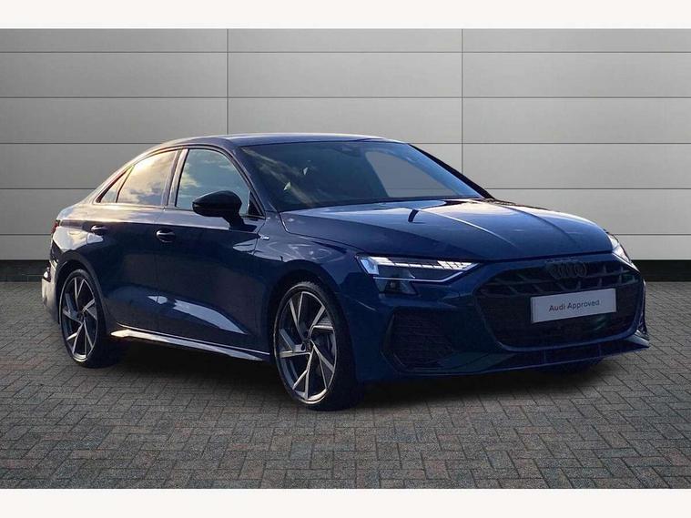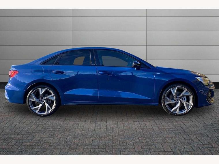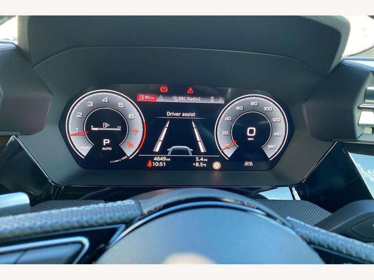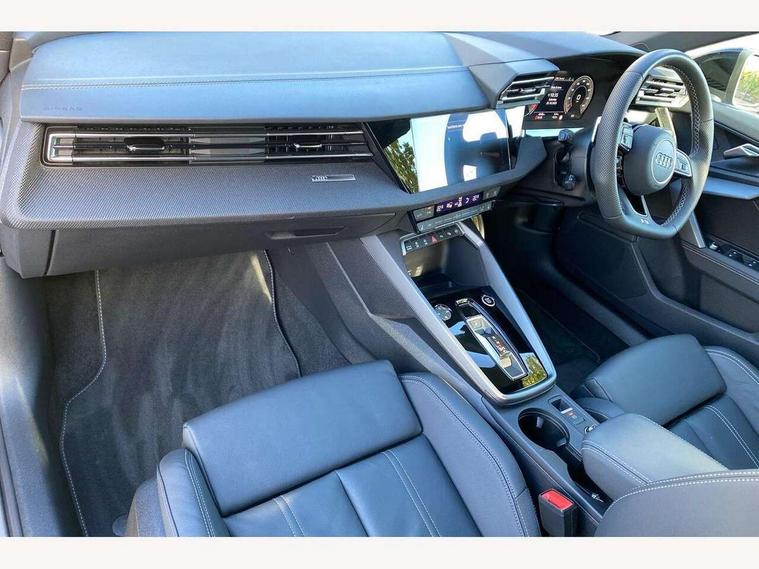 Adjustable speed limiter, Audi drive select, Audi smartphone interface with app store includes wireless Apple carplay, Android auto and Amazon alexa integration, Audi virtual cockpit plus - 12.3" full HD resolution dynamic digital instrument cluster, Automatic start/stop system with recuperation, Bluetooth interface, Camera based traffic sign recognition, Collision avoidance assistant, Cruise control, Distraction and Fatigue warning, e-Call (emergency call), Electromechanical power speed sensitive steering, Emergency assist, Lane departure warning system, MMI Navigation Plus with high resolution 10.1" colour touch screen display, Park Assist with parking system Plus, Service indicator, Trip computer, Voice control system with natural language interaction, Sports suspension, Audi Phonebox light with wireless charging, Audi sound system - 10 loudspeakers including centre loudspeaker and subwoofer, DAB Digital radio, USB ports with charging function in the rear, Acoustic glass windscreen, All weather light, Anthracite grey Audi rings (front and rear), Audi beam uses LEDs to project the Audi logo onto the ground as you exit your A3, Auto dimming frameless rear view mirror, Automatic dynamic range control, Black accents front and rear bumpers, Black accents in the area of the Audi single frame grille, Black accents window trims strips, Dipped beam, main beam, position light and turning light, Electrically adjustable/heated/folding/auto dimming door mirrors with integrated LED indications + kerb view function for passenger side, Exterior model badging, Front and rear side air inlets in grained matt black with dark liquid chrome frame, Front electric windows, Heat insulating glass windscreen, Illuminated door sills with aluminium inserts at the front with S logo, Intersection light, LED 3rd brake light, LED brake lights, LED daytime running x3, LED headlights with LED rear lights and dynamic rear indicators, LED rear number plate lights, LED reverse light, LED tail lights, Light and rain sensors, Manoeuvring light, Motorway light, Privacy glass - dark tinted rear window, rear door and side windows, Rear boot, Rear diffuser and grill in grained matt black with inlay in dark liquid chrome, Rear electric windows, Rear side wing doors, Static Cornering lights, 12V socket and storage compartment in front centre console, 3 seat bench in 2nd row, 3 spoke flat bottomed leather multifunction sport steering wheel with gear shift paddles, 3-zone deluxe automatic air conditioning, 4 way electrically adjustable lumbar support for driver and front passenger, 40/20/40 split folding rear seat bench, Black cloth headlining, Black front and rear floor mats, Front and rear centre armrest in artificial leather with contrasting stitching on armrests and instrument panel, Front and rear headrests, Heated front seats, Height and reach adjustable steering wheel, Manual boot compartment lid, Manually adjustable front seats, Rear centre armrest with cupholder, S badging on the steering wheel, Seat side bolsters, Single front passenger seat, Stainless steel pedals and front footrest in black, Twin leather upholstery with front sports seats S embossed logo, Aluminium interior elements pack - A3, 3x3 point rear seat belts, Driver and front passenger airbag with passenger airbag deactivation, Electronic Stabilisation Control (ESC) including ABS, ASR and EDL, First aid kit with warning triangle and 2 safety vests, Front side airbags with head airbags and interaction airbag, Hill hold assist, Pre-sense front with pedestrian and cyclist detection, Seatbelt monitoring, Tyre pressure loss indicator, Anti theft alarm, Anti-theft wheel bolts, Electronically operated child locks, Immobiliser, Remote central locking with safelock, Black dashboard,