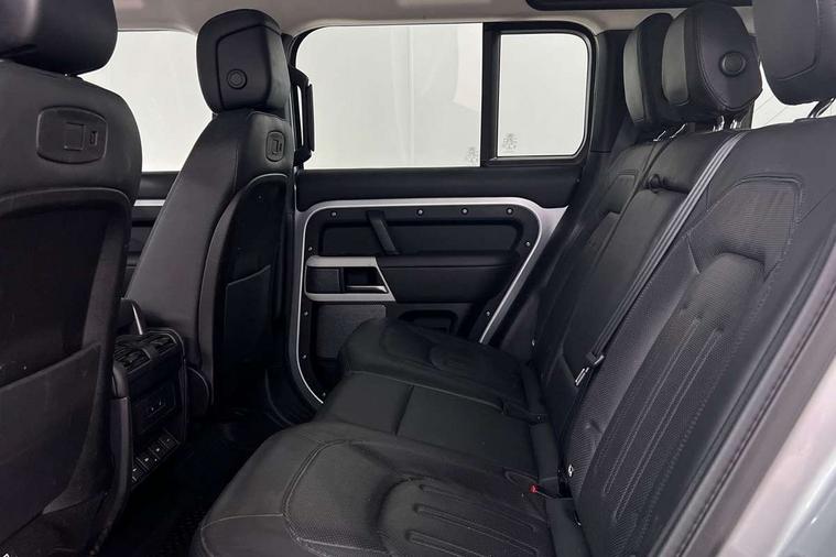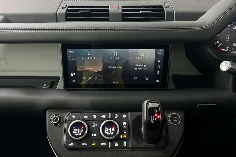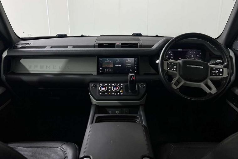 10" touch screen, 360 degree parking aid, 3D Surround Camera with 360 View, 180 Rear View, Front Traffic Detection, Forward Vehicle Guidance, Tow Hitch Assist and clear sight Ground View, Adaptive cruise control, Android Auto, Apple CarPlay, Blind spot assist, Bluetooth system, Clear exit monitor, Click and go integrated base unit, Connected navigation pro, Driver condition monitor, Interactive driver display, Lane keep assist, PAS, Pivi Pro connected navigation system with upgraded Infotainment, Rear collision monitor, Rear traffic monitor, Traffic sign recognition with adaptive speed limiter, Trip computer, Wade Sensing, Adaptive dynamics, Electronic air suspension, DAB Radio (Digital Audio Broadcasting), Automatic headlight levelling, Automatic headlights, ClearSight interior rear view mirror, Front fog lights, Heated windscreen, LED tail lights, Matrix LED headlights with signature DRL, Power fold, auto-dimming, heated door mirrors with memory and approach lights, Puddle lights, Rain sensing windscreen wipers, Signature graphic (with interior storage), Sliding panoramic roof, Standard treadplates, 14 way heated and cooled electric adjustable memory front seats with 4 way manual headrests, Carpet mats, Electric reach + rake adjustable steering column, Extended leather upgrade, Front passenger isofix child seat attachment, Heated steering wheel, Leather gearshift, Leather steering wheel, Loadspace cover, Morzine headlining, Multifunction steering wheel, Rear headrests, Rear ISOFIX, Sunvisors with illuminated vanity mirrors, Twin front cupholders with cover, Windsor leather upholstery, Online pack with data plan - Defender, 5 x 3 point seatbelts, ABS, Driver and passenger airbags, Emergency braking, ESP + traction control, TPMS (Tyre pressure monitoring system), Alarm, Immobiliser, Intrusion sensor, Keyless entry and go, Locking wheel nuts, Remote locking,