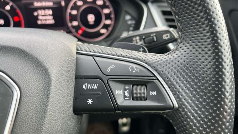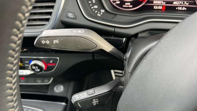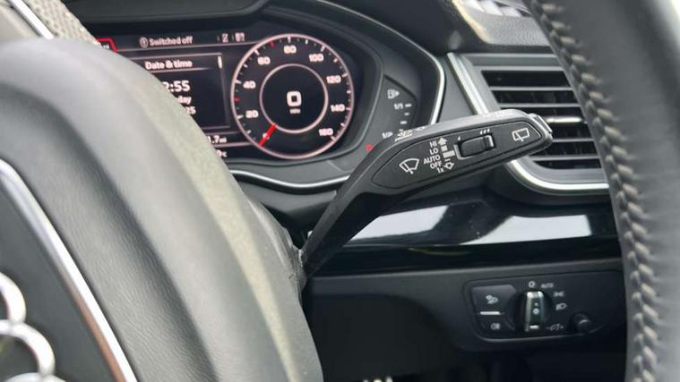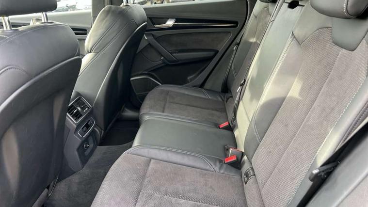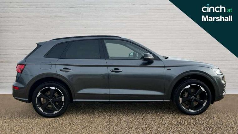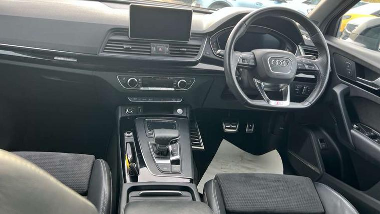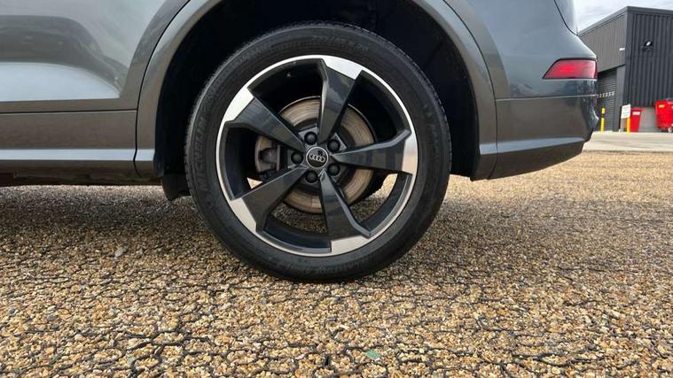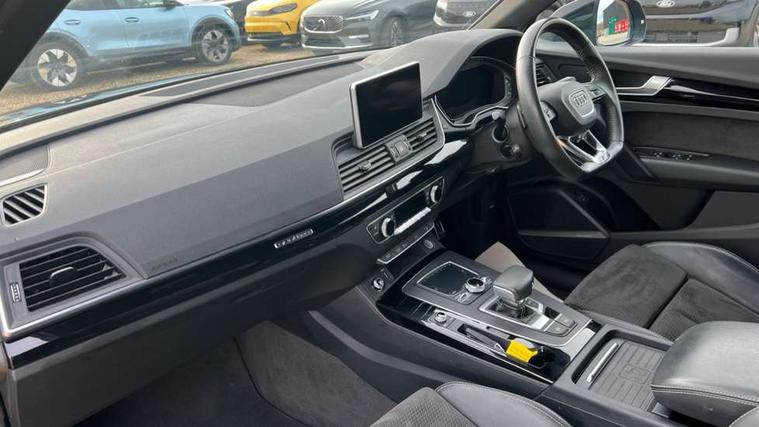 7" Colour driver information system, Audi connect infotainment services, Audi connect safety and service (e-call), Audi drive select, Audi parking system plus with front and rear sensors, Audi smartphone interface, Automatic start-stop system with coasting functionality and efficiency programme, Electro - mechanical power assisted steering, MMI Navigation, Mobile telephone preparation - bluetooth interface, Power tailgate, Service interval indicator, Voice control system, Diesel particulate filter, Dynamic suspension, Quattro on demand, 2x SD card slot, CD player, DAB Digital radio, MMI radio plus with 7" colour MMI screen and MMI controller, Acoustic windscreen, Air inlets in matt titanium black with blades in matt aluminium silver, Auto dimming rear view mirror, Automatic headlight levelling, Black roof rails, Body colour bumpers, Body colour rear diffuser with matt aluminium silver surrounds, Body colour underbody protection, Chrome exhaust tailpipe, Electric adjustable/heated/folding door mirrors, Front and rear electric windows, High beam assistant, LED headlights with LED rear lights + dynamic rear indicators, Light and rain sensor for auto activation of lights and windscreen wipers, Loading sill protector in stainless steel, Privacy glass with front acoustic glazing, Rear wiper, Titanium black door mirror housings, 2 x USB charging port with aux input socket, 3 rear headrests, 3 spoke flat bottom high multi-function leather steering wheel, 3 zone climate control, 40:20:40 split folding rear seat with rear centre armrest, Black cloth headlining, Contrast stitching on seats, steering wheel and gear lever gaiter, Front centre armrest, Front sports seats, Front/rear floor mats, Heated front seats, Height adjustable front head restraints, Height/reach adjustable steering column, ISOFIX child seat mounting and top tether, Luggage compartment carpet, Manual seat adjustment with 4-way electric lumbar support, Perforated leather gearknob, Removable luggage compartment floor, Stainless steel pedals, Sunvisors with vanity mirrors, Tool kit, Trunk roller cover, LED interior light pack - Q5, Non Smokers pack, Titanium black styling pack - Q5, 3 point seatbelts on all seats, 6 airbags - Driver, front passenger, curtain and side airbags, Electromechanical parking brake, Electronic stabilisation control including ABS, ASR and EDL, Front passenger airbag deactivation, Hill descent control, Hill hold assist, Multi collision brake assist, Pop-up bonnet for pedestrian protection, Pre sense city, Seat belt force limiter, Seatbelt monitoring, Tyre pressure warning, Warning triangle and first aid kit, Anti theft alarm, Anti-theft wheel bolts, Keyless Go access/ignition system, Remote central locking, Black piano finish inlays, 20" 5 arm rotor design sport alloy wheels in gloss anthracite black, diamond cut finish,
