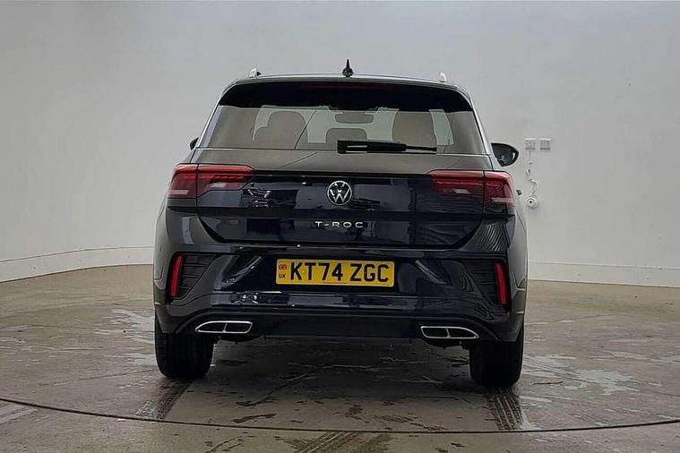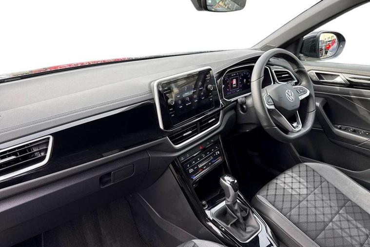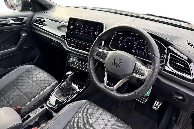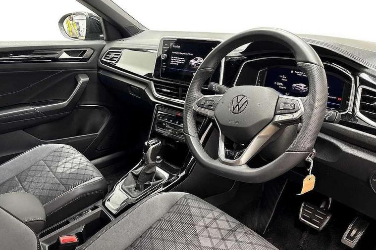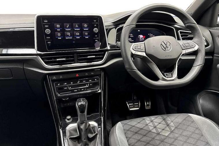 10.25" Digital cockpit pro, Advanced driver attention and drowsiness monitor, Emergency call service, Lane keeping system Lane Assist, Mobile phone interface, Modified key software - reduce switch off time for key status change to Long no motion, Online services, Park assist including front and rear parking sensors, Service interval indicator, Tailgate/trunk lid release from outside, Think blue trainer driver tips and journey analysis, Warning sound and light for front seatbelts unfastened, Wireless app connect, Battery regeneration during braking, Start/stop function with battery regeneration, DAB Digital radio, Diversity antenna for FM reception, Front and rear 6 speakers, Music playback - MP3, WMA and AAC files, Premium USB cable in choice of either Apple or Android smartphone compatibility, SD card slot, Simultaneous pairing of 2 compatible mobile devices, Title and cover art display, We Connect and We Connect Plus functionality, Auto dimming interior rear view mirror, Automatic hazard lights activation under emergency braking, Automatic headlight control with LED separate daytime running lights with coming/leaving home function, Body coloured exterior mirror housings and door handles, Electrically adjustable and heated door mirrors, Extended roof spoiler, Exterior mirrors aspherical on driver side, convex on front passenger side, External USB type C socket and charging sockets, Front windscreen wiper with intermittent wipe and 4 position delay, Heated rear window, LED 3rd brake light, LED rear combination lamps, LED rear number plate lights, Power windows with comfort operation and circuit breaker, Privacy glass for rear side windows and rear window, R-Line design body coloured bumpers, Rain sensor, Rear exhaust tailpipe, Rear fog light on one side and reversing lights on both sides, Rear side wing doors, Rear wash/wipe with intermittent wipe setting, Remote electrically foldable door mirrors, puddle lights and reverse activated passenger's door mirror, 12V power socket in centre console, 3 rear head restraints, 3 seat bench in 2nd row, 4 load lashing points in luggage compartment, Air care climatronic air conditoning system with active combination filter and 2-zone temperature control, Black roof lining, Chrome plated decorative trims, Chrome plated radiator grille inserts, air vent surrounds and light switch surrounds, Door and side trim panel with leatherette insert, Front + rear carpet mats, Front centre armrest, Front cupholders x 2, Front footwell illumination, Front reading light, Front scuff plates with R Line logo, Front seat back storage pockets, Glove compartment door with light, Instrument lighting, white adjustable panel illumination, Interior ambient lighting and surround lighting, Interior light delay, Isofix child seat preparation, Leather gearshift handle, Load-through provision with cup holder when folded down ('Unsplit rear seat bench, split folding backrest, with centre armrest), Luggage compartment lighting, Single front passenger seat, Stainless steel pedals, Storage compartment in left and right luggage area, Storage compartment in rear doors, Storage compartments in driver and front passenger doors, Sunvisors with illuminated vanity mirrors, Variable boot floor, height adjustable and removable, Driver assistance pack without proactive passenger protection - T-Roc, 3 point height adj front seatbelts + pretensioners, 3 point seatbelts in outer rear with ECE label, ABS, Child locks on rear doors, City emergency braking and pedestrian monitoring, Driver and front passenger airbag with front passenger airbag deactivation, Driver and front passenger safety-optimised head restraints, Drivers seatbelt reminder, Electronic parking brake, Electronic Stability Control (ESC) inc EDL (Electronic Differential Lock) and ASR (Traction Control), Front and rear passengers curtain airbag system including front side airbags, Hill start assist, Predictive pedestrian protection, Rear disc brakes, Two tone horn, Tyre pressure loss indicator, Volkswagen roadside assistance, Piano black decorative inserts in dashboard and front door trim panels, Trims for alloy wheels,