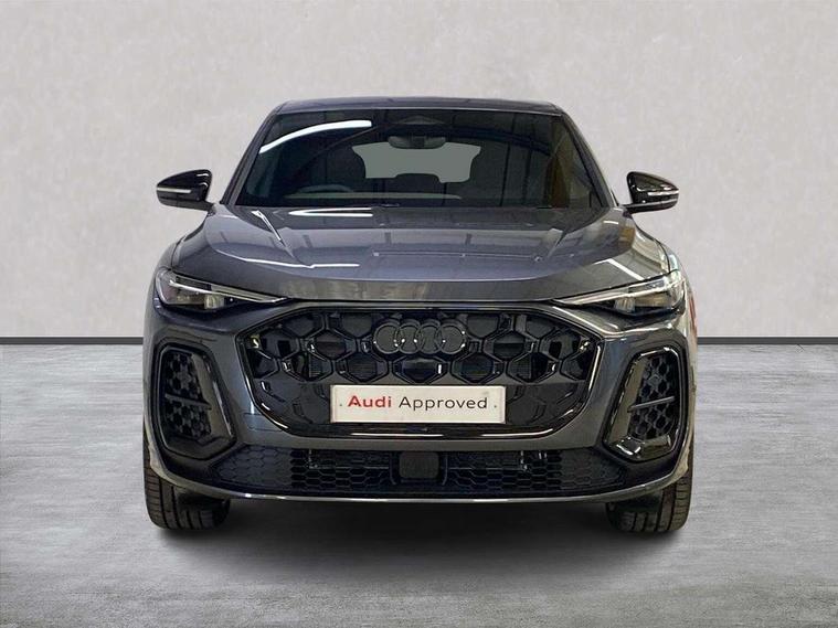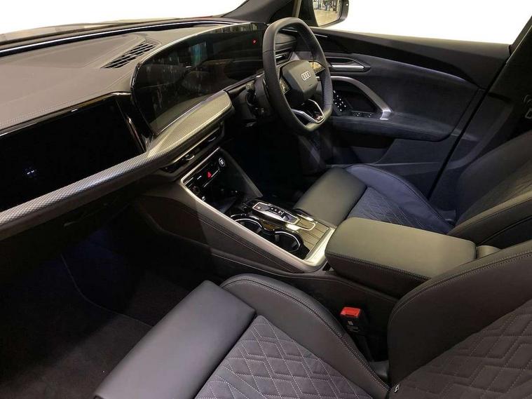 Adaptive cruise control, Advanced driver attention alert, Audi application store, Audi connect emergency call and service, Audi drive select, Audi smartphone interface, Audi virtual cockpit plus with 11.9" OLED colour display, Camera based traffic sign recognition, Fatigue monitor, Front cross traffic intersection assist, Lane change assistant with exit warning system, rear cross traffic alert and rear turn assist, Lane departure warning with emergency assist, MMI 10.9" front passenger touch display, MMI navigation plus with high resolution 14.5" OLED touchscreen colour display, Park assist plus, Parking system plus with 360 display, PAS, Reversing camera, Swerve assist and turn assist, Top view camera, Traffic sign based speed limiter, 2 USB-C ports in both the front and rear, Audi sound system impressive sound with 10 loudspeakers including centre speaker and subwoofer, 6-channel amplifier with a total output of 180 watts, DAB Digital radio, Smartphone compartment with wireless charging, Active digital light signatures - Six additional combinations of active daytime running light signature, Auto dimming rear view mirror, Coming/leaving home lighting function, Electrically adjustable heated and folding + automatically dimming exterior mirrors, Exhaust tailpipes in dark chrome, Front and rear electric windows, Front door sill trims with aluminium inlays, illuminated with 'S' logo, Full body paint finish, Headlight cleaning system, Heated rear window, High beam assist, High gloss window surrounds, Inlay and front air inlets in matt anthracite chrome, LED rear lights pro incl. dynamic rear indicators and illuminated light strip with animated coming and leaving home function, Logo projection light in exterior mirrors, Matrix LED headlights, Memory function for door mirrors, Privacy glass, Projection light for rear window, Radiator grille in phantom black, Rear and side windows with heat insulating glass, Rear honeycombe grille in matt black with inlay in matt anthracite chrome, Rear side wing doors, Rear wash/wipe, S Line badge on the front wings, Towbar preparation, Windscreen with acoustic glazing, 3 rear head restraints, 3 seat bench in 2nd row, 3 spoke leather steering wheel with multi-function buttons with touch control, flattened on top and bottom, with S badging and contrast stitching, 4 way electric lumbar support for driver and front passenger, 40:20:40 split folding rear seat bench with centre armrest and cup holders, Comfort centre armrest, Deluxe 3 zone electronic climate control, Dinamica microfiber/leather upholstery, Electrically adjustable front seats with memory function for driver's side, Front and rear floor mats, Front sport seats with integrated head reastrains, Headlining in black cloth, Heated front seats, i-Size child seat mounting on the front passenger side and outer rear seats, i-Size and top tether on the outer rear seats, Interior trim in aluminium look, Luggage compartment lid, electrically opening and closing, Manual steering column adjustment, Single front passenger seat, Softwrap in Dinamica, Stainless steel pedals and footrest, Steering wheel grips in perforated leather and shift paddles, Ambient lighting package plus - Q5, Black styling package plus - Q5, Storage and luggage compartment pack - Q5, 3x3 point rear seatbelts, ABS, Acoustic vehicle alerting system, Convenience key with safelock, Driver and front passenger airbag with passenger airbag deactivation, Electric child safety locks, First aid kit with warning triangle and high visibility vests, Front emergency brake assist, Front side airbags with head airbag system and front interaction airbag, Hill hold assist, Occupant detection in rear seat area, Proactive passenger protection system for front, sides and rear, Red brake calipers, Side airbags in front and rear with head airbag system and front interaction airbag, Tyre pressure loss indicator, Anti theft alarm, Anti-theft wheel bolts, Remote control key with SAFELOCK and keyless go, Accent surfaces and control buttons in gloss black, Black dashboard with contrast stitching, Steel grey seat stitching, Upper and lower interior elements in dinamica microfiber, Tyre repair kit,