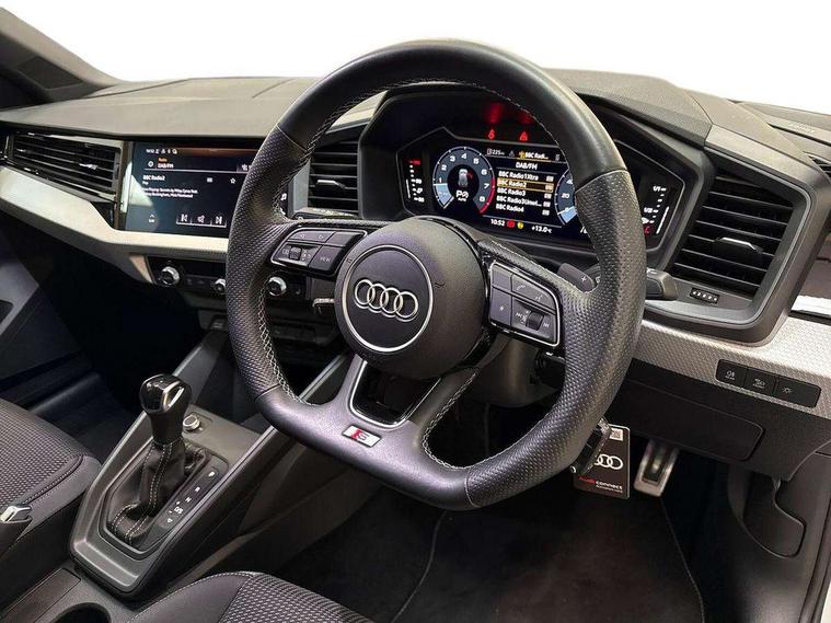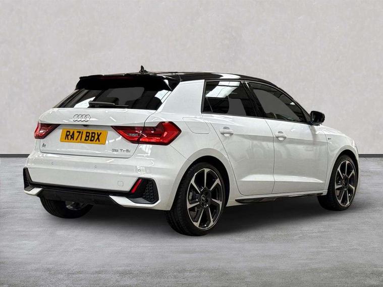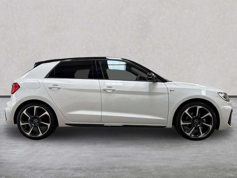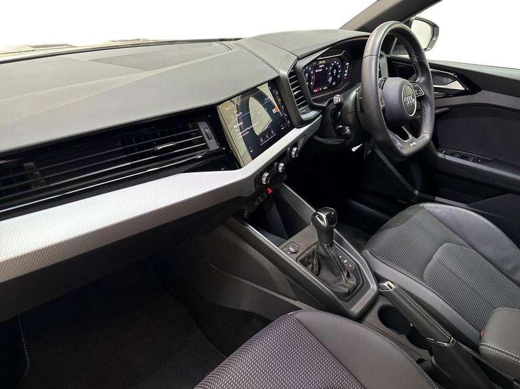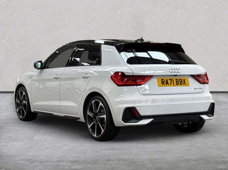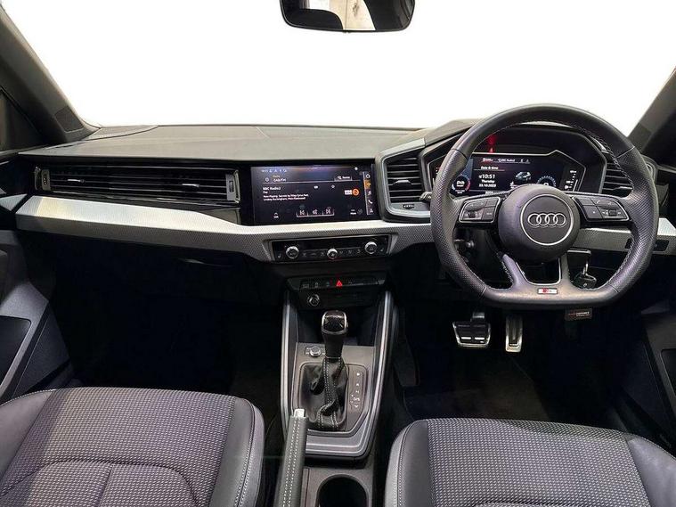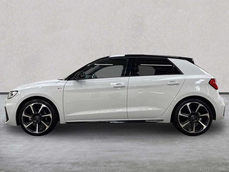 10.25" Digital instrument cluster display classis style instrument dials + speed, odometer, time, outside temperature, telephone menu + fuel level warning, Audi connect safety emergency and service including E-call, Audi drive select - power steering assistance + engine + gear shift 3 preset modes (auto, dynamic, efficiency and an Individual mode), Audi smartphone interface with connect compatible smartphone via USB directly MMI display + Nav, music, third party apps controlled via MMI controller, Automatic start/stop system, Bluetooth interface, Cruise control, Driver's information system, Electromechanical power steering, Emergency services call system, Lane departure warning system, Service interval indicator, Speed limiter, Voice control system, Washer fluid level indicator, Sports suspension, 1 x SDXC card reader, 2 x USB type C connection points, DAB Digital radio, MMI radio plus with 8.8" colour MMI display screen and MMI touch, Auto dimming rear view mirror, Black door mirrors, Black side skirts, Body coloured bumpers, Door sill trims with aluminium inlays and logo, Electric front and rear windows, Electrically adjustable, heated, folding door mirrors with integrated LED side indicator, Front side air inlets in grained matt black and C frame in titanium black, Heat insulating glass windscreen and side windows, Heated rear windscreen, High level LED brake light, LED headlights with LED rear lights + dynamic rear indicators + headlight adjustment and high beam, turning light + LED daytime running lights, Radiator protective grille frame in matt aluminium silver, Rain and light sensors, Rear diffuser strip in matt titanium black, Rear fog lights, Rear side wing doors, Rear wing door, Rear wiper, Side front spoiler lips in grained matt black, 12V socket in centre console with two cup holders, 3 rear seats with headrests, 3 seat bench in 2nd row, 3 spoke flat bottomed multi-function plus leather steering wheel with S badging, grips in preforated leather, contrast stitching and paddle shift, 40:60 Split folding rear seat or folded fully, Black cloth headlining, Driver and passenger seat with manual height adjust with forward and backwards adjustment, Front and rear black floor mats with contrast stitching in fine silver, Front head restraints, Front passenger seat, Height and reach adjustable steering wheel, ISOFIX child seat mounting for front passenger and outer rear seats including top tether attachment point of outer rear seats, Leather gear knob with aluminium trim, Luggage compartment light with front and rear reading lights, Manually adjustable lumbar support in front seats, Stainless steel pedals, Black styling pack - A1 Sportback Black Edition, LED interior lighting pack - A1, Luggage compartment pack - A1, 3x3 point rear seatbelts, Audi pre-sense front with pedestrain and cyclist recognition, Brake assist function, Driver and front passenger airbag with front side and head airbags, Electronic Stability Control including ABS, EBD, ASR and EDL, Front passenger airbag deactivation switch, Hill hold assist, Manual rear child locks, Seatbelt height adjustment for front seats, Seatbelt monitoring, Tyre pressure warning light, Warning triangle and first aid kit, Anti theft alarm, Anti theft wheel bolts and loose wheel warning, Immobiliser, Remote central locking with 2 foldaway keys, Aluminium trim for control switches, air vents and digital instrument cluster, Silver grey inlays polygon structure in diamond paint finish, Structured grey accent areas including air vents, door handle recesses and centre console in quartz paint finish, 18" 7 spoke rotor design alloy wheels in gloss anthracite black, diamond cut finish,