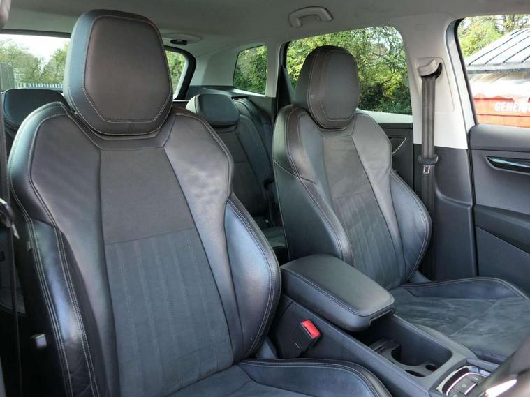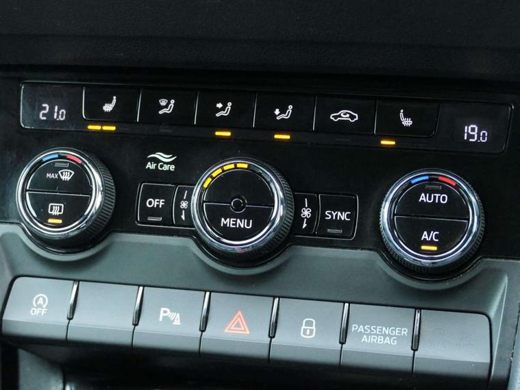 Chrome framed air vents, Storage on wheel cover, Alarm with interior monitoring, back up horn and tilt sensor with safe function, Electronic engine immobiliser, Keyless entry and keyless start with safe system, Remote central locking with 2 remote folding keys, DAB radio with Bluetooth, SD card slot, USB connection, Airbags - Front side, head, knee and curtain, Automatic door unlocking in case of crash, Automatic fuel cut off in case of crash, Brake energy regeneration, Driver airbag, Electronic parking brake with auto hold function, Emergency rear braking signal, ESC including ABS, MSR, ASR, EDS, HBA, DSR, RBS, MKB and traction control, Front assist radar scanning of the space in front of the car with automatic braking, Hill hold control, Passenger airbag with switch-off function, Pedestrian monitor, Three point seatbelts rear, Two tone horn, Tyre pressure display, Tyre pressure monitor, Acoustic glass, Aero front windscreen wipers with intermittent function, Automatic headlight control system, Body colour door mirrors and handles, Body coloured bumpers, Chrome outside aluminium bar around the window, Chrome roof rails, Full LED headlights + adaptive front light system + LED daytime running lights and front cornering fog lights, Headlight washers, Heated rear windscreen, LED rear lights with high functionality, Light assistant (coming/leaving home/tunnel light), Privacy glass, Safety reflectors on front doors, Third brake light, 1.5 litre bottle holders in driver and front passenger door panels, 12V socket in boot, 12v socket in front centre armrest with storage compartment and rear air vents, 2 Folding hooks and nets in boot, 2 Front readings lights for driver and passenger, 3 rear height adjustable headrests, 4 foldable roof handles with rear coat hooks, 4 lashing points on luggage floor, Backrest release, Cargo elements in boot, Chrome inner door handles, Dual zone climate control, Folding tables on the front seat backrests, Front seat and rear pockets, Height adjustable front three point seats belts with tensioners, Height adjustable passenger seat, Height/reach adjust steering wheel, Ice scraper, Illuminated and cooled glovebox, Illuminated luggage compartment, Isofix child seat preparation outer rear, Net programme in boot, Pen holder, Pollen filter, Rear boot cover, Rear reading lights, Rear seats fixed folding and divided 60:40, Removable LED torch in the boot, Retractable parcel shelf attachable to tailgate, Safety vest holder, Seatbelt reminder signalisation and pretensioner for all seats, Storage box in upper central dashboard closed, Storage compartment below the passenger seat, Storage net on centre console passenger side, Sunglasses storage compartment, Sunvisors with illuminated vanity mirrors, Textile floor mats, Umbrella under passenger seat, VarioFlex seats with retractable parcel shelf, Driver alert system, Driver fatigue sensor, Driver profile selection, Electro-mechanical PAS, Front and rear parking sensors, Multifunction colour trip computer, Outside temperature gauge, Rear view camera, Service interval indicator, Start/stop system with regenerative braking, Diesel particulate filter,
