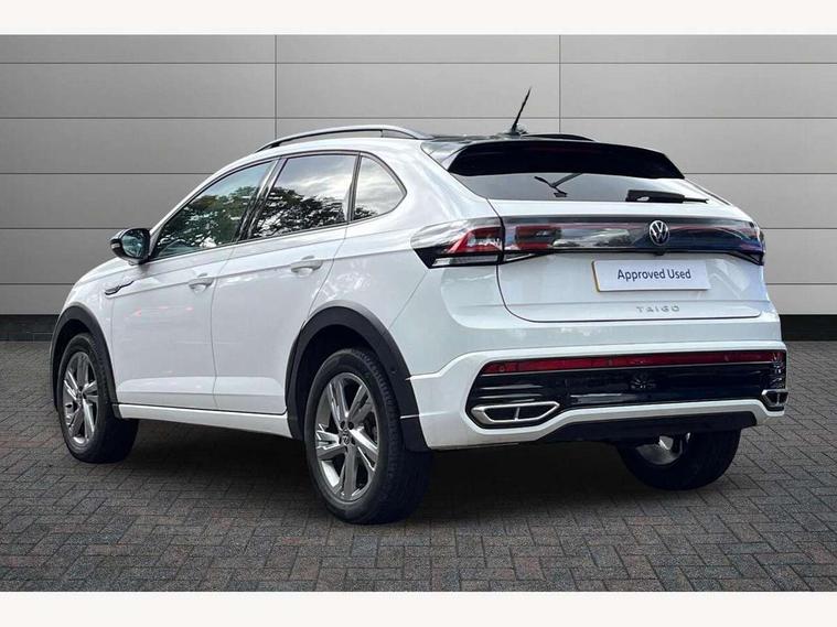Adaptive cruise control, App-Connect including App-Connect Wireless, Digital cockpit pro - 10.25" high resolution TFT dash display screen with customizable menus and information, Driver alert system, Driving profile selection, e-Call (emergency call), Power Steering, Travel assist including emergency assist, Washer fluid level indicator, Wireless Charging including Bluetooth, Start-stop system with battery regeneration (recuperation - energy recovery during braking), XDS electronic differential lock for improved traction and handling, Digital radio reception (DAB+), Diversity antenna for FM reception, WeConnect plus, Ambient lighting with logo projection, Aspherical driver's exterior mirror, Auto headlights, Body coloured bumpers, Body coloured exterior mirror housings and door handles, Bumpers in R-Line style, Electric windows, External USB type C socket and charging sockets, Front fog lamps with cornering function, Front scuff plates with R-Line logo, Headlight range control, LED headlamps, LED rear combination lamp, LED third brake light, Left convex exterior mirror, Power folding adjustable/heated exterior mirrors and front passenger exterior mirror lowering function, Rear fog light on one side, reversing light on both sides, Rear side wing doors, Rear wash/wipe with intermittent wipe setting, 12V socket in centre console, 2 front reading lights, 3 rear head restraints, 3 seat bench in 2nd row, Air care climatronic air conditoning system with active combination filter and 2-zone temperature control, Black carpets, Black roof lining, Child seat anchor for child seat system i-Size, 2x top tether and child seat anchor in front on front passenger side, Chrome bezel for instrument cluster, vents, door handles + gear shift, Driver and front passenger seat height adjustment, Front + rear carpet mats, Front centre armrest, Front footwell illumination, Front sports comfort seats, Height and reach adjustable steering wheel, Interior ambient lighting and surround lighting, Karoso artvelours cloth upholstery, Leather trimmed gear knob, Leather wrapped multifunction steering wheel, Luggage compartment floor, Luggage compartment light, Lumbar support for driver's and front passengers seat, Seat covers in grey + titanium black, Single front passenger seat, Split folding backrest with centre armrest and unsplit rear seat bench, Stainless steel pedals, Storage compartment under front seats, Sun visors with illuminated vanity mirrors, Chrome Package - Taigo, Drivers assistance pack - Taigo, Light and Sight pack including High beam assist - Taigo, 2 x 3-point seatbelts/outer rear seats with ECE label, 3-point seat belts in front with pretensioner and height adjustment, 3-point seatbelt for centre rear seat, Driver and front passenger airbags with front passenger airbag de-activation, front side and curtain airbags, Driver and front passenger safety-optimised head restraints, Electronic stability control, Extended and predictive pedestrian/ cyclist protection, Front and rear disc brakes, Front curtain and side airbags with center airbag, Hill start assist, Manual rear child locks, Single tone horn, Tyre pressure loss indicator, Anti-theft alarm system with interior monitoring, backup horn, and towing protection, Anti-theft wheel bolts, Grey anodised matte decorative inserts in dash and front door panels, Low rolling resistance tyres,