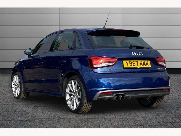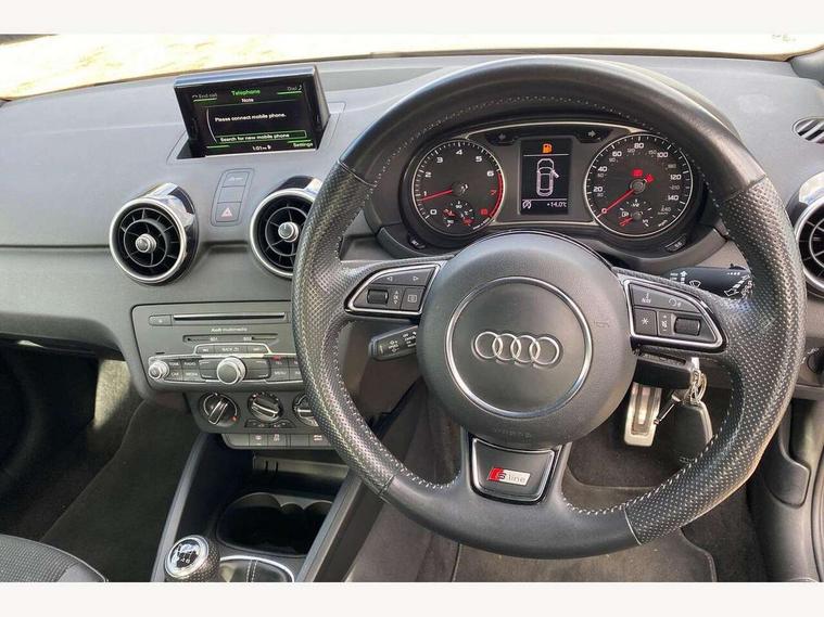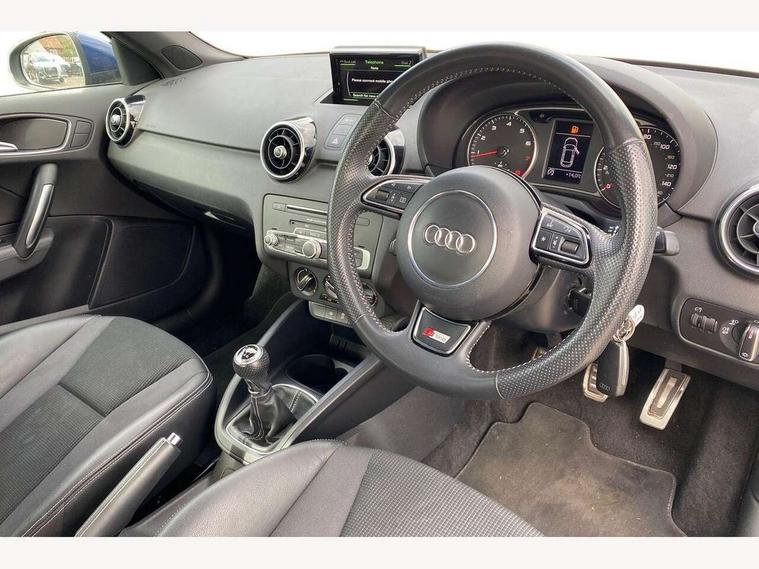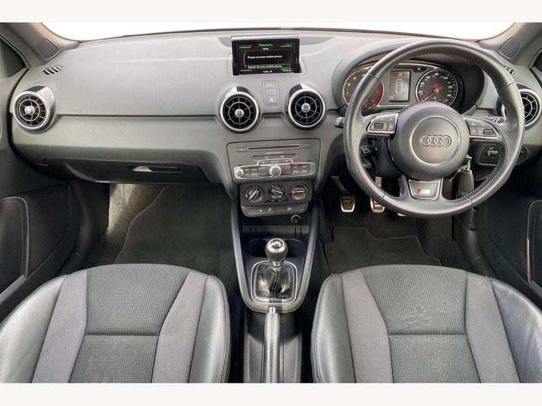 Audi drive select, Cruise control, Driver's information system, Electro-mechanical PAS, Low washer fluid indicator, Service interval indicator, Voice control system, Additional SD card reader, Audi music interface, Bluetooth audio streaming, DAB Digital radio, Adaptive brake lights, Body coloured bumpers, Body coloured door mirrors, Electric adjustable door mirrors, Electric front windows, Electric rear windows, Front fog lights, Heat insulating glass, Heated door mirrors, Heated rear windscreen, Rear diffuser, Rear wiper, Roof spoiler, S Line body styling, Xenon plus headlights including automatic headlights, LED daytime running lights, LED rear lights, dynamic range control and headlight washers, 12V Accessory socket in centre console, Adjustable rear head restraints, Black cloth headlining, Cupholders in centre console, Door sills trims with aluminium inlays, Front floor mats, Front head restraints, Height adjustable front seats, Illuminated glovebox, Isofix attachments on outer rear seats, Jack and tool kit, Leather handbrake, Lumbar adjustment for front seats, Rake/reach adjustable steering wheel, Split folding rear seats, Non smoking pack - A1, ABS/EBD, Brake assist function, Driver and passenger side airbags, Driver/Front Passenger airbags, EDL, ESP with ASR, First aid kit, Front and rear seatbelt reminder, Front passenger airbag deactivation, Head airbags, Height adjustable front seatbelts, Tyre pressure monitor, Warning triangle, Locking wheel bolts, Remote control central locking, Thatcham category 1 alarm + immobiliser, Tyre repair kit,
