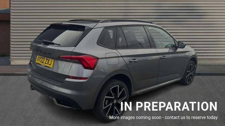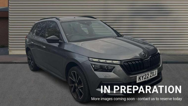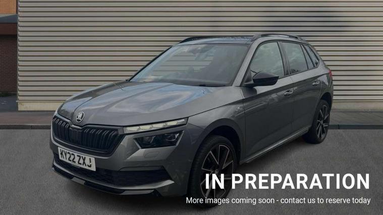 Amundsen satellite navigation with 9.2" touchscreen display, voice control, virtual cockpit and web radio, Bluetooth system, E-call, Front assist system, Gesture control, PAS, Service indicator, Speed limiter, Virtual cockpit with 10.25"display, Wireless SmartLink for apple car play, android auto and mirrorlink, 8 speakers, Auxiliary input socket, DAB Digital radio, Black door mirrors, Black radiator grille, Black rear diffuser, Body colour bumpers, Body colour door handles, Body colour roof spoiler, Boot lettering in black, Chrome grille surround, Dimming rear view mirror with black surround, Electrically adjustable and heated door mirrors, Front and rear electric windows, Front sport bumper, Full LED headlights with adaptive front light system and front cornering fog lights, Headlight range control, Heated rear window, KAMIQ Door sills, LED daytime running lights, LED rear lights - low functionality, Light sensors, Monte carlo plaque, Panoramic sunroof with black roof rails, Privacy glass, Rear fog lights, Rear side wing doors, Rear wiper, 12V Accessory socket in centre console, 3 seat bench in 2nd row, Aluminium pedals, Black ceiling for black/beige interior, Chrome inner door handles, Cloth upholstery, Front head restraints, Glove compartment with illumination, Ice scraper, Isofix child seat fittings on outer rear seats, ISOFIX on front passenger seat, Leather gear lever, Manual lumbar support for front seats, Rake/reach adjustable steering wheel, Reading lights, Single front passenger seat, Sports seats, Sun visors with illumination on front passenger, Textile floor mats, Third rear headrest, Top tether for front passenger seat, Umbrella in driver's door, 3x3 point rear seatbelts, Airbags - driver and front passenger, ESP, Front passenger airbag deactivation switch, Front side airbags with curtain airbags, Hill hold control, Manual parking brake, Manual rear child locks, One tone horn, Rear disc brakes, Seatbelt reminder for driver an co-driver, Traction control, Tyre pressure monitor, Anti-theft alarm system with interior monitoring, backup horn, towing protection and remote central locking with SAFE system, Anti-theft wheel bolts, Electronic engine immobilizer, Chrome air vent surrounds, 18" Vega alloy wheels in black,