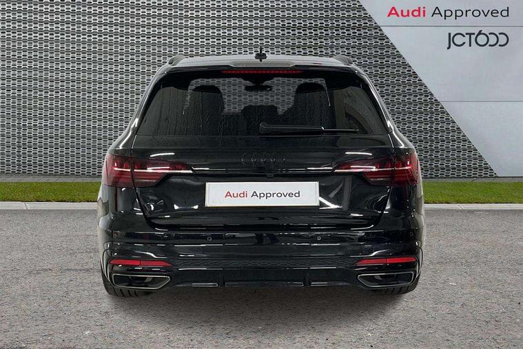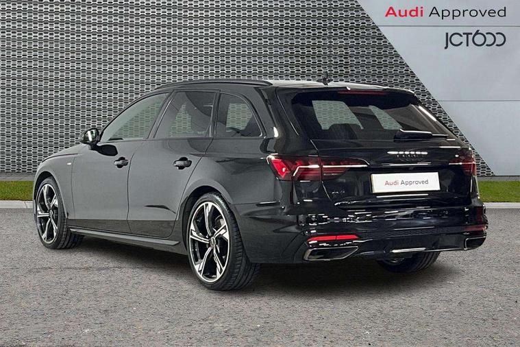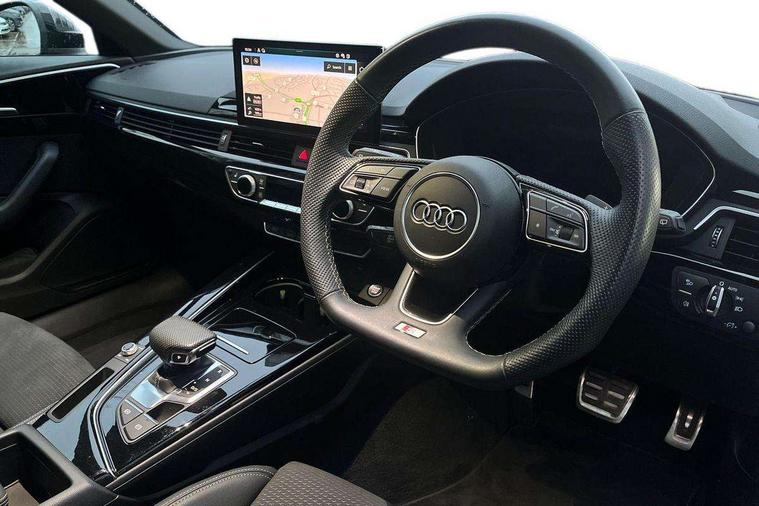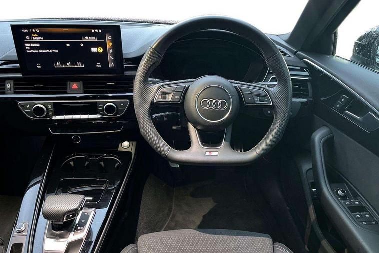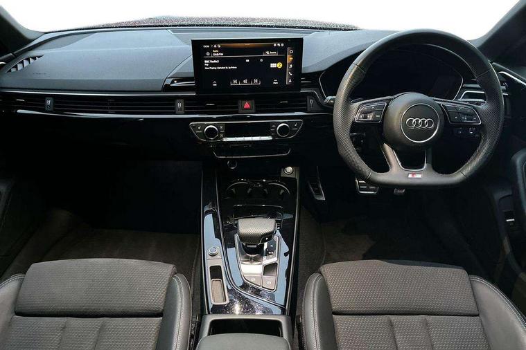 Audi connect safety and service (e-call), Audi drive select, Audi smartphone interface, Audi virtual cockpit, Automatic start-stop system with coasting functionality and efficiency programme, Bluetooth interface, Camera based traffic sign recognition, Electromechanical power steering, Email, calendar and text messages displayed via MMI, Front and rear parking sensors, Lane departure warning, MMI Navigation plus with MMI touch includes 10.1" high resolution colour MMI display, 3D map, Power operated tailgate, Rear view camera, Voice control system, 54 litre fuel tank, Sports suspension lowered by 23mm, 2 USB charging ports, 8 passive loudspeakers, DAB digital radio reception, Audi beam uses LEDs to project the audi logo onto the ground as you exit your A4, Auto dimming rear view mirror, Black Audi rings and black badging (model name in black badging, no engine badging), Body colour door handles, Body colour front spoiler lip, Body colour side sill trim, Electric adjustable/heated/folding door mirrors with auto dimming, Exhaust tailpipes in high dark chrome, Grained matt black side air inlets with matt aluminium silver inlay, High beam assistant, High gloss black B pillar trims and triangular rear door trim, LED headlights with LED rear lights + dynamic rear indicators + headlight adjustment and high beam, turning light + LED daytime running lights, LED third brake light, Privacy glass, Rain and light sensors, Rear diffuser in matt black with trim strip in matt aluminium silver, Rear side wing doors, Rear wiper, RS4 rear spoiler in body colour, S Line roof edge spoiler, Sport front and rear bumpers with side skirts, Variable intermittent front wash/wipe, Windscreen with acoustic glazing, 4 way electric lumbar support for driver and front passenger, 40/20/40 split folding 3 rear seat bench in 3 parts with rear centre armrest, Black carpets, Black cloth headlining, Black perforated leather gearknob, Contrast stitching on seats, steering wheel and gear lever gaiter, Deluxe 3 zone electronic climate control, Electric load area cover, Front and rear head restraints, Front centre armrest, Heated front seats, Illuminated door sill trims with S logo, ISOFIX child seat mounting and top tether, Manual seat adjustment, Single front passenger seat, Stainless steel pedals and foot rest, Tool kit, Black styling pack - A4 Avant, LED Interior light pack - A4/S4, 3 rear seatbelts, 6 airbags - Driver, front passenger, curtain and side windows, Attention and drowsiness assist, Electronic Stabilisation Control (ESC) including ABS, ASR and EDL, Hill hold assist, Multi collision brake assist, Pop-up bonnet for pedestrian protection, Pre sense city, Rear door child safety locks, Seatbelt monitoring, Warning triangle and first aid kit, Anti theft alarm, Anti theft wheel bolts, Central locking, Keyless Go, Piano black finish inlay, Tyre repair kit,