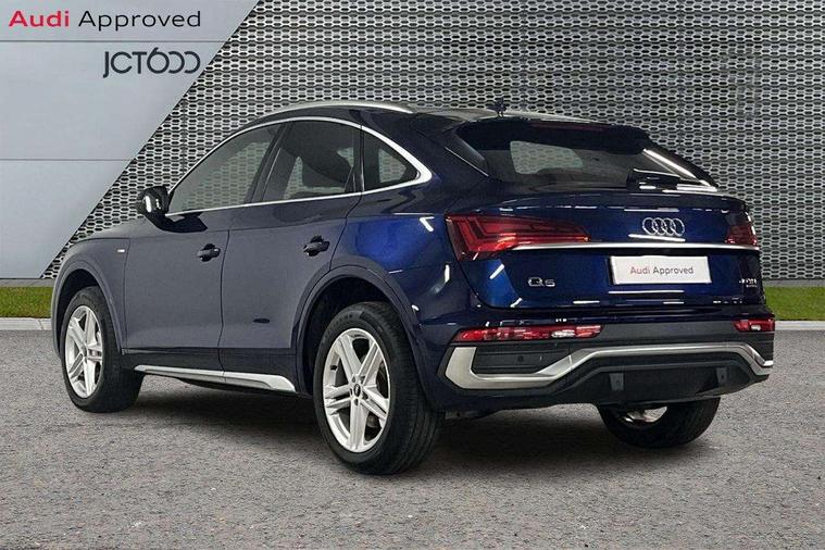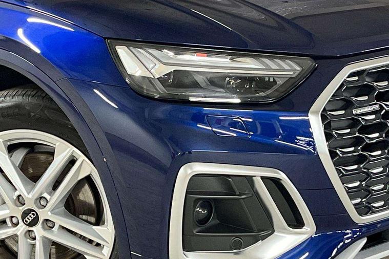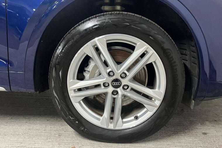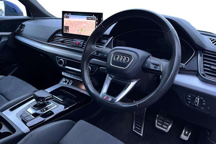 Audi connect safety and service (e-call), Audi connect with Amazon Alexa Integration, Audi drive select, Audi virtual cockpit plus with 12.3" screen and three different layout designs, Audi wireless smartphone interface, Automatic start-stop system with coasting functionality and efficiency programme, Bluetooth interface, Electro - mechanical power assisted steering, MMI navigation plus with 10.1" touch screen, Power tailgate, Reversing camera, Service interval indicator, Voice control system with Audi hotword activation "Hey Audi", Diesel particulate filter, Quattro on demand, S line sports suspension, 2 x USB charging port with aux input socket, DAB Digital radio, Acoustic windscreen, Aluminium roof rails, Audi matrix LED headlights with dynamic front and rear indicators, Auto dimming door mirrors, Auto dimming rear view mirror, Automatic headlight adjustment, Automatic headlights and windscreen wipers, Body colour door mirrors, Body colour rear diffuser with matt aluminium silver surrounds, Body colour underbody protection, Chrome plated exhaust trims, Daytime running lights, Door sills in Selenite silver, Electric adjustable/heated/folding door mirrors, Front air inlet surrounds in aluminium, Front and rear electric windows, Front radiator grille in honeycomb design, Headlight washers, High level LED brake light, Lower bumpers painted in contrast Manhattan grey, Rear chrome trim strip below lights, Rear privacy glass and rear side windows, Rear side wing doors, Rear wiper, Roof bars, S Line badges on the front wings, S Line front and rear bumpers, S Line rear spoiler, S Line side skirts, 3 rear headrests, 40:20:40 split folding 3 rear bench seat in 2nd row with rear centre armrest, Black cloth headlining, Comfort front centre armrest, Contrast stitching on seats, steering wheel and gear lever gaiter, Deluxe 3 zone electronic climate control, Front head restraints, Front/rear floor mats, Gear lever in black leather, Heated front seats, Height/reach adjustable steering column, Illuminated door sill trims with S logo, ISOFIX child seat mounting and top tether, Manual seat adjustment with 4-way electric lumbar support, Removable luggage compartment floor, Single front passenger seat, Stainless steel pedals, Sunvisors with vanity mirrors, Trunk roller cover, High gloss pack - Q5, LED interior light pack - Q5, 3 point seatbelts on all seats, 6 airbags - Driver, front passenger, curtain and side airbags, Electrically operated child locks on rear doors, Electromechanical parking brake, Electronic stabilisation control including ABS, ASR and EDL, Front passenger airbag deactivation, Hill descent control, Hill hold assist, Multi collision brake assist, Pop-up bonnet for pedestrian protection, Pre sense city, Seat belt force limiter, Seatbelt monitoring, Tyre pressure warning, Warning triangle and first aid kit, Anti theft alarm, Anti-theft wheel bolts, Keyless Go access/ignition system, Remote central locking, Matt brushed aluminium inlays,