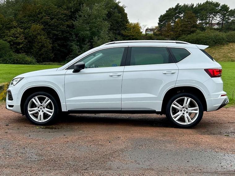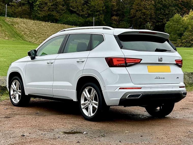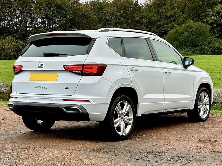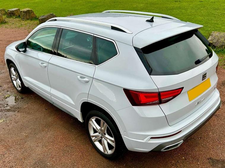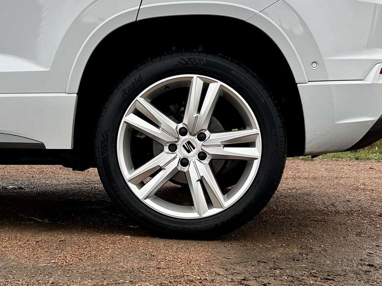 Colour multi-function on board computer display, Cruise control system with speed limiter, E-call, Outside temperature gauge, Progressive power assisted steering, SEAT drive profile with driving experience button - Normal, Sport, Eco and Individual mode, steering and throttle response, Self parking functionality (includes front and rear parking sensors), Trip computer, Wireless full link smartphone integration, Wireless phone charger, Steering wheel mounted audio/phone controls, Body colour bumpers, Body coloured wheel arch surrounds, Chrome front grille frame, Chrome roof rails, Chrome side window trim, Dark tinted rear windows, Daytime running lights, Door mirrors with welcome light silhouette, Dynamic headlight range control with self adjusting whilst driving, Electric adjustable/heated/folding door mirrors, Front and rear electric windows, Full LED headlamps with lens and LED front fog lamps with cornering function, Illuminated aluminium front door sill, LED rear tail lights with dynamic indicators, Rear fog lights, Rear side wing doors, Rear spoiler, Rear wash/wipe, Simulated exhaust pipes in chrome frame, 12v socket in front, 3 seat bench in 2nd row, 60/40 split folding rear seat, Aluminium pedals, Dual zone climate control, Front and rear head restraints, Front centre armrest, Front seat back storage pockets, Height adjustable driver and passenger seat with lumbar adjustment, ISOFIX points in outer rear seats with top tether anchorage points, Leather steering wheel and gear knob, Microsuede upholstery with front comfort seats, Rear armrest and easy back seat release mechanism from boot, Single front passenger seat, Storage compartment under driver's seat, Convenience pack - Ateca, Interior lighting pack - Ateca, Navigation system pack with DAB - Ateca, 3x3 point rear seatbelts, ABS, Traction control system (TCS), Electronic stability control (ESC) and Electronic differential lock system (XDS), Airbags - Driver and front passenger airbag with deactivation, front side, two curtain and driver's knee airbags, Electric parking brake with auto hold function, Front and rear seatbelt reminder, Front assist with autonomous emergency braking, Hill hold control, Manual rear child locks, Tiredness recognition system, Traction control, Tyre pressure monitoring system, Alarm, Keyless entry, Locking wheel bolts, Chrome interior detailing, 18" Brillaint silver alloy wheels,