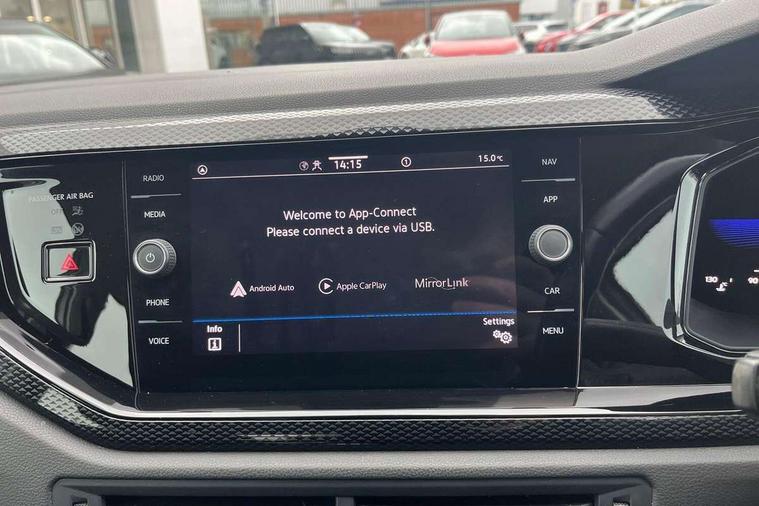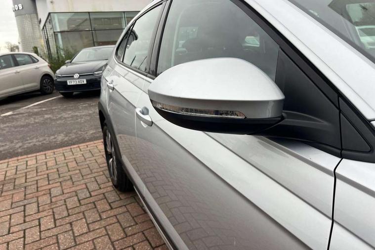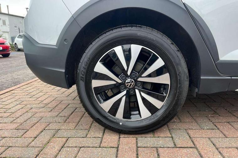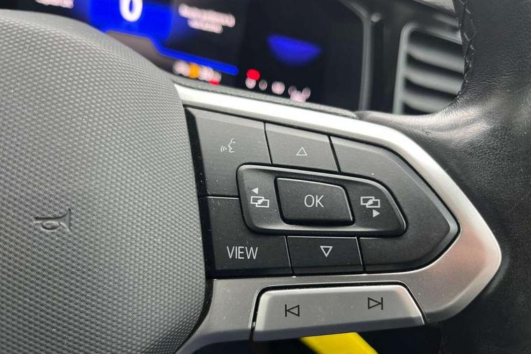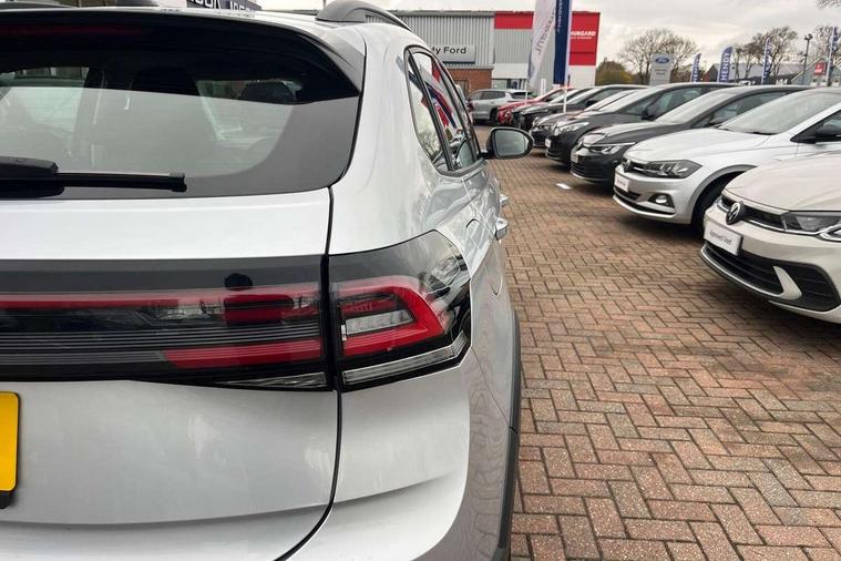 App-Connect including App-Connect Wireless, Driver alert system, e-Call (emergency call), Power Steering, Travel assist including emergency assist, Washer fluid level indicator, Wireless Charging including Bluetooth, Start-stop system with battery regeneration (recuperation - energy recovery during braking), Digital radio reception (DAB+), Diversity antenna for FM reception, WeConnect plus, Ambient lighting with logo projection, Aspherical driver's exterior mirror, Auto headlights, Body coloured bumpers, Body coloured exterior mirror housings and door handles, Electric windows, External USB type C socket and charging sockets, Front fog lamps with cornering function, Headlight range control, Heat insulating glass windscreen, LED headlamps, LED rear combination lamp, LED third brake light, Left convex exterior mirror, Power folding adjustable/heated exterior mirrors and front passenger exterior mirror lowering function, Rear fog light on one side, reversing light on both sides, Rear side wing doors, Rear wash/wipe with intermittent wipe setting, 'Slash/ Austin' Cloth upholstery, 12V socket in centre console, 2 front reading lights, 3 rear head restraints, 3 seat bench in 2nd row, Black carpets, Child seat anchor for child seat system i-Size, 2x top tether and child seat anchor in front on front passenger side, Door and side trim panels in titan black, Driver and front passenger seat height adjustment, Front centre armrest, Handbrake lever handle in leather, Height and reach adjustable steering wheel, Leather trimmed gear knob, Leather wrapped multifunction steering wheel, Luggage compartment floor, Luggage compartment light, Lumbar support for driver's and front passengers seat, Seat covers in titanium black, Single front passenger seat, Split folding backrest with centre armrest and unsplit rear seat bench, Storage compartment under front seats, Sun visors with illuminated vanity mirrors, Chrome Package - Taigo, Drivers assistance pack - Taigo, Light and Sight pack including High beam assist - Taigo, 2 x 3-point seatbelts/outer rear seats with ECE label, 3-point seat belts in front with pretensioner and height adjustment, 3-point seatbelt for centre rear seat, Driver and front passenger airbags with front passenger airbag de-activation, front side and curtain airbags, Driver and front passenger safety-optimised head restraints, Electronic stability control, Extended and predictive pedestrian/ cyclist protection, Front and rear disc brakes, Front curtain and side airbags with center airbag, Hill start assist, Manual rear child locks, Single tone horn, Tyre pressure loss indicator, Anti-theft alarm system with interior monitoring, backup horn, and towing protection, Anti-theft wheel bolts, Lava stone black gloss/matt decorative inserts in dash and front door panels, Low rolling resistance tyres,