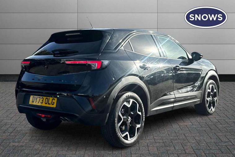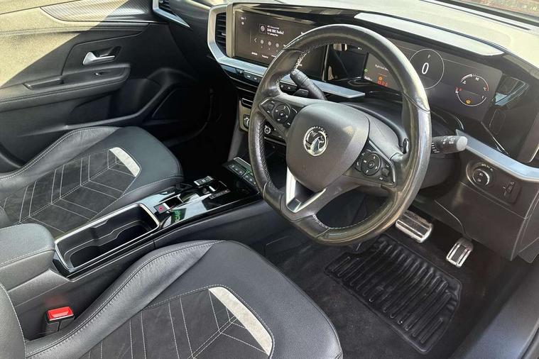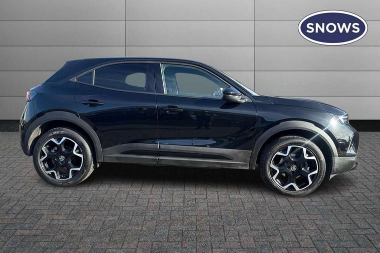 12" digital instrument cluster, Adaptive cruise control with speed limiter, Advanced Park Assist, Digital instrumentation with digital speedometer, rev counter, fuel and water temperature gauge, Driver drowsiness alert system, Driver information display with multi function trip computer, audio info, digital clock and outside air temperature with ice warning function, Engine start/stop button, EV information display, Extended traffic sign recognition, Front and rear parking distance sensors, Front camera and radar system, Lane keep assist system (LAS) with Lane departure warning system (LDWS), Lane positioning assist, Lights on audible warning, Panoramic rear view camera, Power assisted speed sensitive steering, RDS with traffic programme, Side blind spot alert and flank guard, Smartphone integration compatible with Apple CarPlay and Android Auto, Sports switch with engine sound enhancement, Start/stop system, Vauxhall connect with e-Call, Wireless charging for smartphone, 8 speed automatic transmission, 6 speakers, AM/FM stereo radio with 36 station presets, DAB Digital radio, Flexible Roof Mounted Radio Aerial, Front USB connection, Mobile phone portal - bluetooth connect, vehicle microphone, handsfree calls, SMS read out and reply, phone book access, Multimedia Navi Pro with 10" colour touchscreen, Steering wheel mounted controls, Two rear USB sockets, Adaptive brake lights, Automatic headlamp levelling, Automatic lighting control with tunnel detection, Automatically dimming anti dazzle rear view mirror, Black door mirror housings, Black front and rear bumper inserts, Black Griffin logo and vizor frame, Black upper window moulding, Body colour door handles, Body colour front and rear bumpers, Dark tinted rear side windows + tailgate window, Electric adjustable/heated/folding door mirrors + puddle lights, Electrically operated front and rear windows with safety auto reverse and one touch up/down facility, Hazard warning lights, Heated rear window+rear wash/wipe, High beam assist with anti glare, Integrated black tailgate spoiler, IntelliLux Matrix LED headlights with adaptive forward lighting, LED 3rd brake light, LED daytime running lights, LED front fog lamps, LED side repeat indicators, LED tail lights, Rear foglight, Rear side wing doors, Reversing light, Solar heat absorbing windscreen and windows, Two speed rain-sensitive windscreen wipers with variable intermittent wipe, Windscreen and side window demist vents, 12V Accessory socket, 3 seat bench in 2nd row, 3 spoke flat bottomed leather steering wheel with satin chrome bezel, 4 speed fan with illuminated controls, 6 way manual adjustable driver fore/aft, up/down with reclining seatback, 6 way manual adjustable front passenger fore/aft, up/down with reclining seatback, 60/40 split folding rear seat, Air recirculation system, Alcantara/leather upholstery, Alloy sports pedals, Black headliner, Cabin particulate filter - removes dust, airborne particles and pollen, Centre console with two cup holders at front and one in rear, Chrome effect interior door handles, Door pockets with two litre capacity, Driver and passenger sun visors with vanity mirror, Driver seat lumbar support and massage function, Electronic climate control (ECC), Four adjustable facia vents, Four load restraint lashing eyes, Front centre armrest with storage, Front head restraints, Front map reading lights, Front seat back storage pockets, Fully carpeted load area, Heated front seats, Heated steering wheel, Interior courtesy light, Interior tailgate handle, Luggage compartment cover, Luggage compartment lighting, Movable boot floor, Reach + rake adjustable steering column, Single front passenger seat, Steering wheel mounted paddle shift, Three height adjustable rear seat head restraints, Twin gas assisted tailgate struts, Black Pack with badge - Mokka, 2x Isofix child seat fitting on outer rear seats, 3x3 point rear seat belts, Anti-lock braking system (ABS), Child proof locks on rear doors, Cornering brake control, Deactivation switch for front passenger front and side impact airbags, Drag torque control, Driver and front passenger airbags, front seat side impact airbags, full size curtain airbags, Electronic brake force distribution, Electronic Stability Programme (ESP), Emergency brake assist, Enhanced automatic emergency braking with pedestrian detection, Forward collision alert at all speed, Hill start assist, Inertia reel lap and diagonal seatbelts for all seats, Seatbelt unfastened audible warning and warning light, Straight line stability control, Traction control, Tyre pressure monitoring system, Electronically protected audio equipment, Engine deadlock immobiliser, Freewheeling door locks, Key left in ignition audible warning, Keyless entry and start, Locking wheel nuts, Remote control central locking, Remote control ultrasonic security alarm system, Visible vehicle identification number, Atlantis black trim inserts of front doors, Black facia with silver trim insert, Instrument panel bar in polar silver, 18" bi colour alloy wheels,