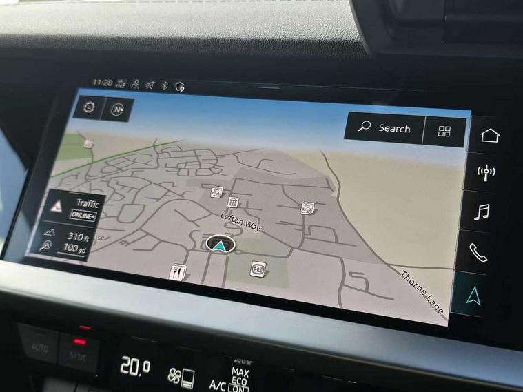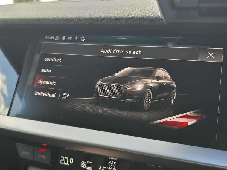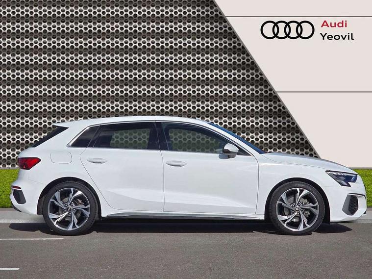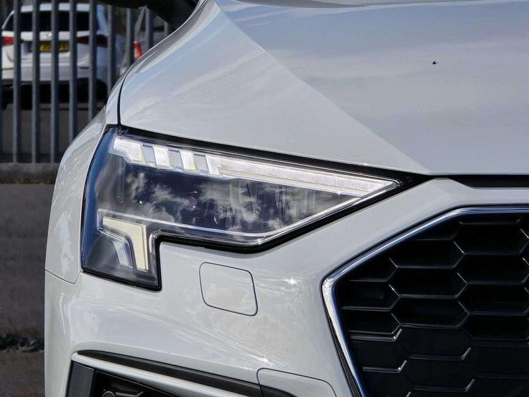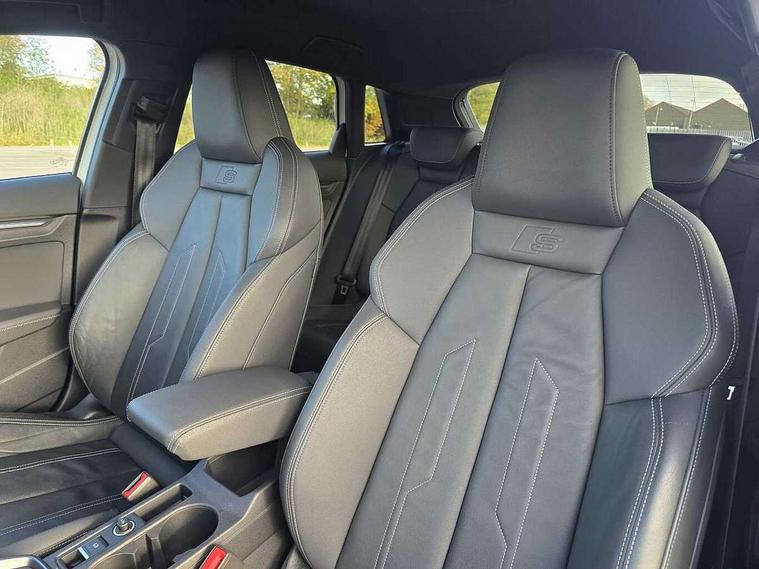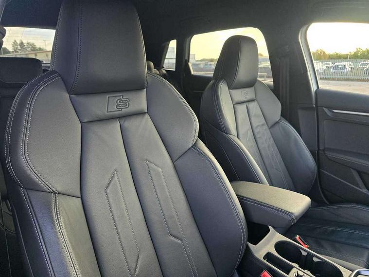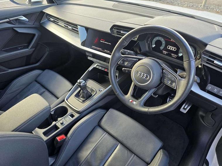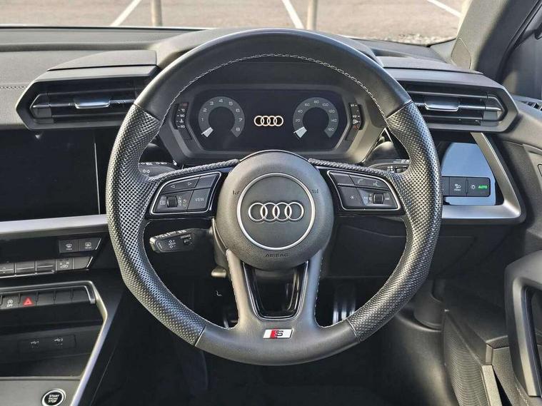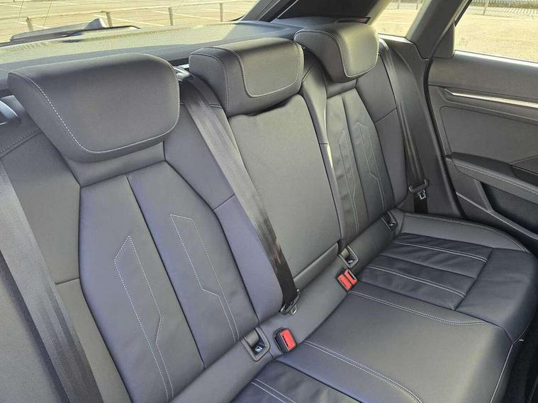 Audi drive select (Auto, Comfort, Dynamic and Individual), Audi smartphone interface, Audi Virtual Cockpit - 10.25" digital and colour instrument cluster, Automatic start/stop system with recuperation, Bluetooth interface, Collision avoidance assistant, Cruise control, e-Call (emergency call), Electromechanical power speed sensitive steering, Lane departure warning system, MMI Navigation Plus with high resolution 10.1" colour touch screen display, Rear parking sensors, Service indicator, Trip computer, Voice control system with natural language interaction, 2xUSB-C connection with data and charging functions, 6 passive loudspeakers, DAB Digital radio, 3rd brake light, Acoustic glass windscreen, Aluminium window trim, Auto dimming frameless rear view mirror, Electrically adjustable/heated/folding/dimming door mirrors with kerb view includes integrated LED indications + kerb view function for passenger side, Front electric windows, Illuminated aluminium inserts front door sills with S logo, LED daytime running lights, LED headlights with LED rear lights and dynamic rear indicators, Light and rain sensors, Privacy glass - dark tinted rear window, rear door and side windows, Rear electric windows, Rear side air outlets in grained matt black, Rear side wing doors, Rear wiper, S line bumpers, S roof spoiler, 12V socket and storage compartment in front centre console, 3 seat bench in 2nd row, 40/20/40 split folding rear seat bench with cupholder, Black cloth headlining, Dual zone electronic climate control, Front and rear centre armrest in leather, Front and rear headrests, Front/rear floor mats, Height and reach adjustable steering wheel, Illuminated vanity mirror, Interior lighting - glove compartment light and right hand side, Luggage compartment floor covering, Manual boot compartment lid, Manually adjustable front seats, Seat side bolsters, Single front passenger seat, Stainless steel pedals and front footrest in black, Twin leather upholstery with front sports seats S embossed logo, Aluminium interior elements pack - A3 Sportback, LED interior lighting pack - A3 Sportback, S line styling pack - A3 Sportback, 3x3 point rear seat belts, Audi pre sense front, Driver and front passenger airbag with passenger airbag deactivation, Electronic Stabilisation Control (ESC) including ABS, ASR and EDL, First aid kit with warning triangle and 2 safety vests, Front side airbags with head airbags and interaction airbag, Pre-sense front with pedestrian and cyclist detection, Seatbelt monitoring, Tyre pressure loss indicator, Anti theft alarm, Anti-theft wheel bolts, Electronically operated child lock, Immobiliser, Remote control central locking, Accent surfaces in the dashboard and centre console in platinum grey silk effect paint finish, Dark spectrum aluminium inlays,