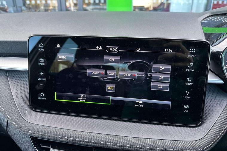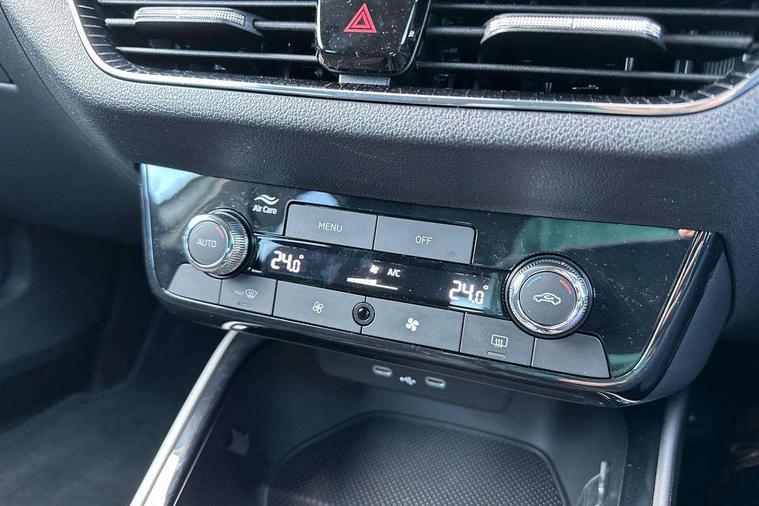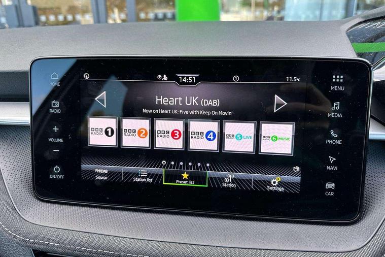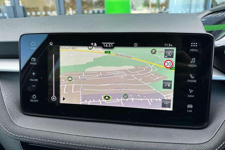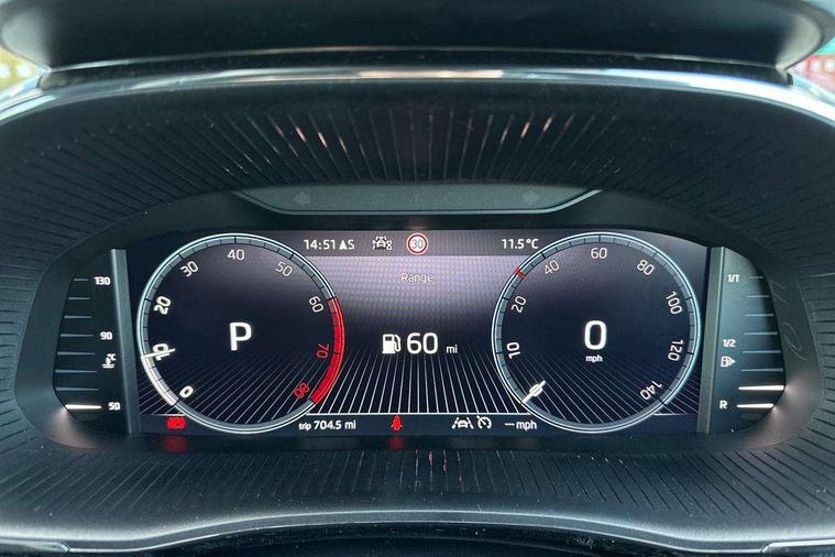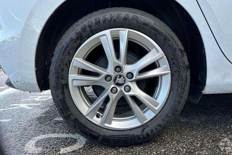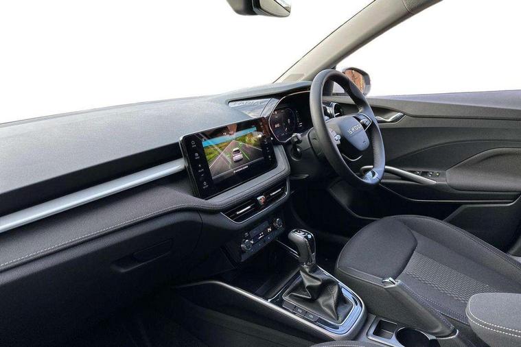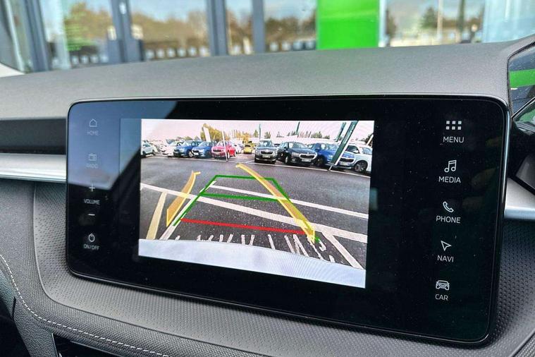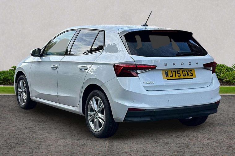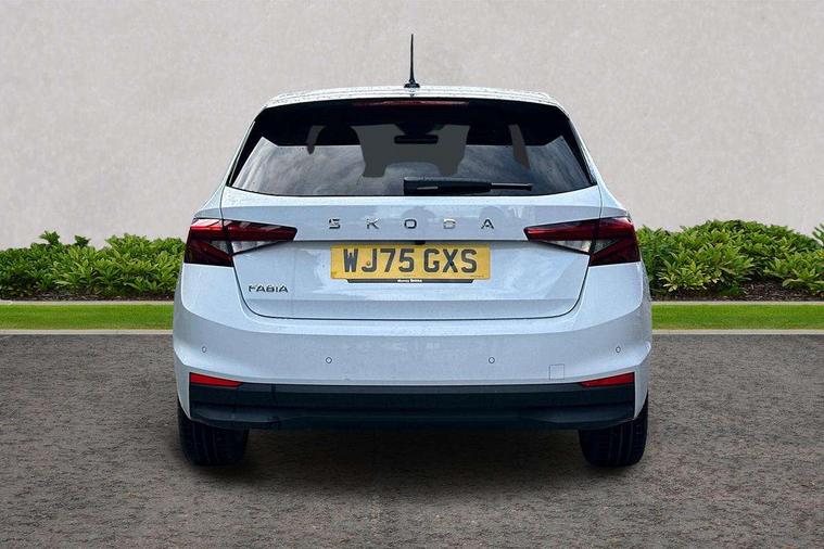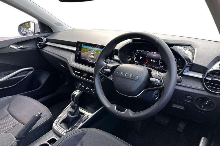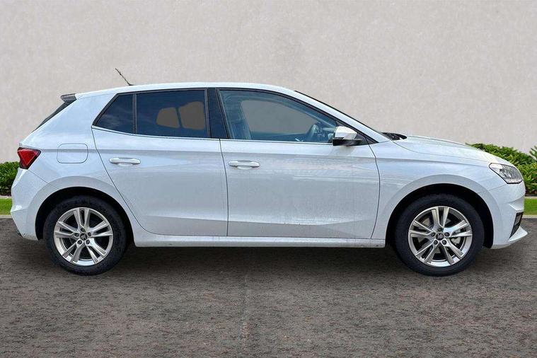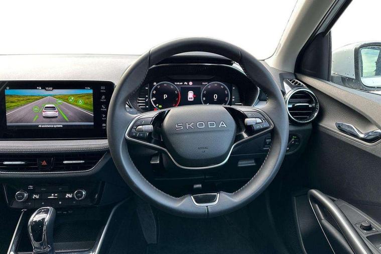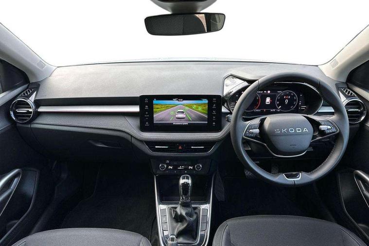 Advanced driver attention and drowsiness monitor, Bluetooth connection, Driver alert system, Electromechanical power steering, Exterior temperature gauge, Service interval indicator, Traffic sign recognition, Virtual cockpit with 10.25" colour display, Wireless SmartLink for Apple CarPlay and Android Auto, 6 Speakers (4 in front and 2 in rear), 9.2" colour display skoda navigation system with voice control and web radio, Auxiliary socket for external MP3 player, DAB digital radio reception, Auto dimming rear view mirror, Body colour door mirrors, Body coloured bumpers, Chrome window surround, Door mirror integrated indicators, Front and rear electric windows, Front window wiper intermittent control, Headlight range control - Automatic, Ice scraper in fuel cap, LED 3rd brake light, LED daytime running lights with coming and leaving home feature, LED rear lights, Privacy glass, Rear LED fog light, Rear side wing doors, Rear window wiper with washing nozzles, Roof mounted spoiler, SKODA tailgate lettering in chrome, Unique dark chrome design logo on alloy wheels, 2 LED reading lights in front and rear, 3 rear headrests, Backrest split and folding, Central console with fixed cup holder and storage box, Chrome handbrake release button, Comfort seats, Door sills with fabia badging, Dual zone air conditioning with climatronic electronic control, Fabric upholstery, Front centre armrest, Gearshift knob/handle in leather, Grain satin black interior door handles, Hand brake lever handle in leather, Height adjustable front headrests, Height adjustable front seats, Height adjustable steering wheel, ISOFIX and TopTether anchorage points to the outer rear seats, ISOFIX and TopTether on the front passenger seat, Luggage compartment lighting, Manually adjustable lumbar support in front seats, Pollen filter, Rear seat bench unsplit, Single front passenger seat, Skoda lettering on steering wheel, Storm grey headlining, Sun visors with mirror and airbag label on passenger side, Textile floor mats, Ticket holder, Umbrella in drivers door, Ambient lighting pack - Fabia Hatchback, 3-point height adjustable front seats belts with pretensioner and force limiter, Automatic warning lights in case of crash, Driver and passengers airbag with switch off function, e-Call+, ESC including ABS, MSR, ASR, EDS, HBA and XDS, Front and rear seat belt warning, FRONT ASSIST (AEB City and AEB Inter Urban), Front side airbags, Head airbags, Hill hold control, One tone horn, Pedestrian protection, Three rear 3-points safety seat belts with pretensioner and force limiter including stop function for outer rear seat belts, Tyre pressure monitoring system, Anti-theft alarm system including immobiliser, interior monitoring, backup horn, and towing protection, Central locking with radio remote control, interior controls, SAFE function and 2 foldable keys, Chrome edged air vents, Grain satin black central console cover, Metallic grey upper decorative trim, Satin black door and side trim panel in front, Textile microsuede grey lower decorative trim with art grey stitching, Anti-theft wheel bolts protection, Super-low rolling resistance tyres,